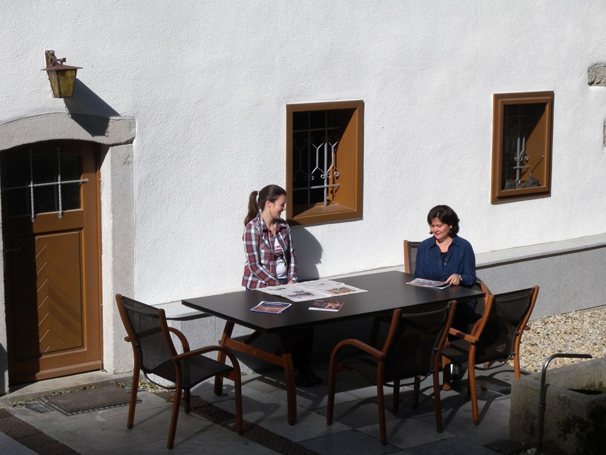 Die traditionellen restaurierte Stubn im historischen Gebäudetebietet bietet bis zu 15 Personen Platz. Mit den an der Wand befestigten Bänken, den quadratischen Tischen und dem Holzofen vermittelt der Raum eine typisch bayerische Bauernhausatmosphäre.