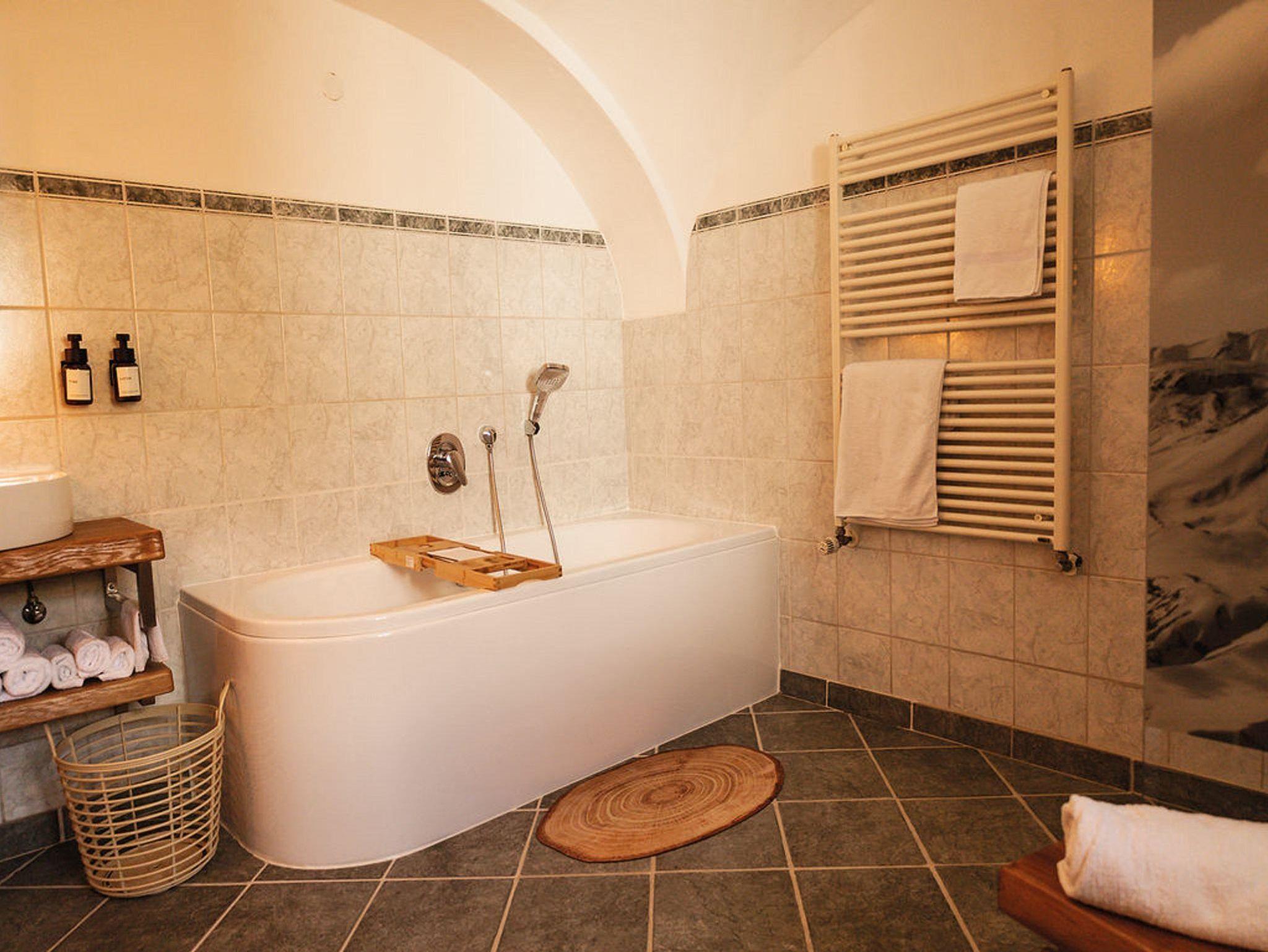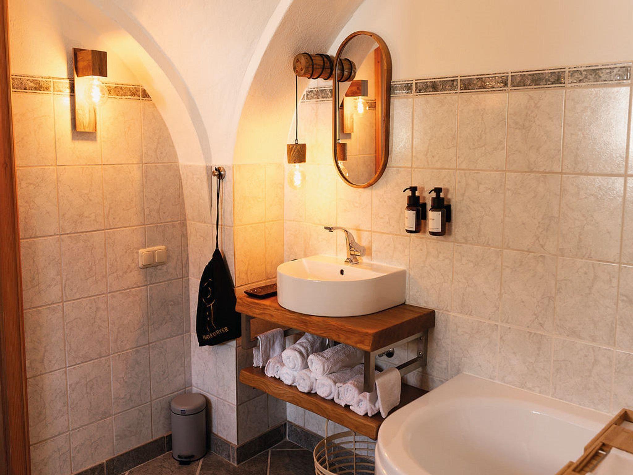Herzstück des Hauses ist der großzügige gemütliche Bauernstube, die mit einer modernen, voll ausgestatteten Küche verbunden ist – perfekt für gemeinsames Kochen und gesellige Abende. Für den nötigen Komfort sorgen zwei stilvolle Badezimmer: eins mit Dusche und eines zusätzlich mit einer Badewanne.