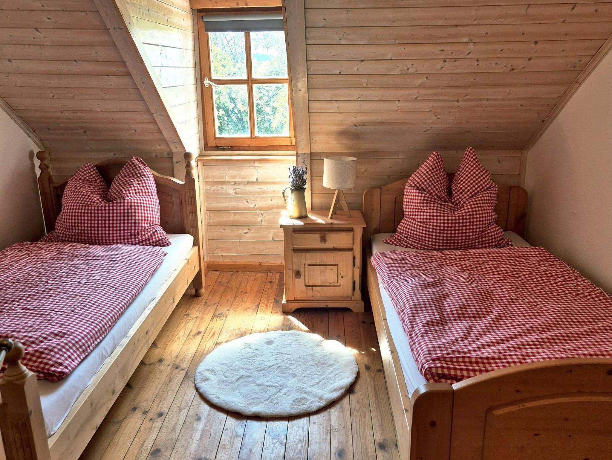 Mitten im Herzen des Bayerischen Waldes, in der idyllischen Ortschaft Wegscheid, erwartet Sie das Landgut Max & Fritz – ein charmantes und großzügiges Ferienhaus für bis zu 13 Personen. Das große Skigebiet Hochficht ist circa 20 Fahrminuten von der Unterkunft entfernt. Das Langlaufzentrum Jägerbild ist nur circa 7 Fahrminuten entfernt. Ob für Familienausflüge, Reisegruppen, gesellige Geburtstagsfeiern oder entspannte Veranstaltungen: Unser Chalet mit einer Infrarotsauna bietet den idealen Rahmen für unvergessliche gemeinsame Momente inmitten der Natur. Das stilvoll eingerichtete Feriengut vereint rustikalen Charme mit modernem Komfort und ist perfekt auf die Bedürfnisse größerer Gruppen abgestimmt. Die großzügigen Wohnbereiche, liebevoll gestalteten Schlafzimmer und die voll ausgestattete Küche sorgen für eine gemütliche Atmosphäre – fast wie daheim, nur schöner. Direkt vor der Tür beginnt die Natur: Waldspaziergänge, Radwege und Outdoor-Abenteuer warten auf Sie. Erkunden Sie die einzigartige Landschaft des Bayerischen Waldes, genießen Sie die Ruhe fernab des Alltags und lassen Sie die Seele baumeln.