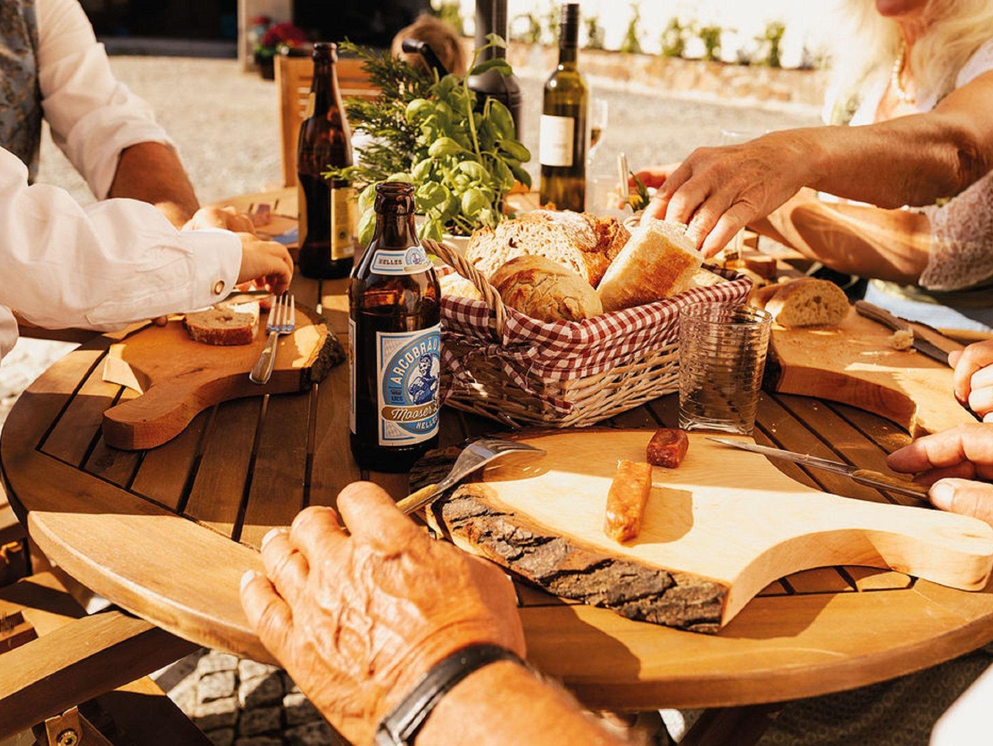 Es gibt die Möglichkeit auf Anfrage über ein zubuchbares Abendessen, das geliefert wird z.B. Reindl, Spareribs . Bitte beachten Sie, dass dies erst ab 8 Personen möglich ist.