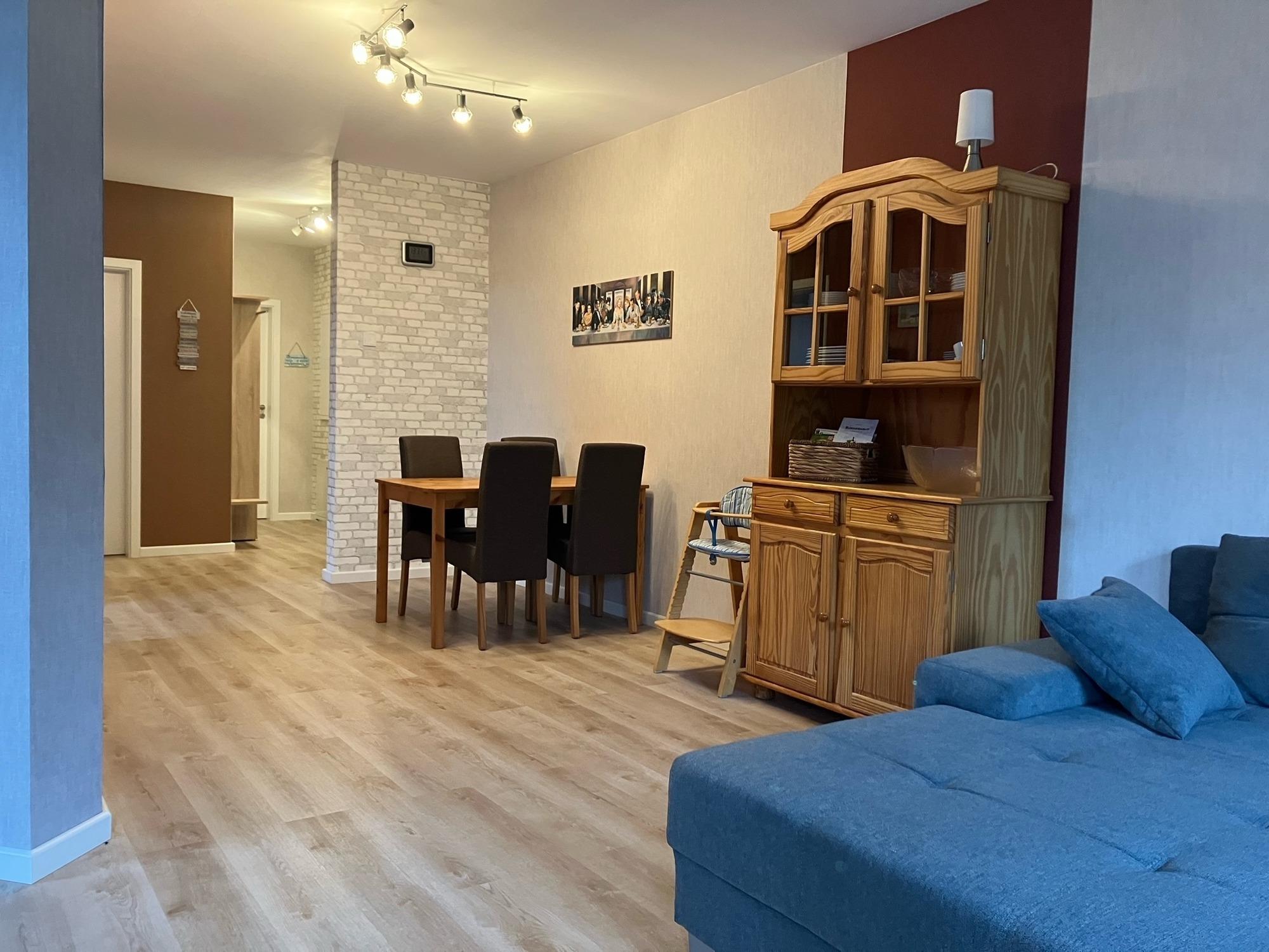 Die 72 qm-Wohnung bestehend aus einem Wohn-/Esszimmer mit TV sowie Schlafcoach für 2 Personen, einer voll ausgestatteten Küche, einem Schlafzimmer mit Doppelbett und der Zustellmöglichkeit für ein Kinderbett und/oder Reisebett, einem Bad mit Urinal und Dusche, einem Gäste-WC sowie Diele mit Garderobe. Sie ist als Nichraucherwohnung mit Designboden, Laminat und Fliesen bestens für Allergiker geeignet.