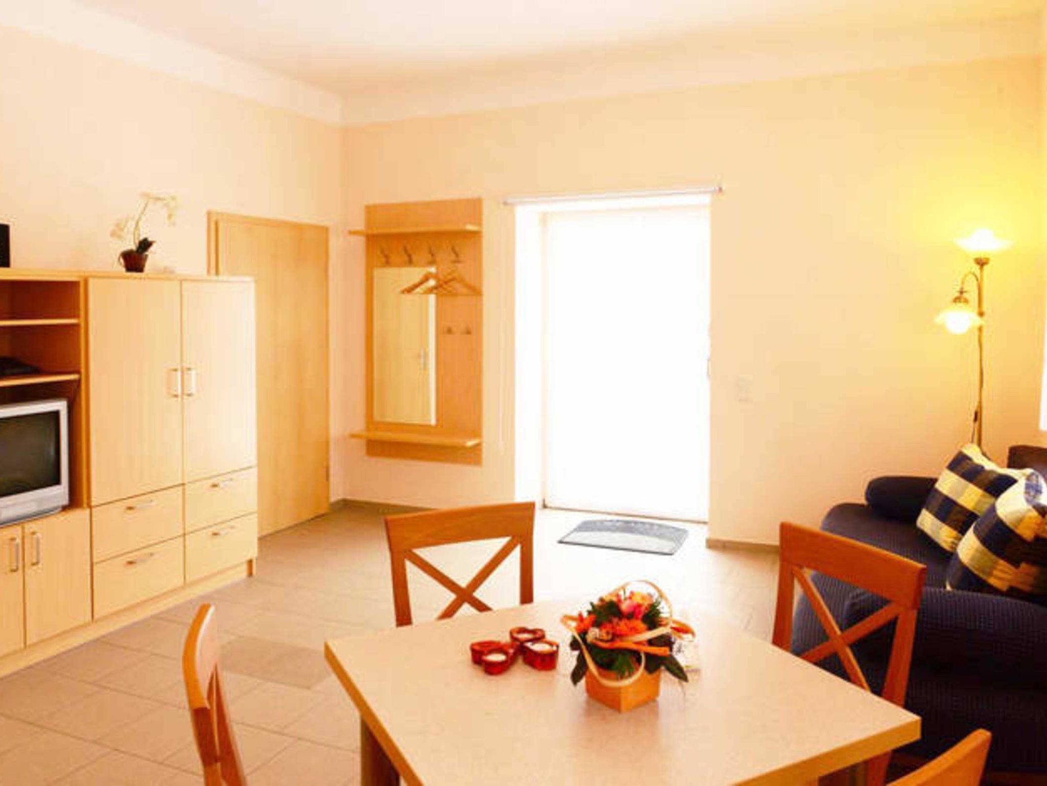 Kurze Wege und einen barrierefreie Ausstattung garantieren Komfort und Erholung. Dieses schön gestaltete 48qm-Apartment des Weichaer Hofs bietet Platz für 2 bis 4 Gäste. Es ist barrierefrei gehalten und verfügt über eine Terrasse, über ein separates Schlafzimmer und Bad sowie über einen Wohn- und Essbereich. Das Apartment liegt Parterre und in unmittelbarer Nähe des Parkplatzes. Die Umgebung sowie das moderne Apartment laden zu einem erholsamen Urlaub ein.Apartmentausstattung: Parterre Ferienwohnung, Behindertengerechte Ausstattung (nach DIN), Sitzecke, Heizung, Internet, Haartrockner, TV, Telefon, Fax, Radio, DVD-Player, CD-Player, Kaffee-/Teekocher, Kühlschrank, Küche, Badzimmer mit Dusche & WC, Bettwäsche & Handtücher, Terrasse, Nichtraucherzimmer/-FerienwohnungAufgrund des Grundrisses der Wohnung ist das Aufstellen eines Kinderbettes nicht möglich. Haustiere sind in dieser Ferienwohnungen auf Anfrage willkommen.