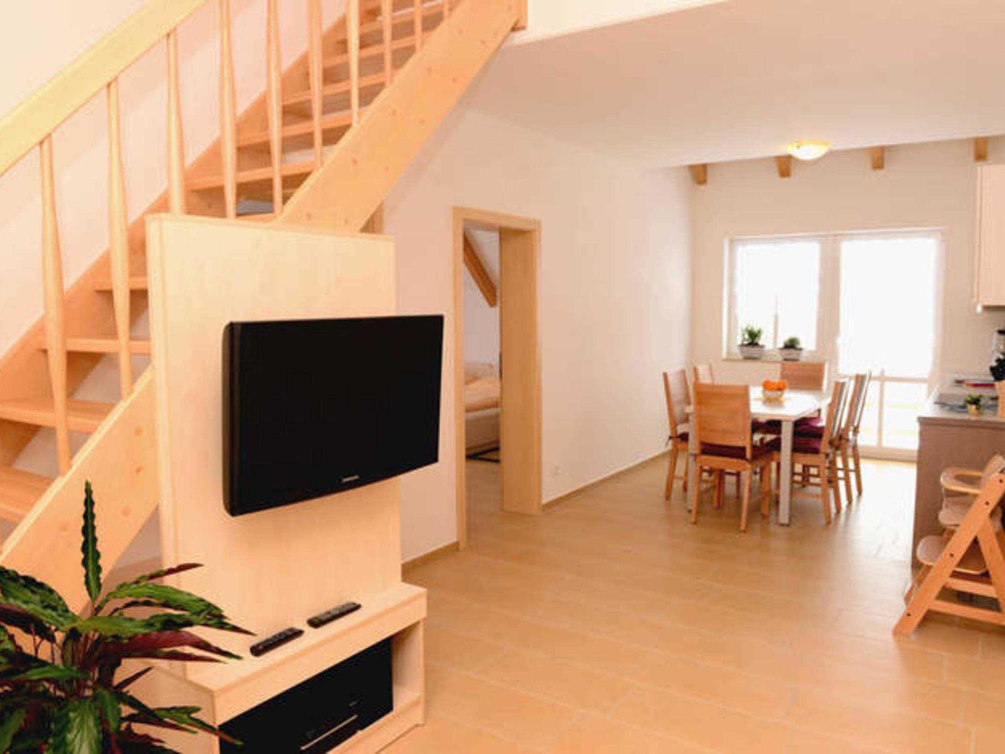 Genießen Sie Ihren Urlaub auf 2 Ebenen mit Blick ins Grüne. Dieses großzügig gestaltete 117qm-Apartment des Weichaer Hofs bietet Platz für 2 bis 6 Gäste. Es verfügt über 3 separate Schlafzimmer sowie über mehrere Balkone (Maisonette). Apartmentausstattung: Sitzecke, Heizung, Internet, Haartrockner, TV, Telefon, Fax, Radio, DVD-Player, CD-Player, Kaffee-/Teekocher, Kühlschrank, Küche, Geschirrspüler, 2 Badzimmer mit Dusche & WC, Bettwäsche & Handtücher, Nichtraucherzimmer/-FerienwohnungZwei Babybetten sind fester Bestandteil dieser Wohnung. Gerne stellen wir Ihnen auf Anfrage weiteren Babybedarf zur Verfügung. Es besteht die Möglichkeit, vor Ort Wäsche zu waschen.Haustiere sind in dieser Wohnung nicht gestattet.