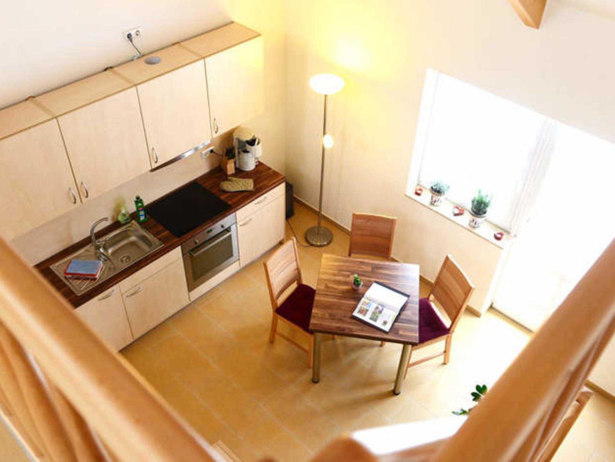 Gemütlich und komfortabel eingerichtet, bietet dieses Maisonette-Apartment alles was man sich für den Urlaub zu zweit wünscht. Das sehr schön gestaltete 37qm-Apartment des Weichaer Hofs bietet Platz für 2 Gäste und verfügt über eine offene Galerie mit Ess-, Wohn- und Schlafbereich. Apartmentausstattung: Sitzecke, Heizung, Internet, Haartrockner, TV, Telefon, Fax, Radio, DVD-Player, CD-Player, Kaffee-/Teekocher, Kühlschrank, Küche, Badzimmer mit Dusche & WC, Bettwäsche & Handtücher, Nichtraucherzimmer/-FerienwohnungAufgrund des Schnittes der Wohnung ist das Aufstellen eines Kinderbettes nicht möglich. Haustiere sind in dieser Wohnung nicht gestattet.