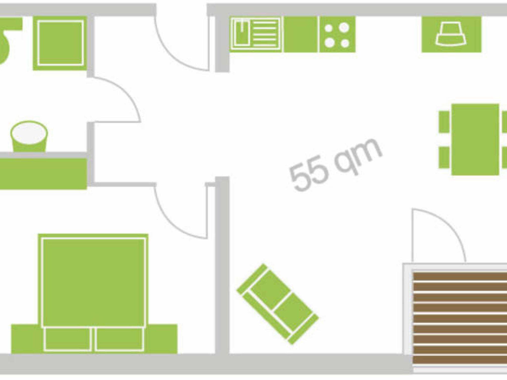 In dieser geräumigen Ferienwohnung können Sie Ihren Aufenthalt mit der ganzen Familie genießen. Entspannen Sie auf dem Balkon und freuen Sie sich auf viele nette Details, die Ihren Aufenthalt bei uns so angenehm wie möglich machen.Dieses 55qm-Apartment verfügt über ein Wohnzimmer mit Küche sowie Ess- und Wohnbereichen. Zudem profitieren Sie von einem Badezimmer und einem Schlafzimmer sowie einem Balkon. Maximalbelegung: 4 Personen.Apartmentausstattung: Sitzecke, Heizung, Internet, Haartrockner, TV, Telefon, Fax, Radio, DVD-Player, CD-Player, Kaffee-/Teekocher, Kühlschrank, Küche, Badzimmer mit Dusche & WC, Bettwäsche & Handtücher, Balkon, Nichtraucherzimmer/-FerienwohnungEin Babybett ist fester Bestandteil dieser Wohnung. Auf Anfrage stellen wir Ihnen gern weiteren Babybedarf zur Verfügung, Es besteht die Möglichkeit, vor Ort Wäsche zu waschen.Haustiere sind in dieser Wohnung nicht gestattet.