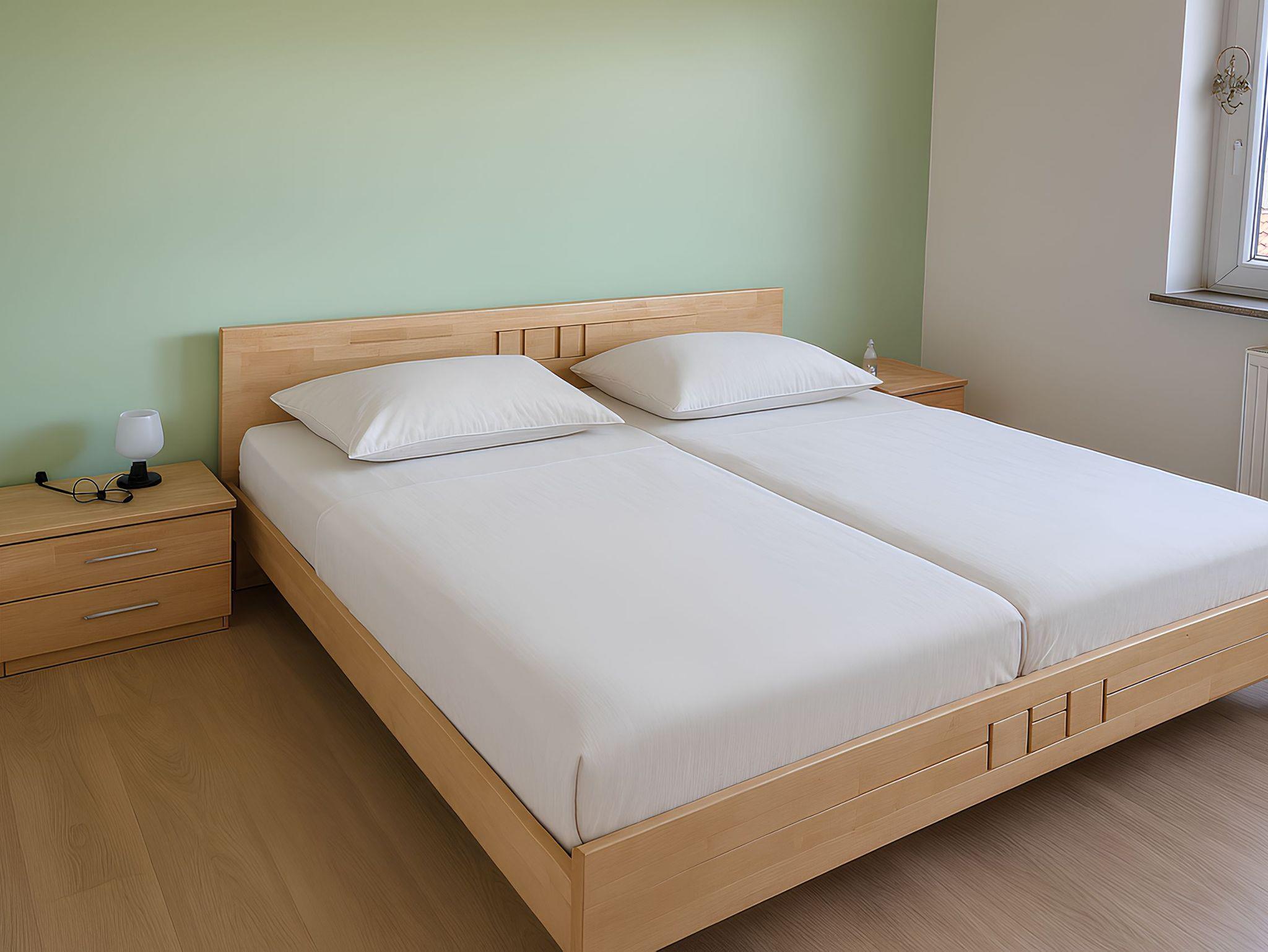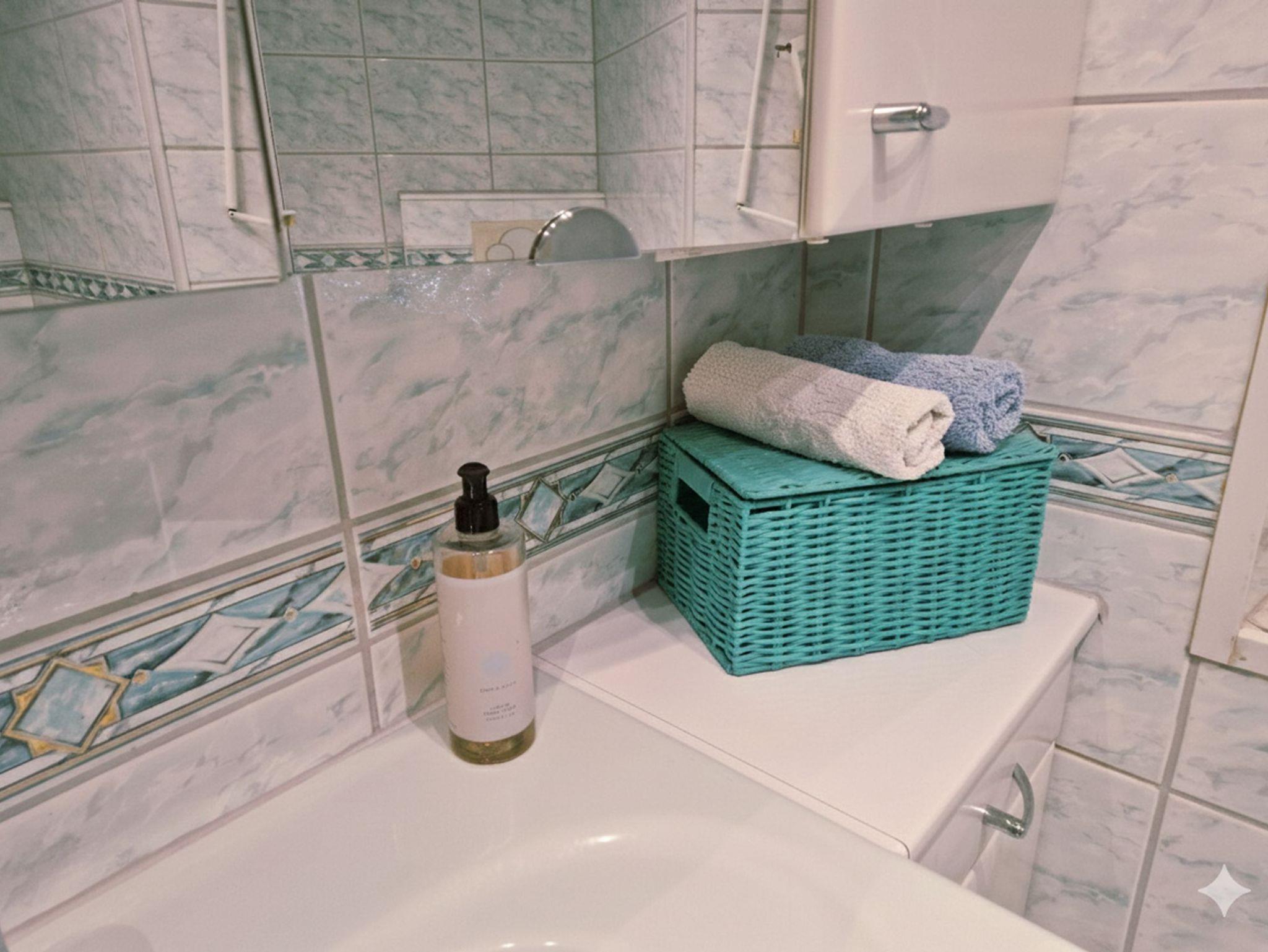Die beiden Schlafräume sind mit einem Doppel- und zwei Einzelbetten ausgestattet, zusätzlich befindet sich im Wohnzimmer ein Schlafsofa. Bettwäsche sowie Handtücher werden bereitgestellt. Das Badezimmer mit Dampfdusche sorgt für zusätzlichen Komfort. Für längere Aufenthalte steht auch eine Waschmaschine zur Verfügung, sodass Sie alles Notwendige erledigen können.