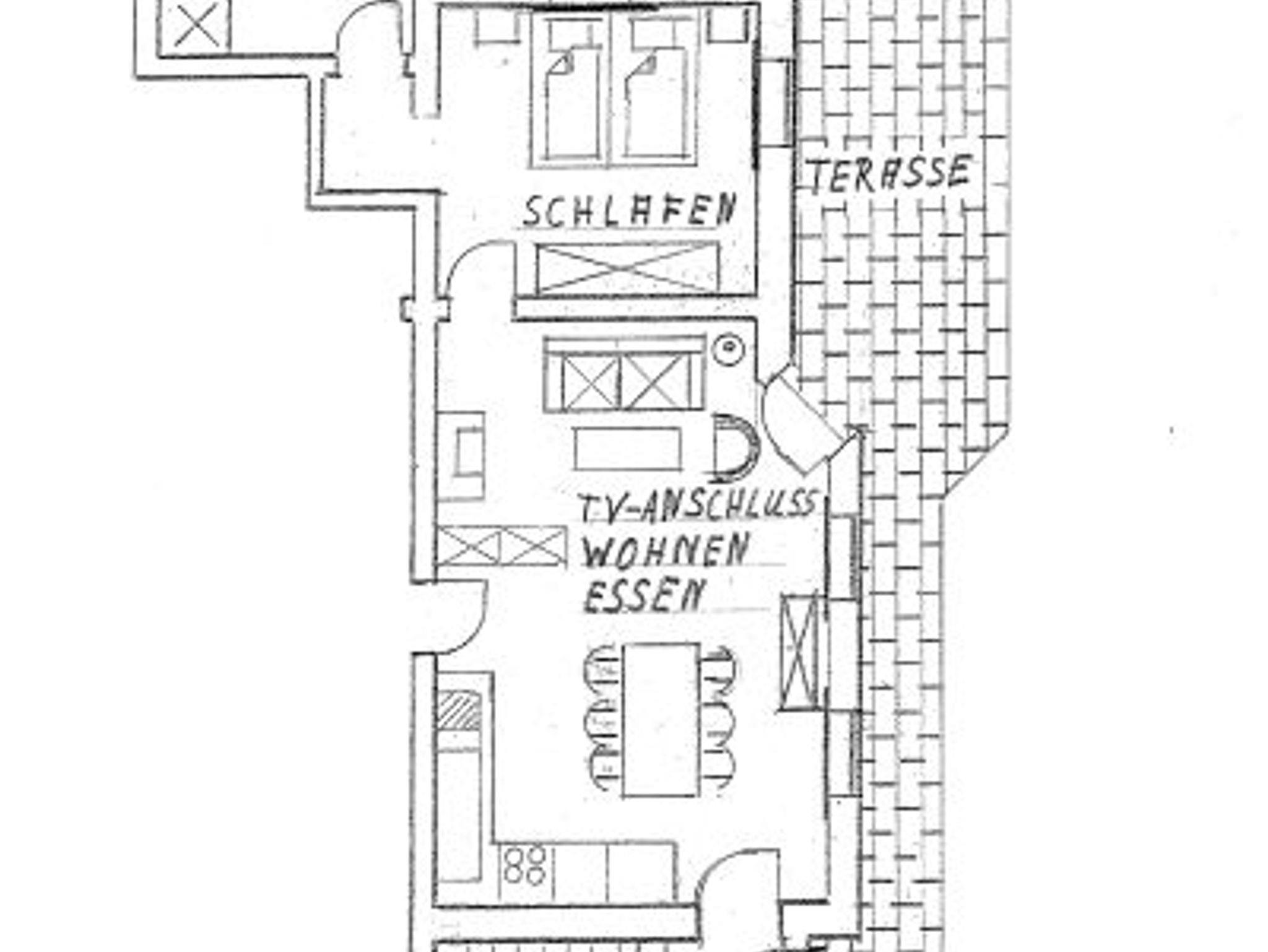 Sie verfügt über ein großes Wohn- und Esszimmer mit Couch und Küche. 1 Doppelzimmer (Kinderbett vorhanden). Bad/WC. Überdachte Terrasse mit Gartenmöbeln. Sat-TV, CD-Radio, Grill, Bettwäsche und Handtücher. Nichtraucherwohnung. Zudem ist eine E-Bike-Garage sowie eine Ladestation für Fahrräder vorhanden.