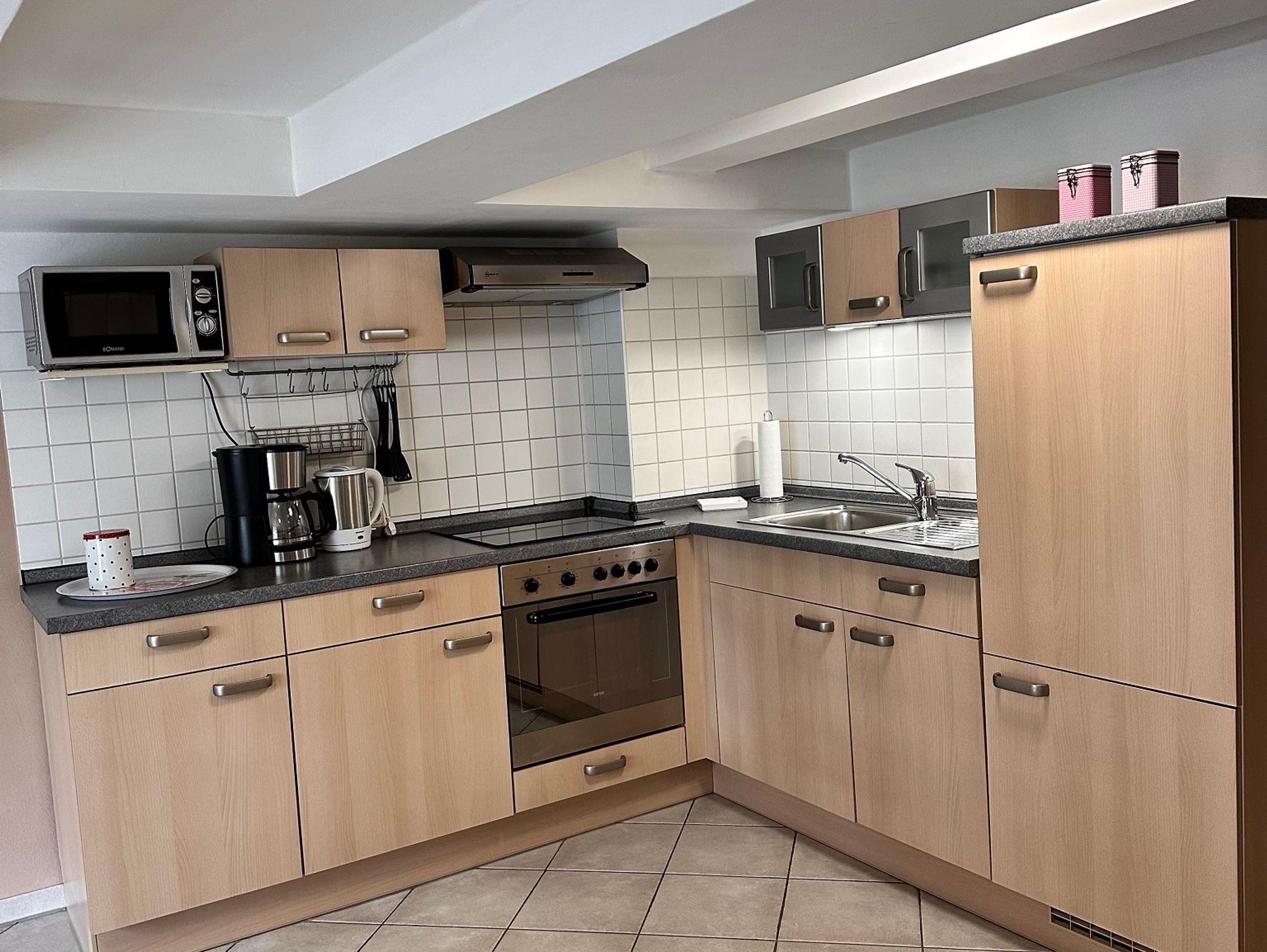 Die Wohnung ist komplett mit Fliesen- bzw. Laminatboden versehen. Separate Einbauküche mit Kühlschrank, Backofen, Mikrowelle, Wasserkocher, Kaffeemaschine, Toaster sowie Essecke.