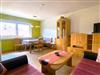 Die Küche, die Toilette und das Wohnzimmer mit ausklappbarem Schlafsofa für 1 - 2 Personen befinden sich im Erdgeschoss. Im Keller des Hauses befindet sich das Badezimmer mit Badewanne.