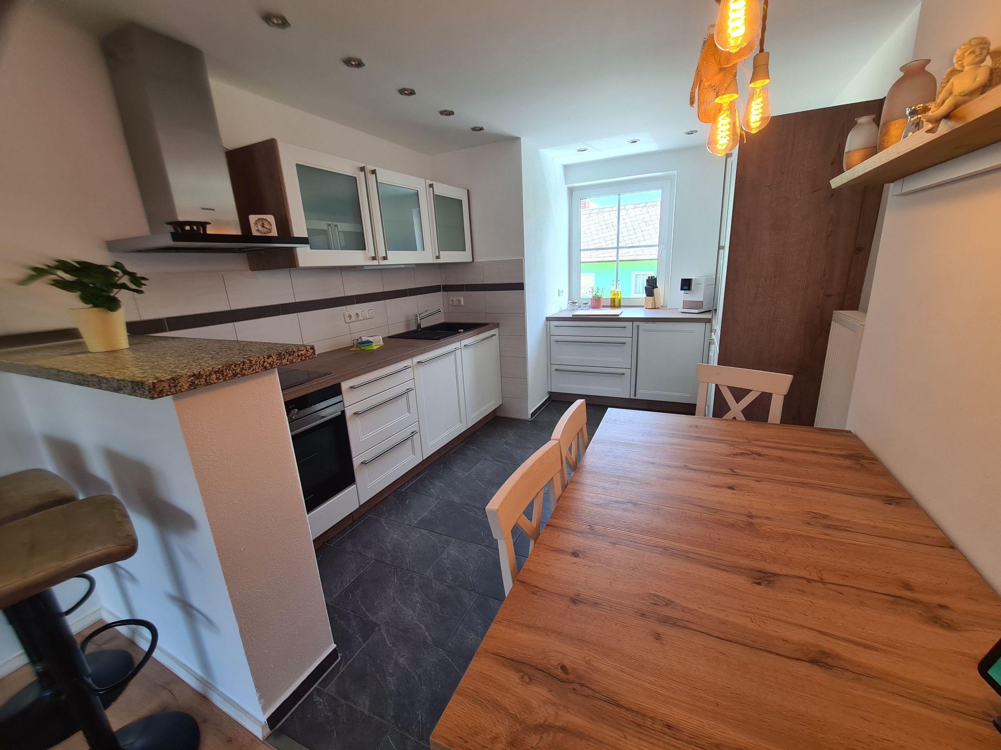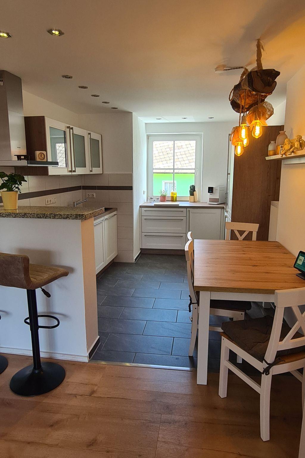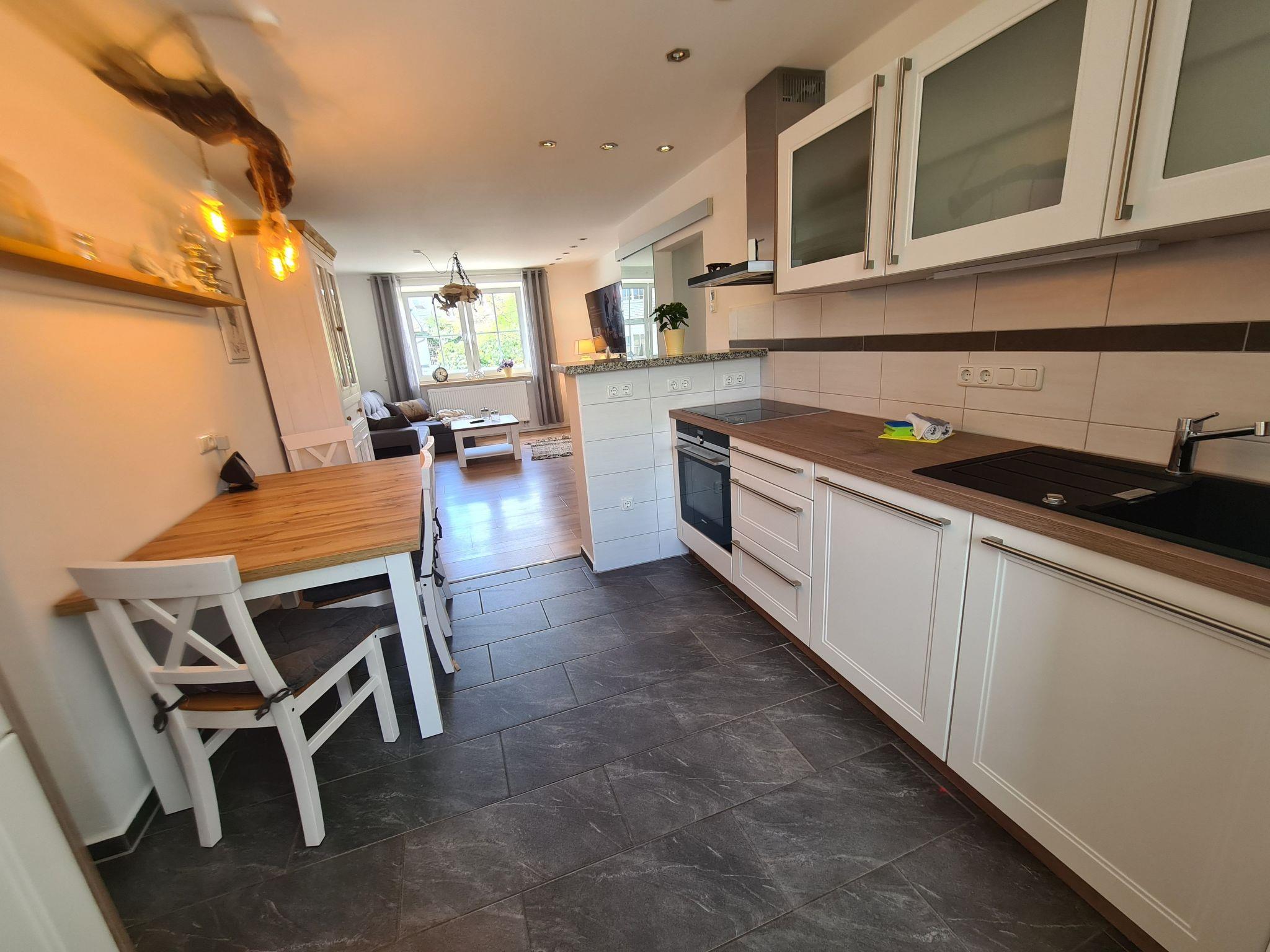 Our holiday flat "Waldstein Terrassen" is located on the first floor of a holiday home. The quiet terraced house is located in the old town centre of Weißenstadt am See. Shopping facilities such as butchers and bakers as well as countless restaurants, ice cream parlours etc. are within walking distance. The spa centre is just a few minutes' walk away via the footpath along the lake. An e-charging station is located on the other side of the street, just a 2-minute walk away. Our flats are all equipped with solid wood furniture. The kitchen is equipped with a dishwasher, oven, ceramic hob, toaster, kettle, microwave, kitchen utensils, cutlery, crockery, etc. Of course, there is also a large fridge with freezer compartment.