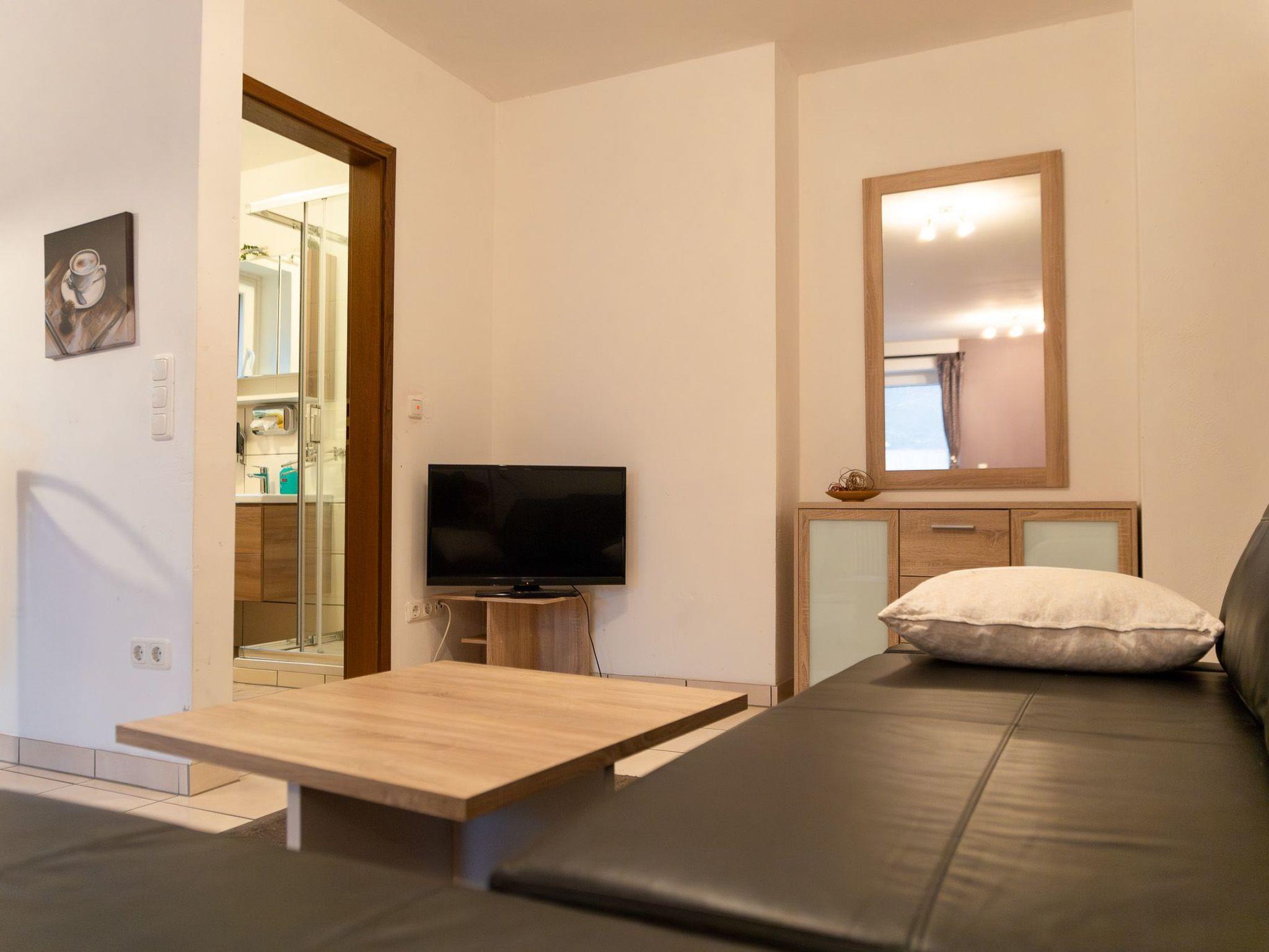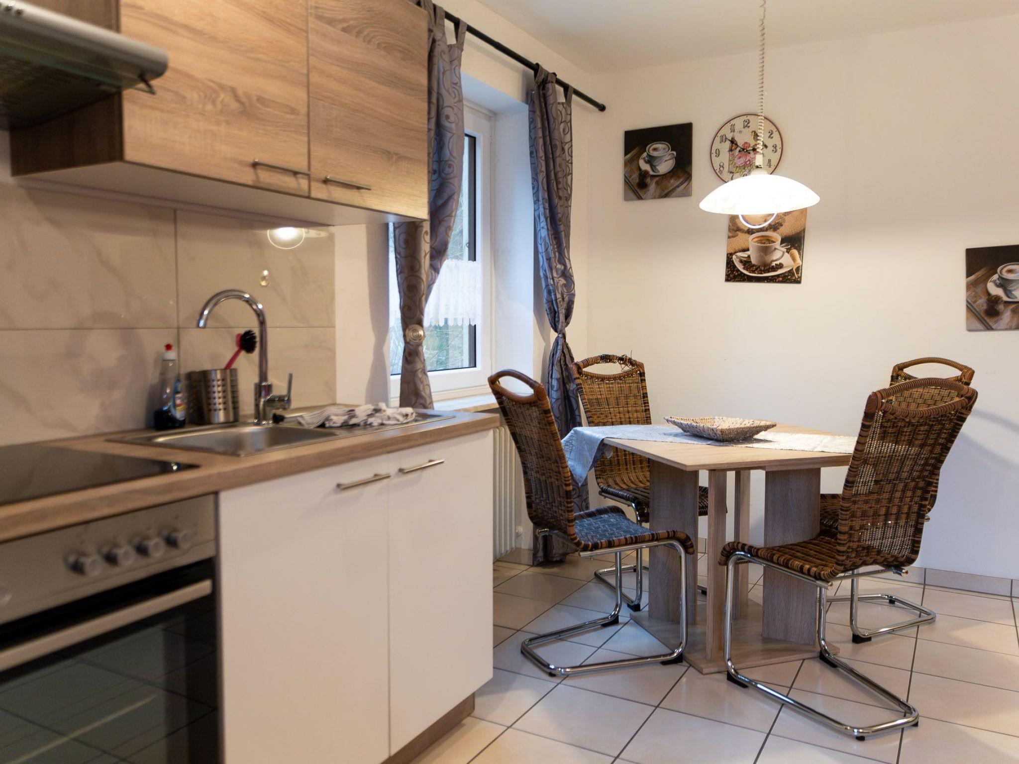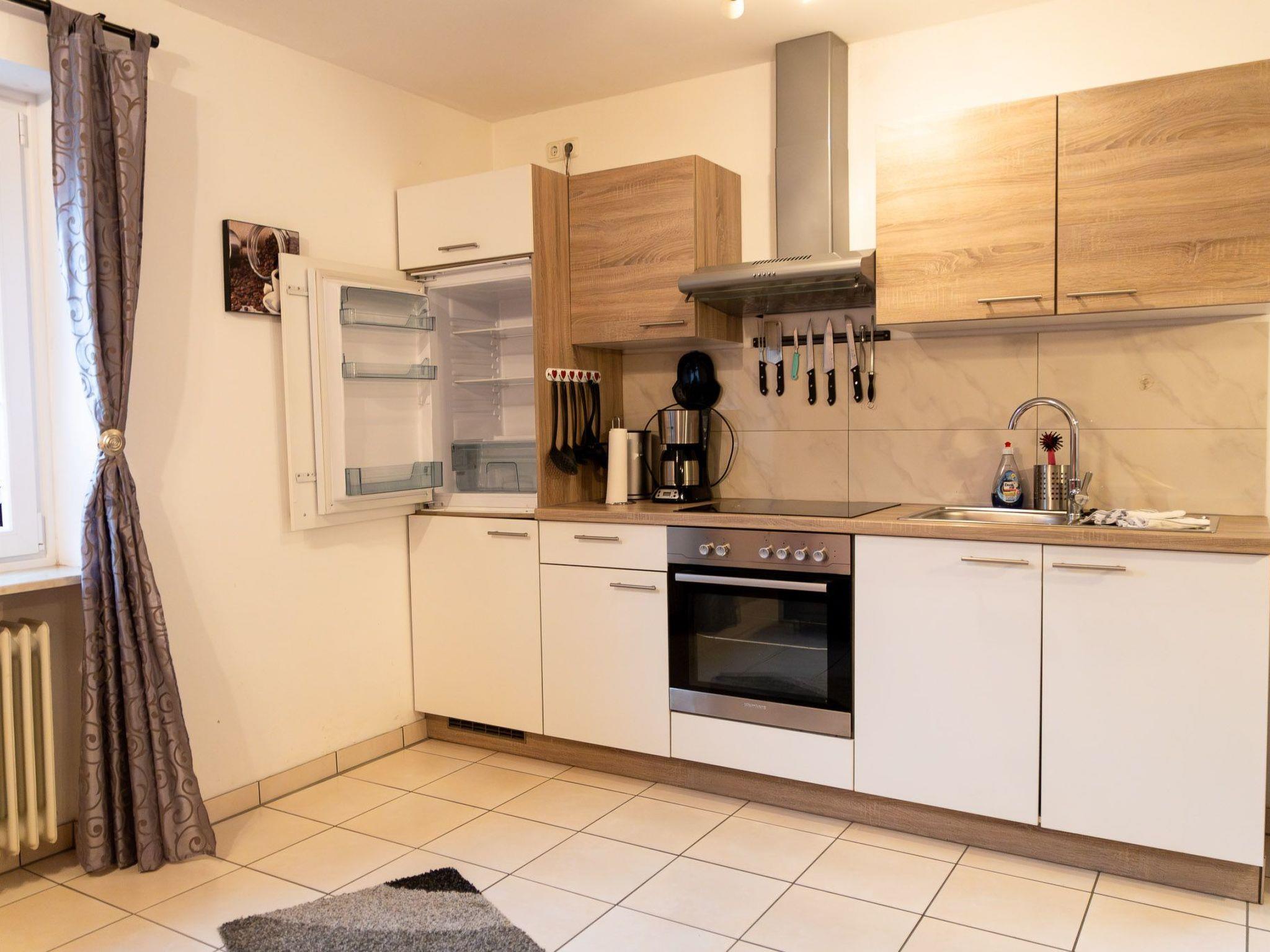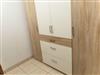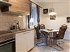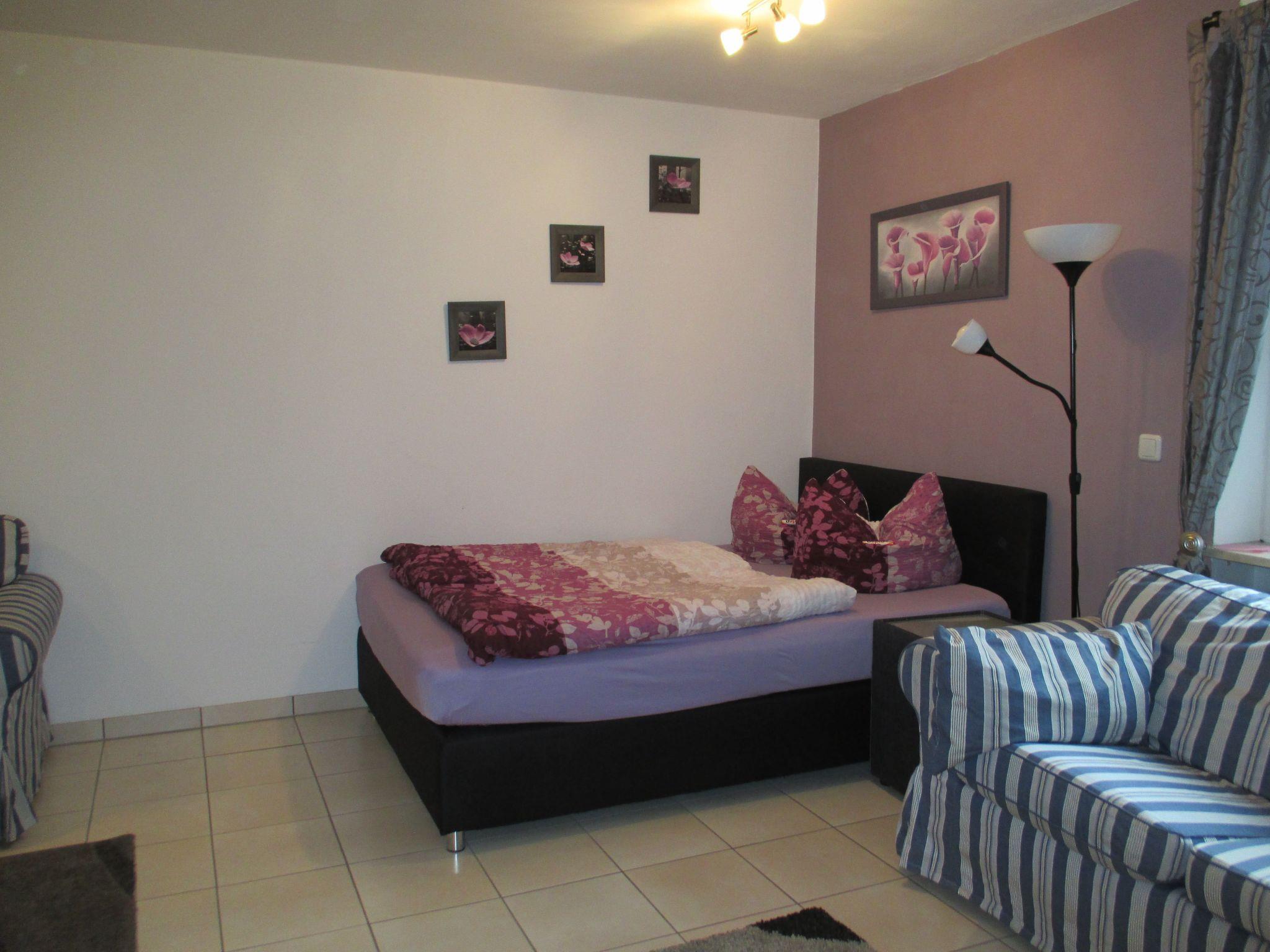 The apartment of ca.40m² with a pleasant layout is ideal for two people. It is on the second floor. There is a big wardrobe in the hallway and the big living and sleeping room has been furnished charmingly with two cosy sofas and a table, a dining table and four rotating chairs, a sideboard, a TV table on wheels and a flatscreen TV, a box spring bed (140 x 200cm), a cosy dining space and a new built-in kitchen, providing everything you need for cooking such as pans, a coffee machine, a toaster, a kettle etc. The daylight bathroom has a washbasin, shower and WC.