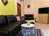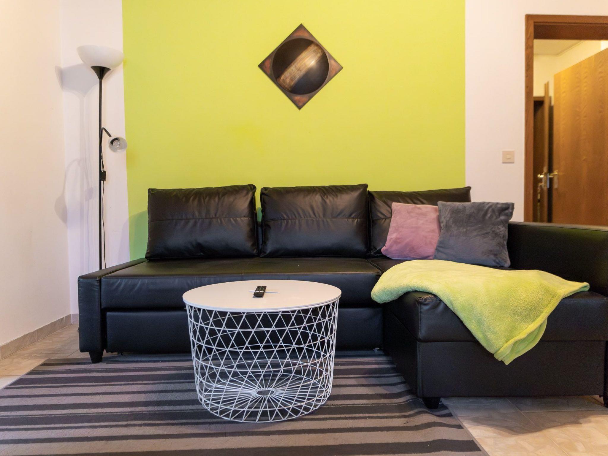 The apartment has been freshly renovated and consists of a hallway, a combined living, sleeping, cooking and dining room, a cosy bedroom, and a daylight bathroom with a shower and WC. There is a big built-in cupboard in the hallway. The living room provides a sofa bed (140 x 200cm when folded out), so that up to four people can be accommodated comfortably in the apartment. The apartment also has an open fireplace and a flatscreen TV. The built-in kitchen is equipped with a kettle, toaster, coffee machine etc., as well as a big seating group. The bedroom has a double bed (140 x 200cm),a bedside table and a big wardrobe.