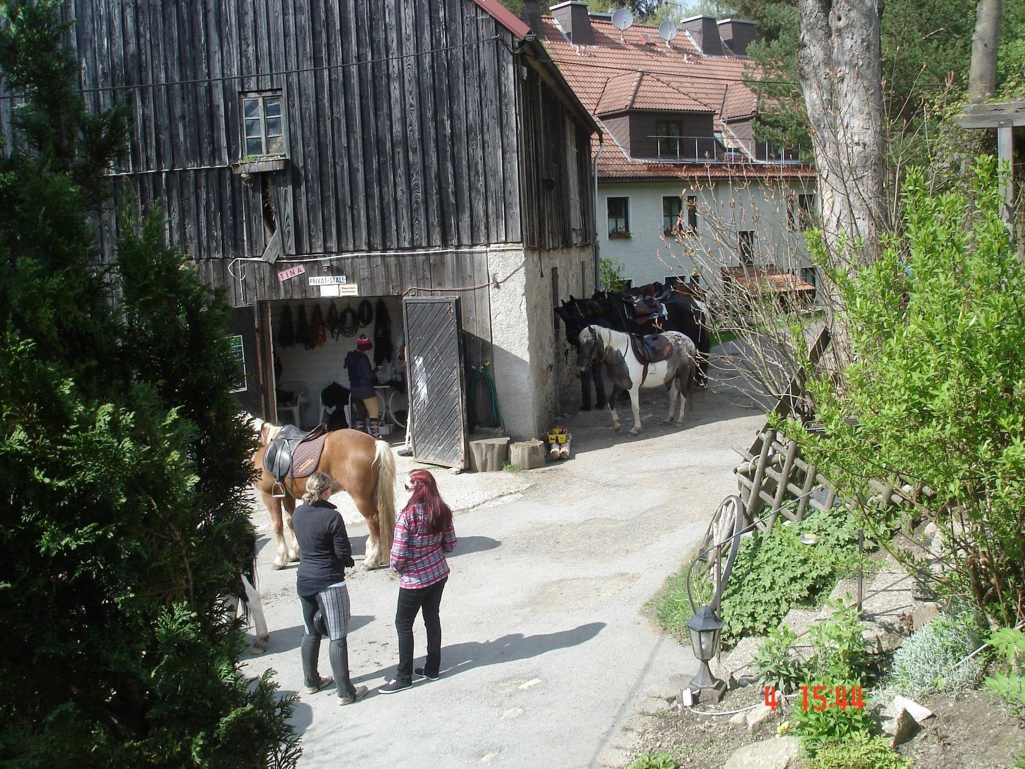 The holiday apartment is in a central location on the farm, with a view towards the forest and the paddocks.