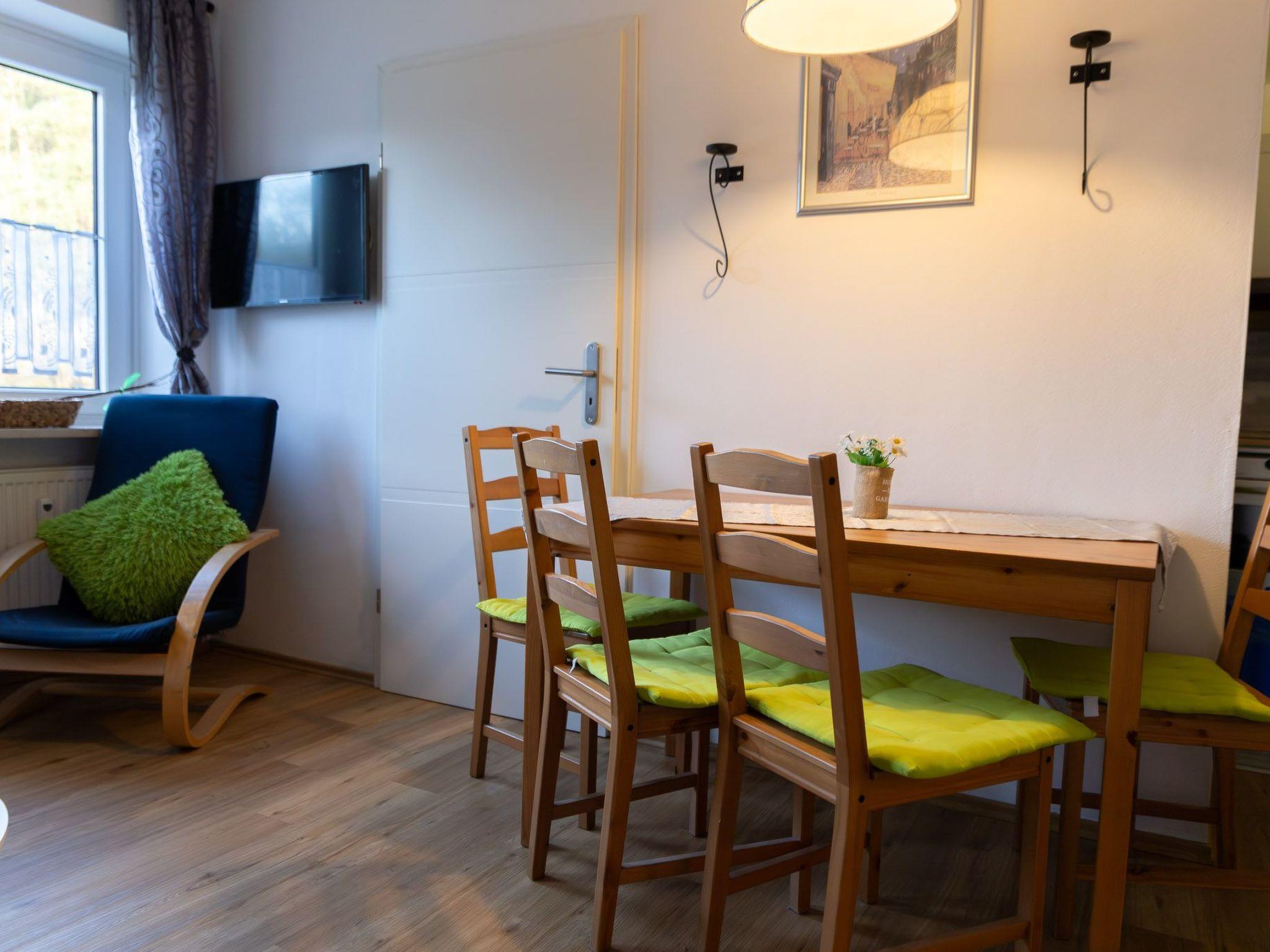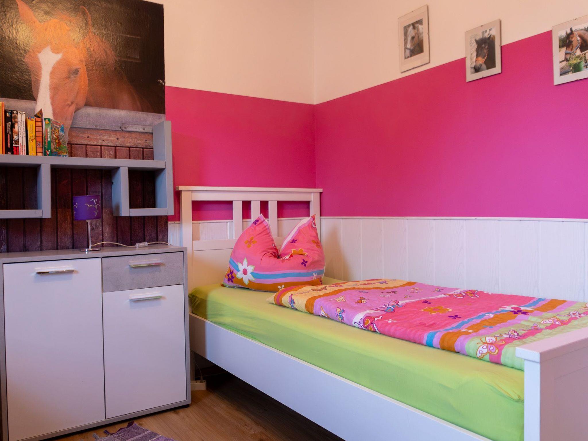 The holiday apartment is in the front part of the riding farm, on the first floor over the entrance. On the south-facing balcony you can enjoy the sun from morning to evening, as well as the view towards the edge of the forest, the riding arena and the pasture.