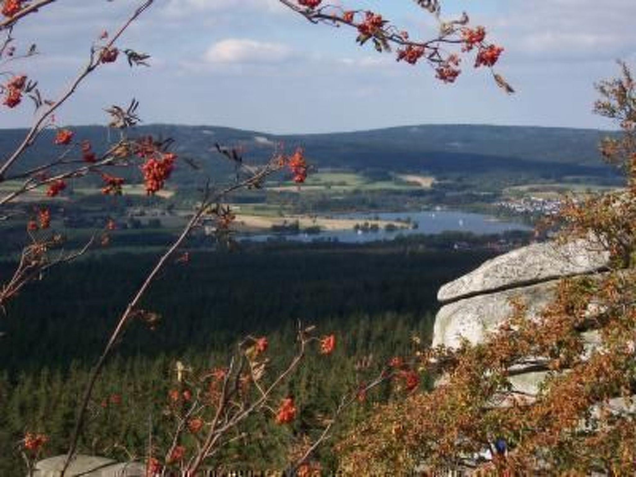The spacious, partially fenced garden is a paradise for children and invites you to play and relax on its extensive lawn. From the balcony you can enjoy a breathtaking view over the Waldsteinkette to the Weißenstädter See, a panorama that invites you to dream.