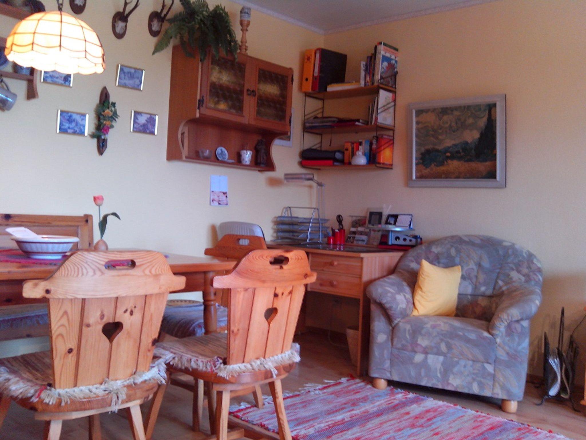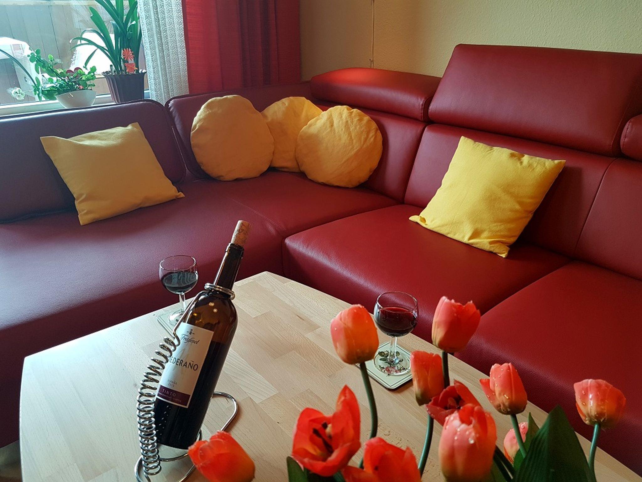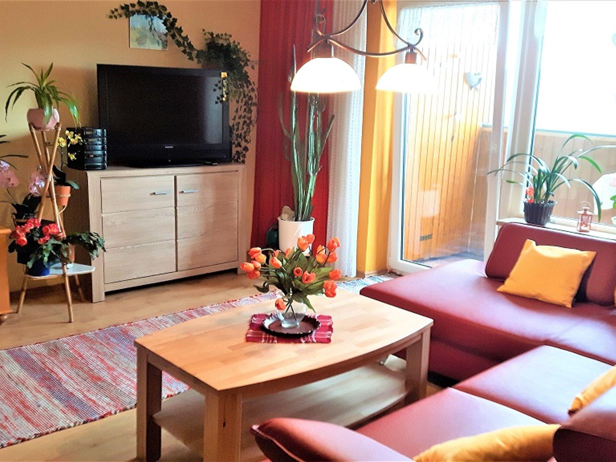 Auf 60 m² bieten wir Ihnen ausreichenden Platz mit Wohn-/ Ess-, Schlafzimmer, Küche, Bad und Balkon. Unser Wunsch ist, dass Sie sich rundherum wohl fühlen; deshalb haben wir versucht, an alles zu denken. Für Eltern mit kleinen Kindern bieten wir unsere umfangreiche Kleinkinder-Ausstattung an. Zu Ihrer Entlastung stehen Ihnen sowohl eine Geschirr- als auch eine Waschmaschine sowie diverse andere Dinge zur Verfügung. Eine dritte Person kann auf dem bequemen Ausziehsofa im Wohnzimmer schlafen.