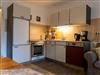 Die geräumige Einbauküche verfügt über einen Geschirrspüler, einen Kühlschrank mit Gefrierfach und einen Herd mit Backofen. Ein Toaster, ein Wasserkocher und eine Kaffeemaschine sowie genügend Geschirr, Töpfe und Gläser sind ebenfalls vorhanden.