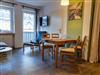 Der gemütliche Wohnbereich wurde mit einem großen Sofa ausgestattet, welches der ganzen Familie genug Platz bietet. Außerdem sind ein Schwingsessel mit Hocker, ein kleiner Wohnzimmertisch und ein Flachbildfernseher vorhanden.