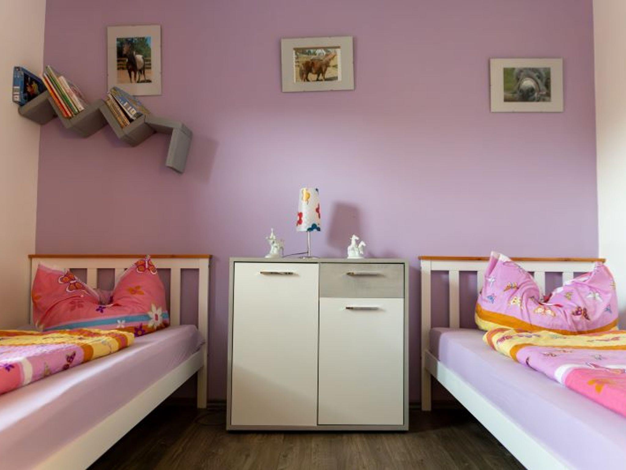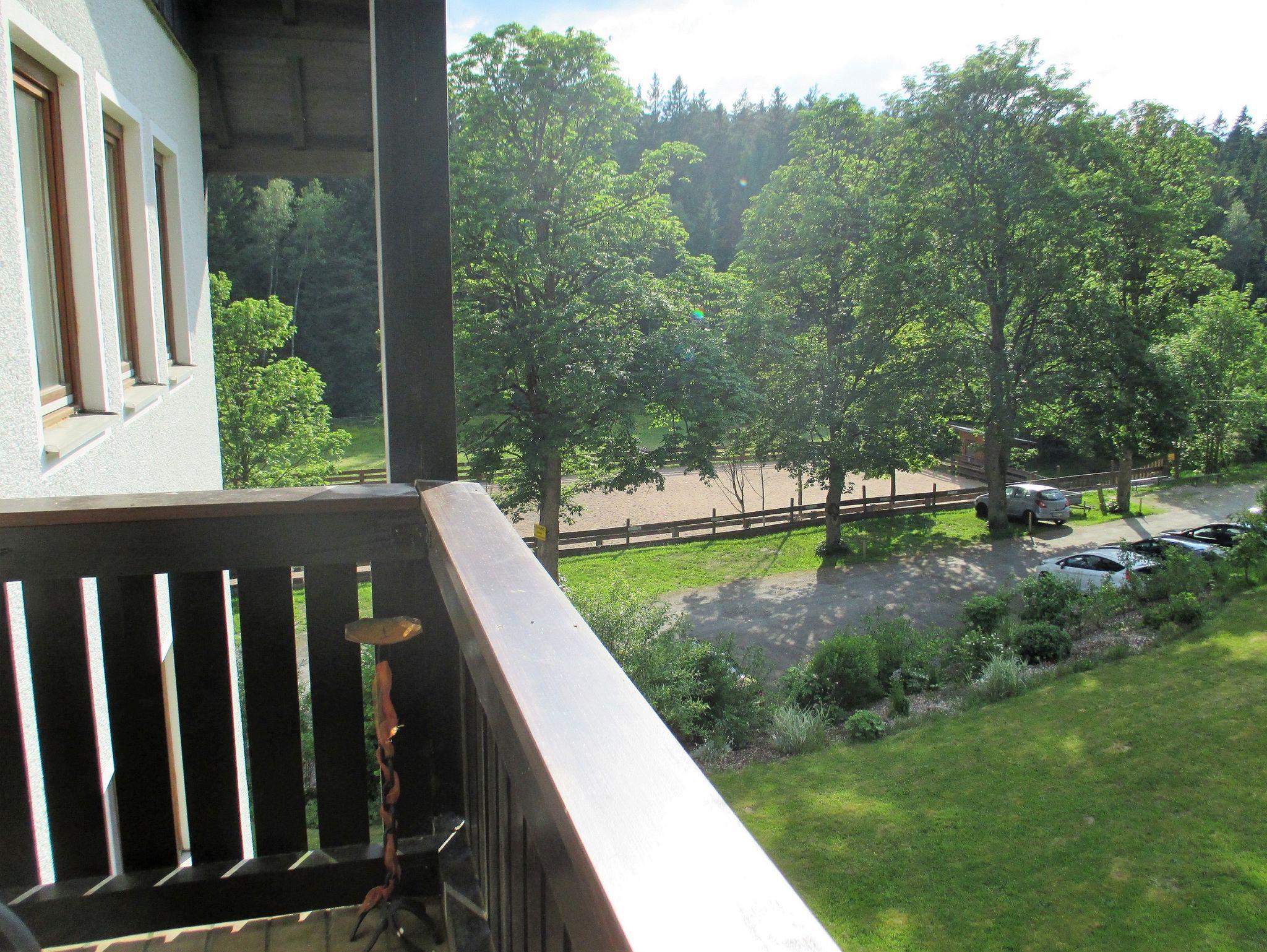 Diese Ferienwohnung ist nach unserem Großpferd Romano benannt. Sie befindet sich auf der Giebelseite im zweiten Stock, hat eine Größe von ca. 45m² und verfügt über einen großen Balkon mit Sonne von mittags bis abends. Von dort aus hat man einen schönen Blick zu Wald, Reitplatz, Weide und Finkenmühlengelände.