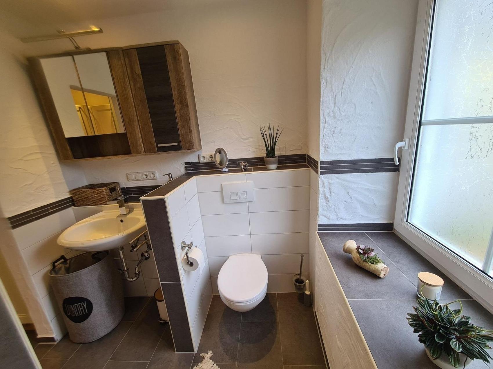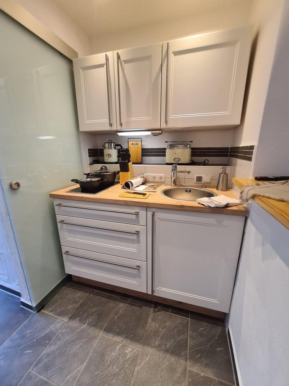 Die Wohnung verfügt über eine voll ausgestattete Küche zum Kochen mit Ihrer Familie u. einem Wohlfühlbad mit ebenerdiger Dusche u. Fußbodenheizung für wohlig warme Füße, sowie eine Waschmaschine auf der Etage für weniger Gepäck.
