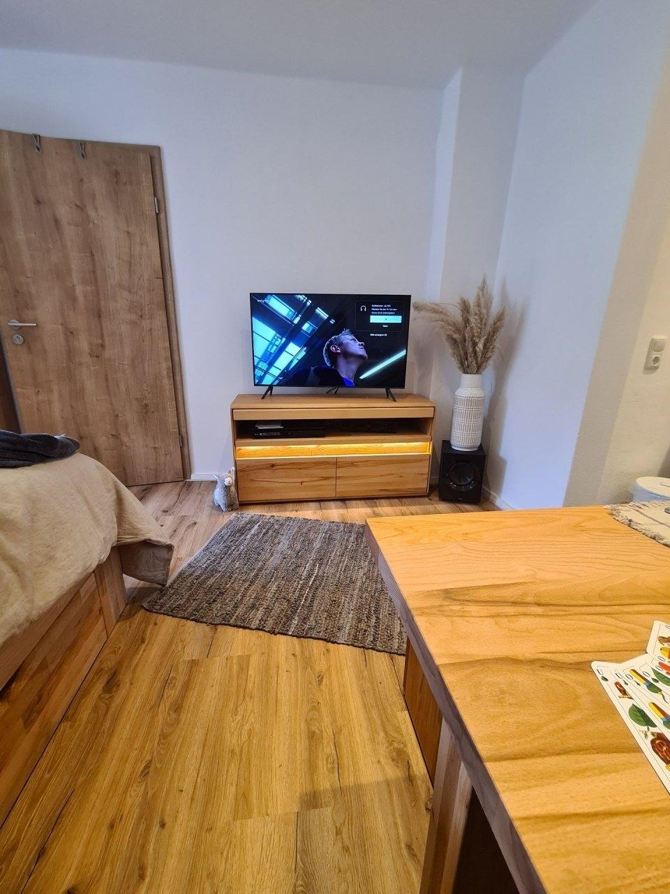 Mit hochwertiger Bettwäsche, Matratzen-Topper u. einem Smart-TV mit kostenlosen Channels, Spielesammlung u. Bücher, verbringen Sie auch bei schlechtem Wetter, gemütliche u. kuschelige Stunden in Ihrer Wohnung.