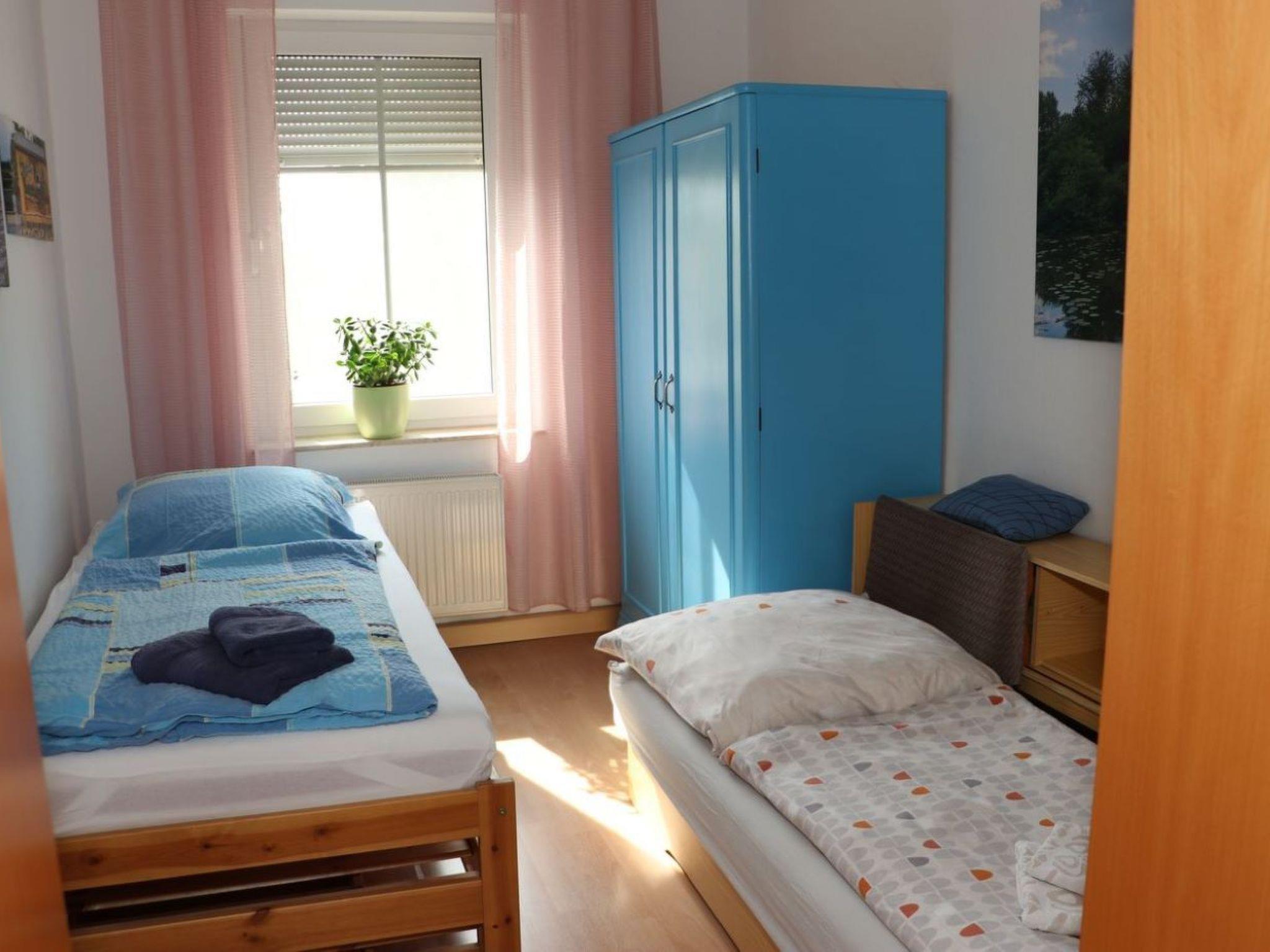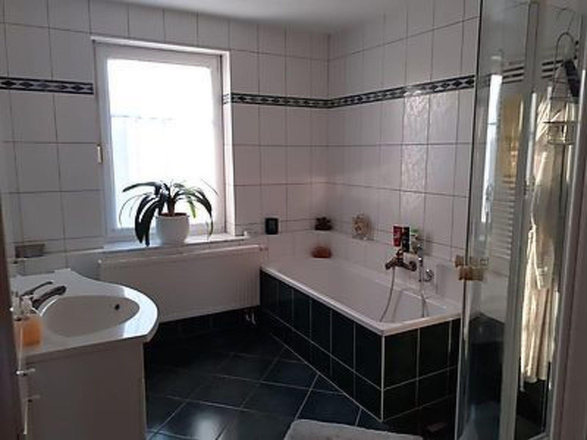 The quietly located, spacious holiday flat is on the 2nd floor of the house. It is fully, modernly and lovingly furnished. The flat has a bedroom with a double bed (1.80 m wide) and a bedroom with two single beds (0.90 m wide), a living room with a pull-out double sofa bed for 2 people, a 2-seater, flat-screen TV and radio, as well as a room with a double sofa bed for an additional person. A spacious, fully equipped kitchen with dining area, hob, oven, dishwasher, coffee machine and kettle, as well as a large bathroom with shower, WC and bathtub are also part of the flat. A further WC is located in a separate room in the stairwell. In the house there are two smaller 2-room holiday flats on the first floor, as well as a washing machine room. An extra bed is possible.