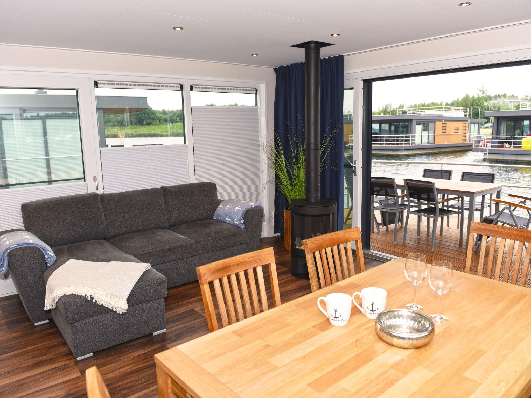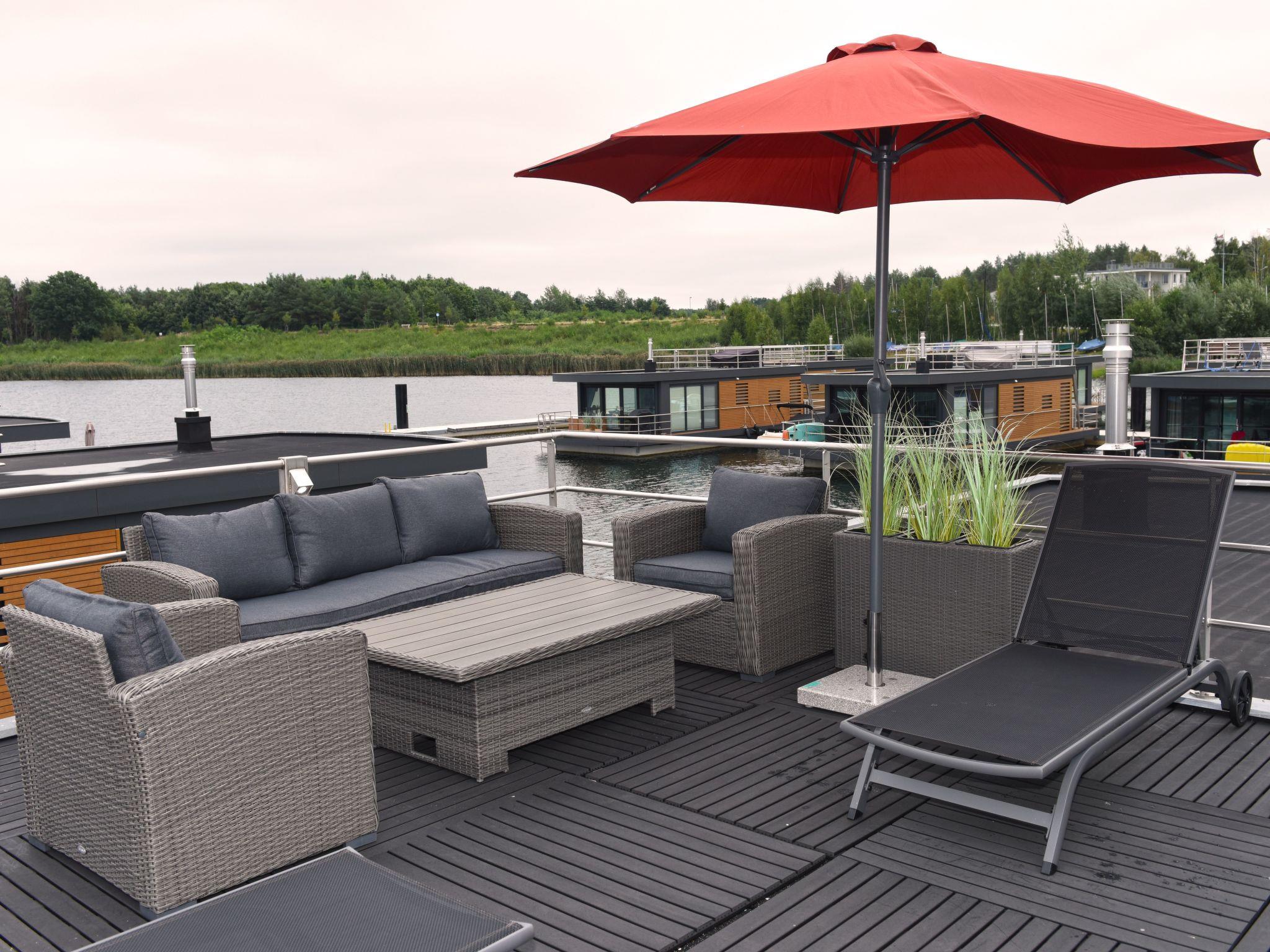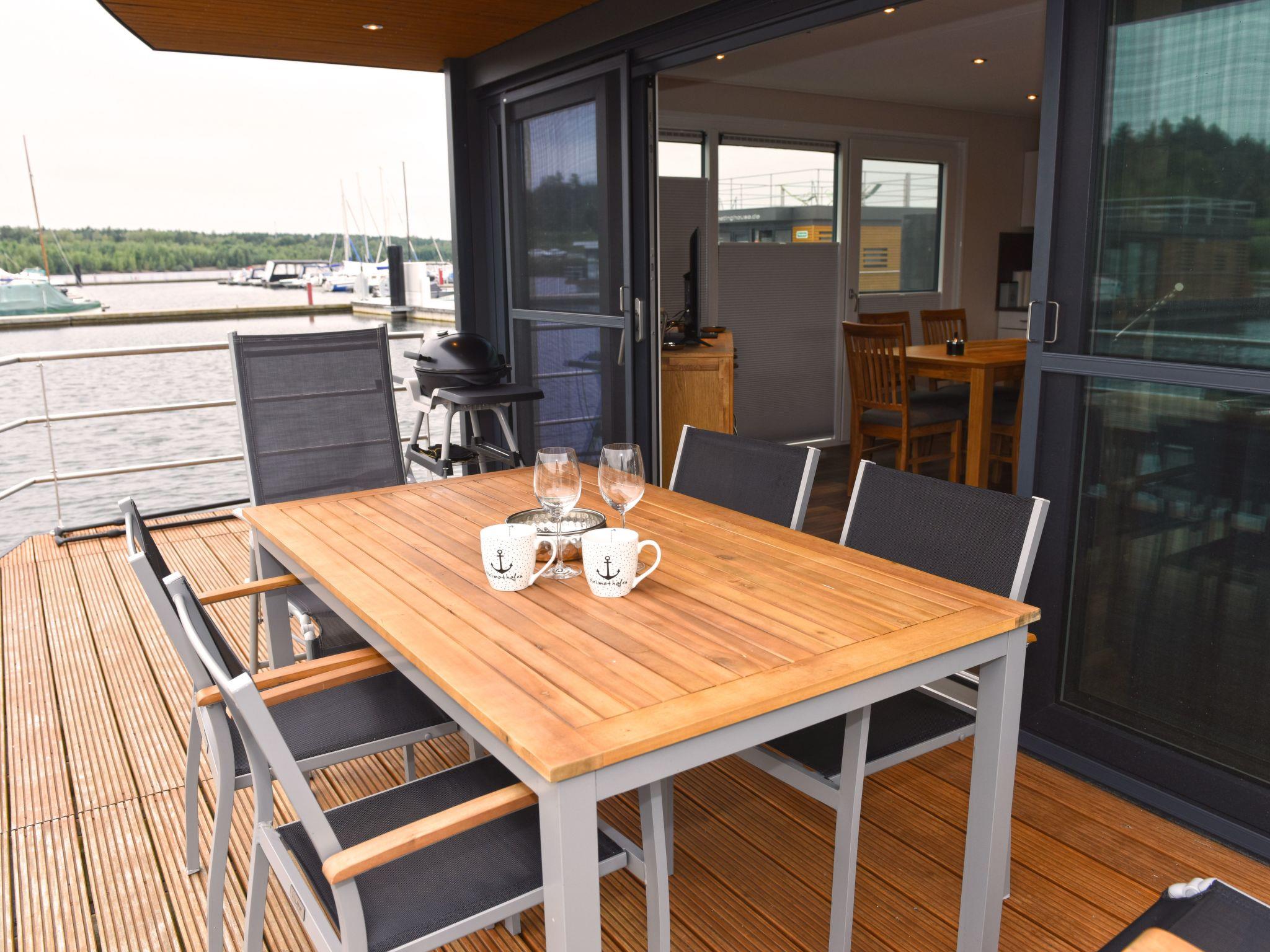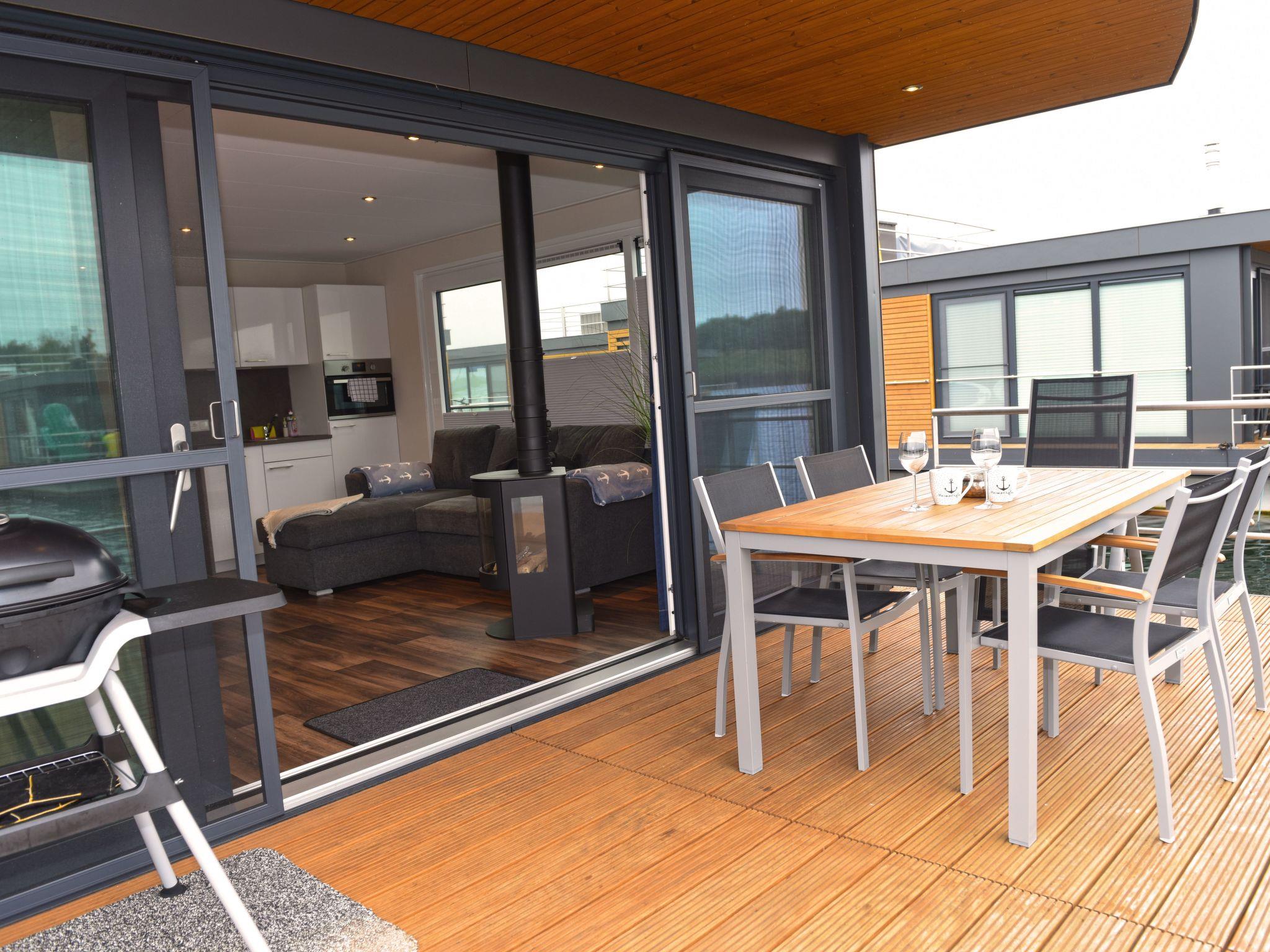 Dive away from everyday life and into your dream home on the water! The moored houseboat "Dolce Vita" offers everything you need for a relaxing holiday with its high-quality living space and two sun terraces. Thanks to the breathtaking view, nothing stands in the way of relaxation and recreation.the house has two bedrooms, each with a comfortable double bed (1.60 m x 2.00 m). The bathroom is equipped with a shower, washbasin, mirror, hairdryer and a separate WC. The living and dining area is a stylishly furnished room. The fully equipped eat-in kitchen includes a fridge with freezer compartment, dishwasher, ceramic hob, microwave, coffee machine, toaster, kettle, crockery, cutlery and much more.from the living and dining area you can access the terrace and enjoy your meals in the lounge area or simply relax.a car park is available for you free of charge. You can drive close to the jetty for loading and unloading. Bed linen, towels and a cosy sofa blanket are included.