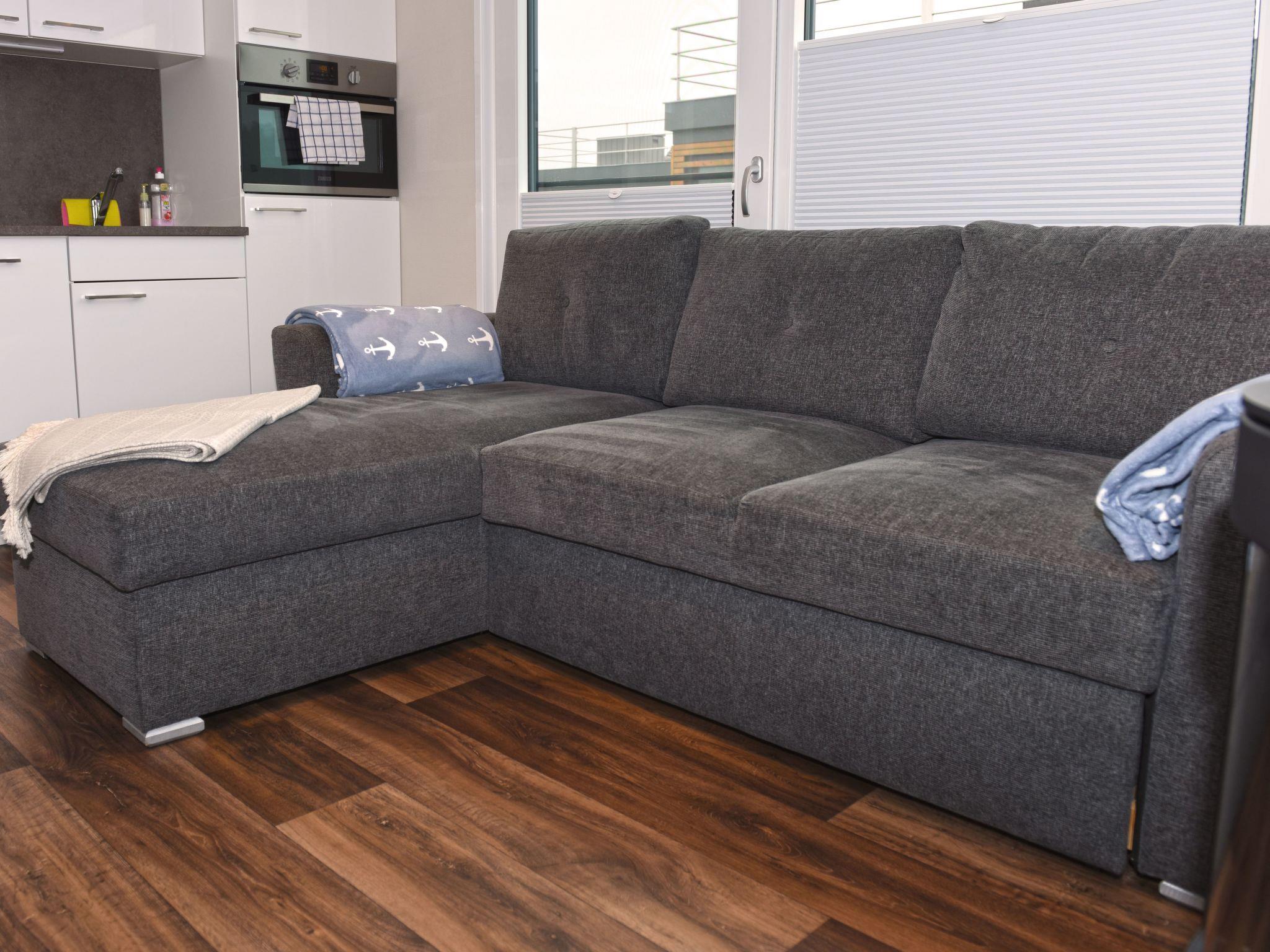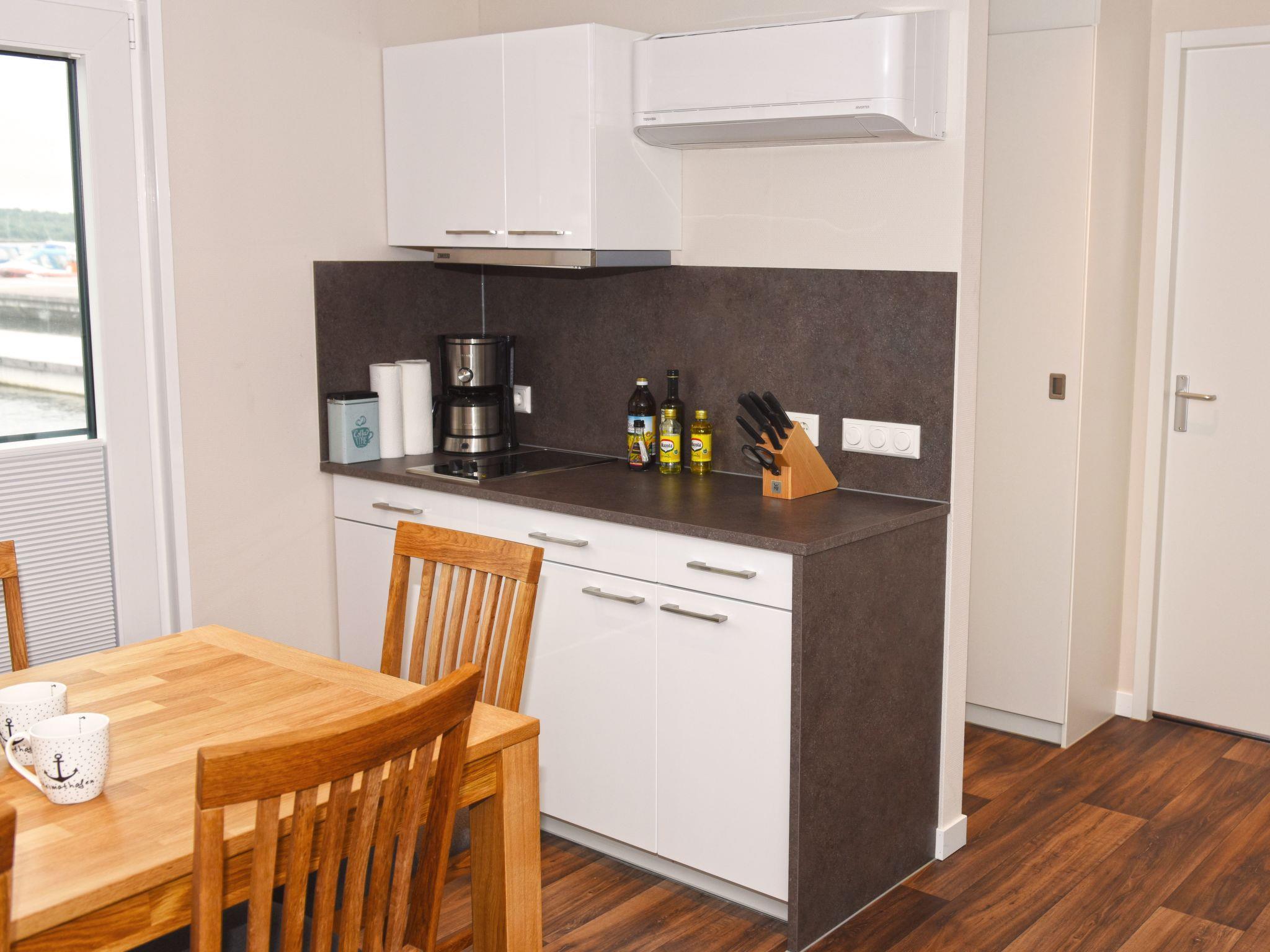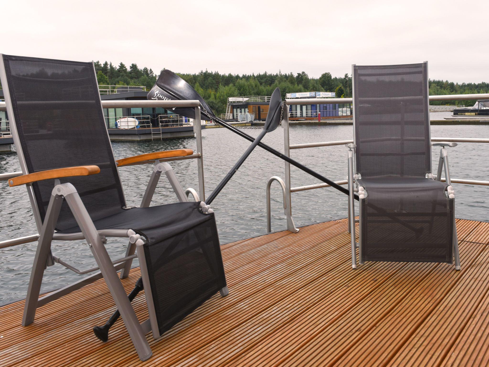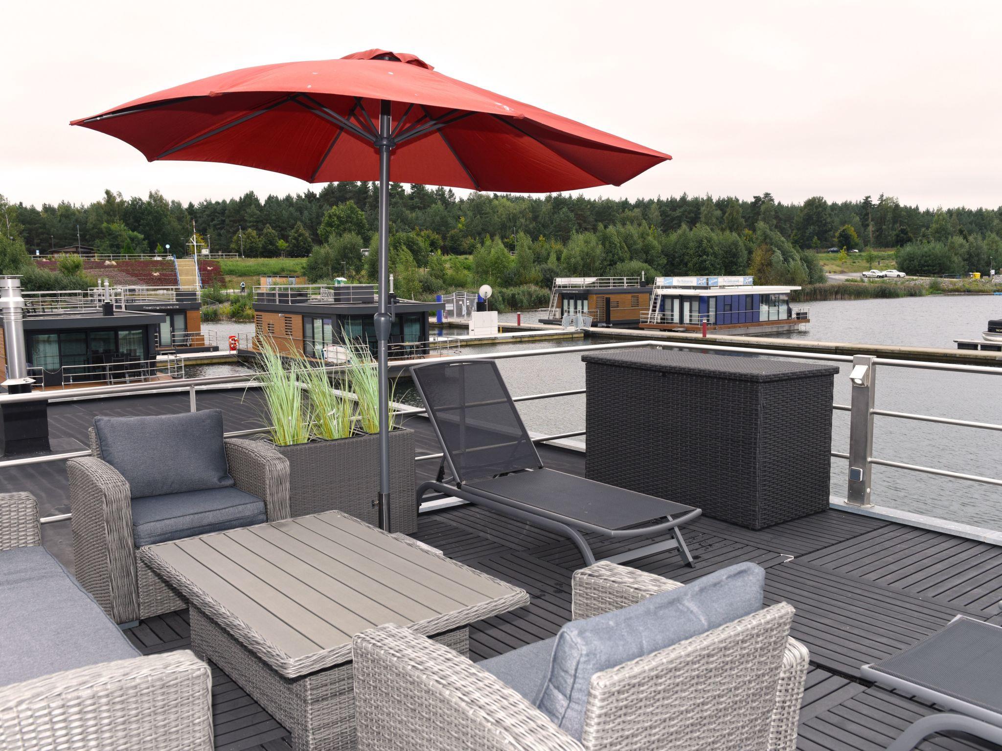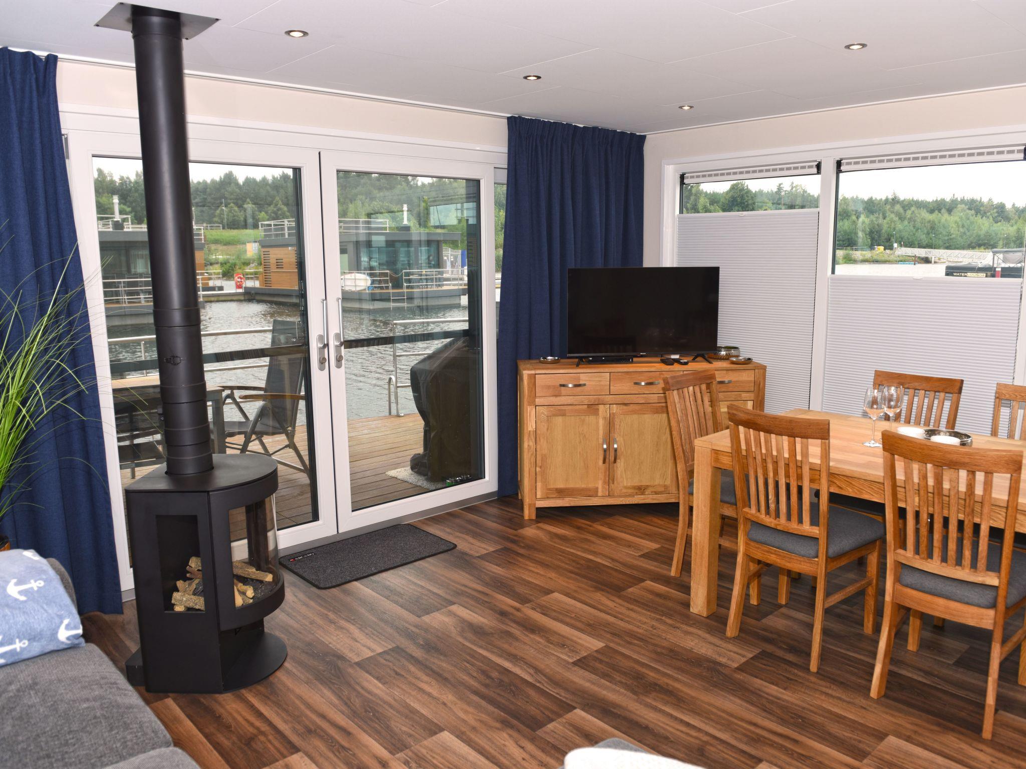 Dive away from everyday life and into your dream home on the water! The moored houseboat "Dolce Vita" offers everything you need for a relaxing holiday with its high-quality living space and two sun terraces. Thanks to the breathtaking view, nothing stands in the way of relaxation and recreation.the house has two bedrooms, each with a comfortable double bed (1.60 m x 2.00 m). The bathroom is equipped with a shower, washbasin, mirror, hairdryer and a separate WC. The living and dining area is a stylishly furnished room. The fully equipped eat-in kitchen includes a fridge with freezer compartment, dishwasher, ceramic hob, microwave, coffee machine, toaster, kettle, crockery, cutlery and much more.from the living and dining area you can access the terrace and enjoy your meals in the lounge area or simply relax.a car park is available for you free of charge. You can drive close to the jetty for loading and unloading. Bed linen, towels and a cosy sofa blanket are included.