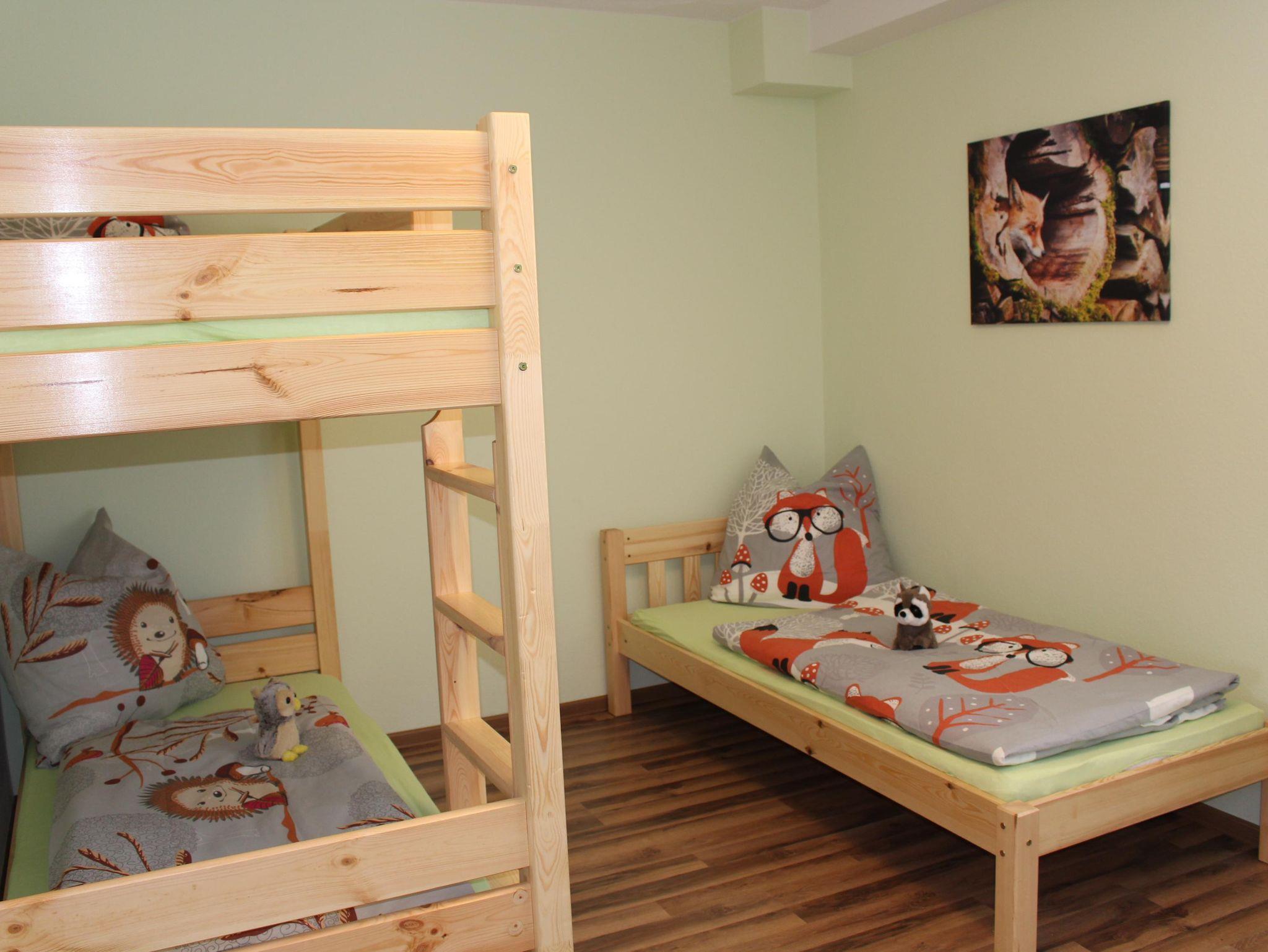 Unsere 72 m² große Ferienwohnung Fuchs ist mit Wohnküche, Schlafzimmer, Kinderzimmer und Wannenbad ausgestattet. Das Schlafzimmer verfügt über ein Doppelbett, das Kinderzimmermit über ein Etagenbett, ein Einzelbett und eine Kinderküche. Der Wohnbereicht ist mit einem Flatscreen und kostenlosem Wifi ausgestattet. Die Küchenzeile verfügt über einen Herd mit Backofen, eine Filterkaffeemaschine, Mikrowelle, Toaster und Wasserkocher. Das Badezimmer ist mit einer Duschwanne ausgestattet. Bettwäsche und Handtücher sind inklusive.