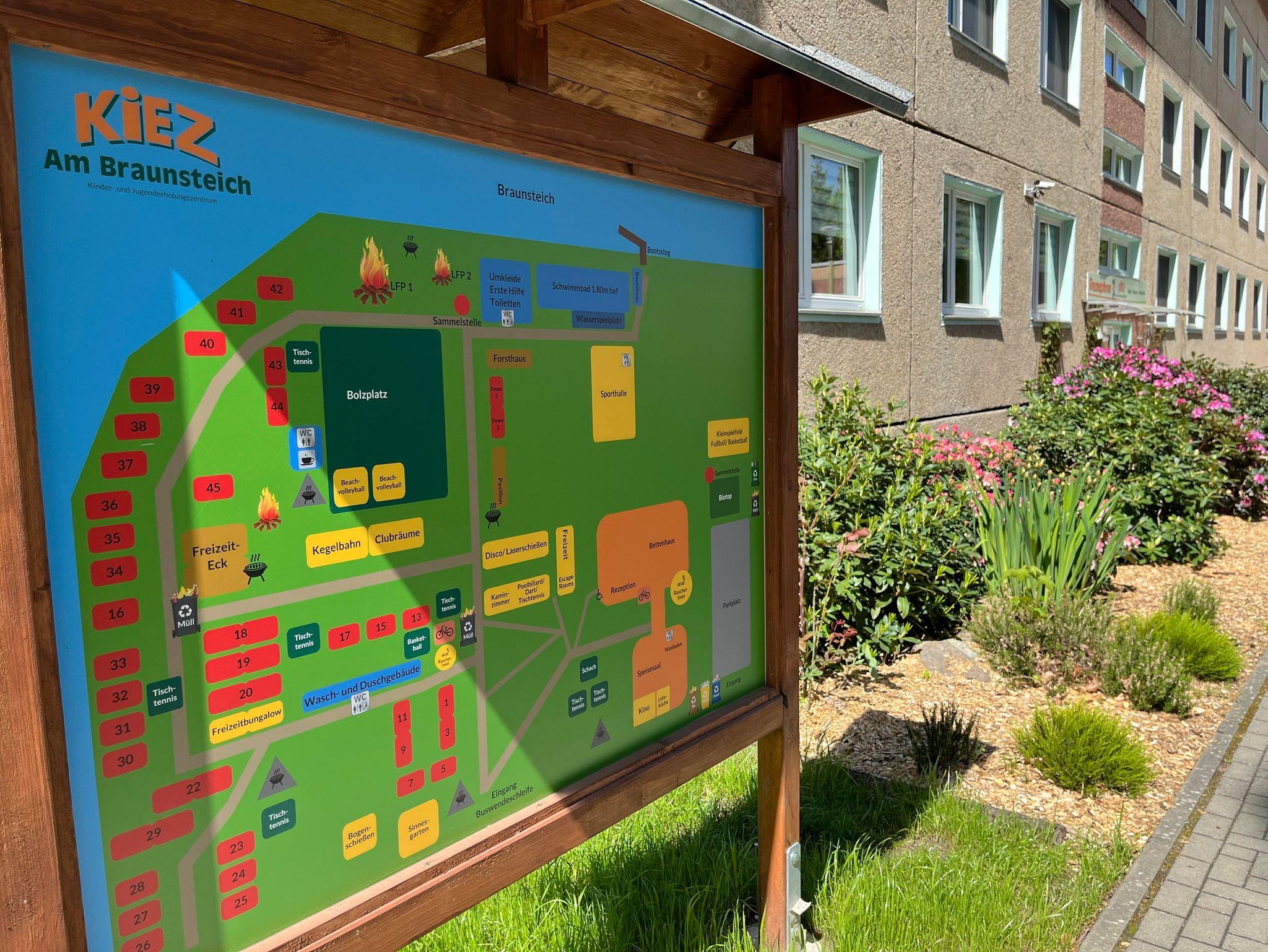 Unser KiEZ liegt im nördlichen Teil der sächsischen Lausitz. Rings um das KiEZ befindet sich die Muskauer Heide, welche geprägt ist von riesigen Kiefernwäldern, unzähligen Seen und Teichen.