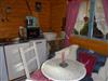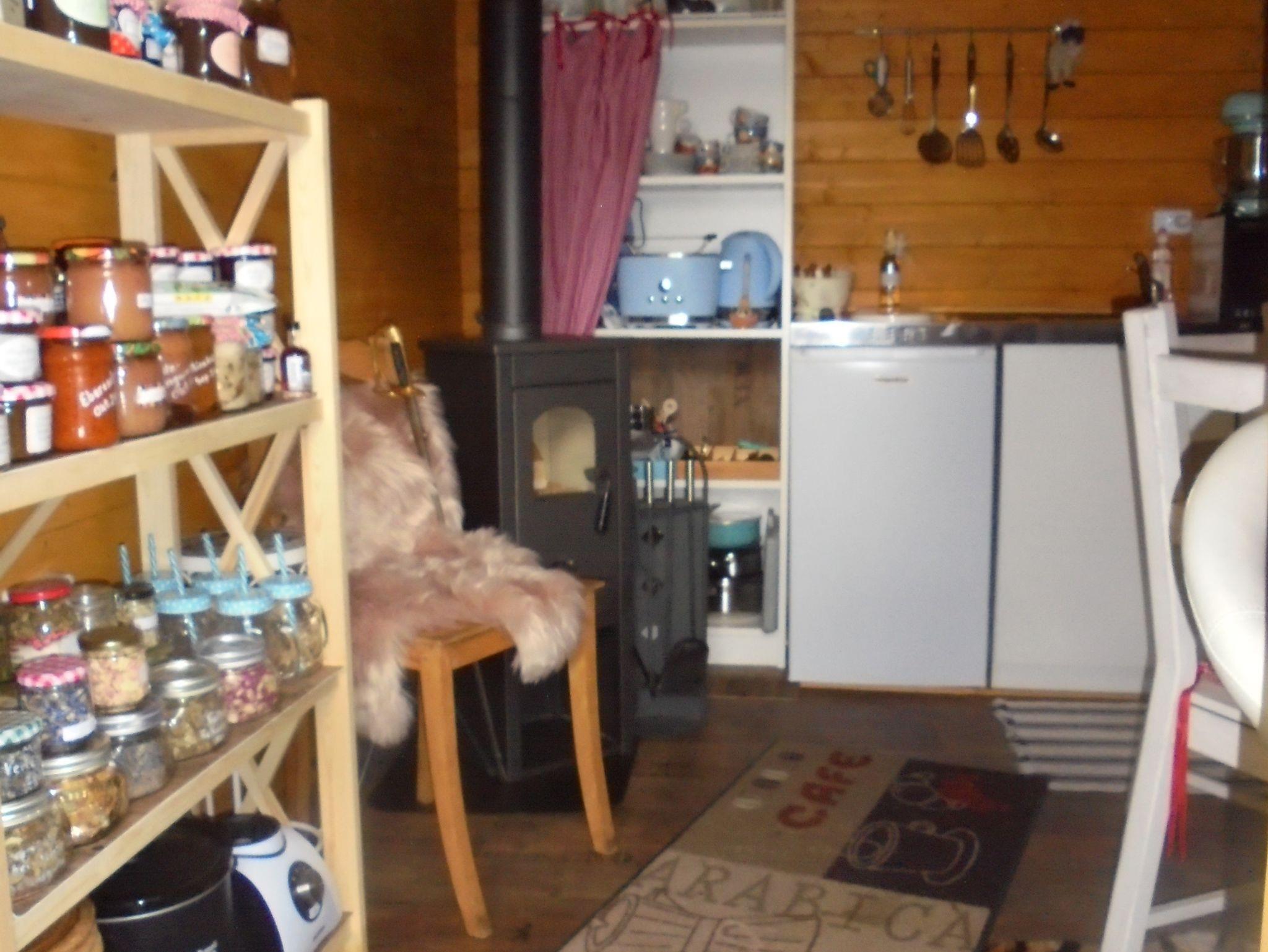 Inmitten eines schönen Romantikgarten, befindet sich das Tinyhaus 1, welches aus finnischen Holz in blauer Farbe erstrahlt. Direkt neben Lissys Romantik-Puppenhaus, welches aufgrund seiner Einrichtung sowohl einen romanti-schen als auch einen rustikalen Flair ausstrahlt, finden Sie einen Steingrill und ein Gourmetgrill vor, wo die lauen Sommerabende genossen werden können. In dem historischen Blockbohlenhaus können Sie von einer kleinen Küchenzeile mit Infrarotbackofen, Spülmaschine und separaten Handwaschbecken bis hin zu einer auskappbaren Bettcouch mit Bettwäsche entdecken. Die romantische Atmosphäre wird durch den offenen Kaminofen unterstützt und strahlt ein gemütliches Ambiente aus. Die Toilette und Dusche ist links nebenan.