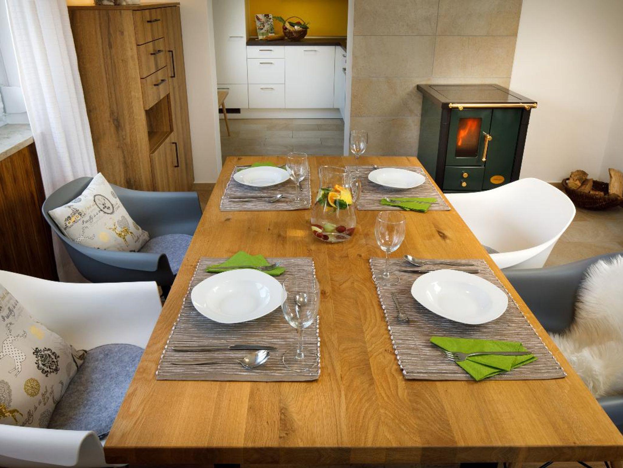 • Holzofen im Esszimmer für eine wohlige Atmosphäre (der Holzkorb wird für Sie ganzjährig an kalten Tagen mit Buchenholz gefüllt)