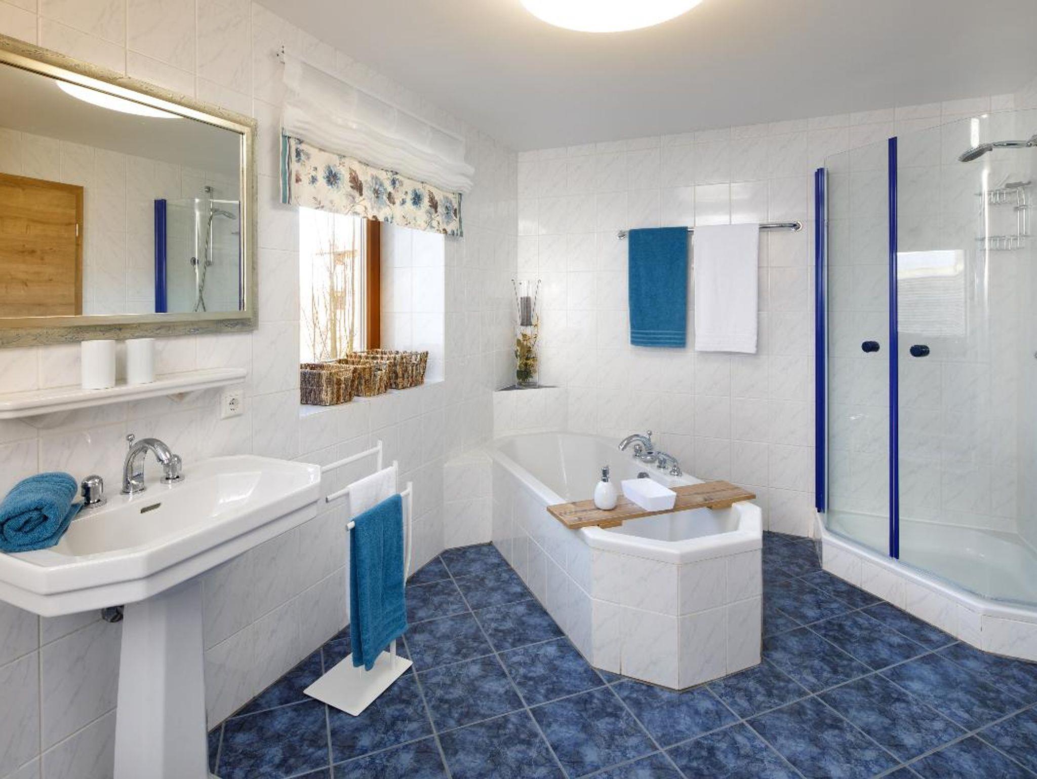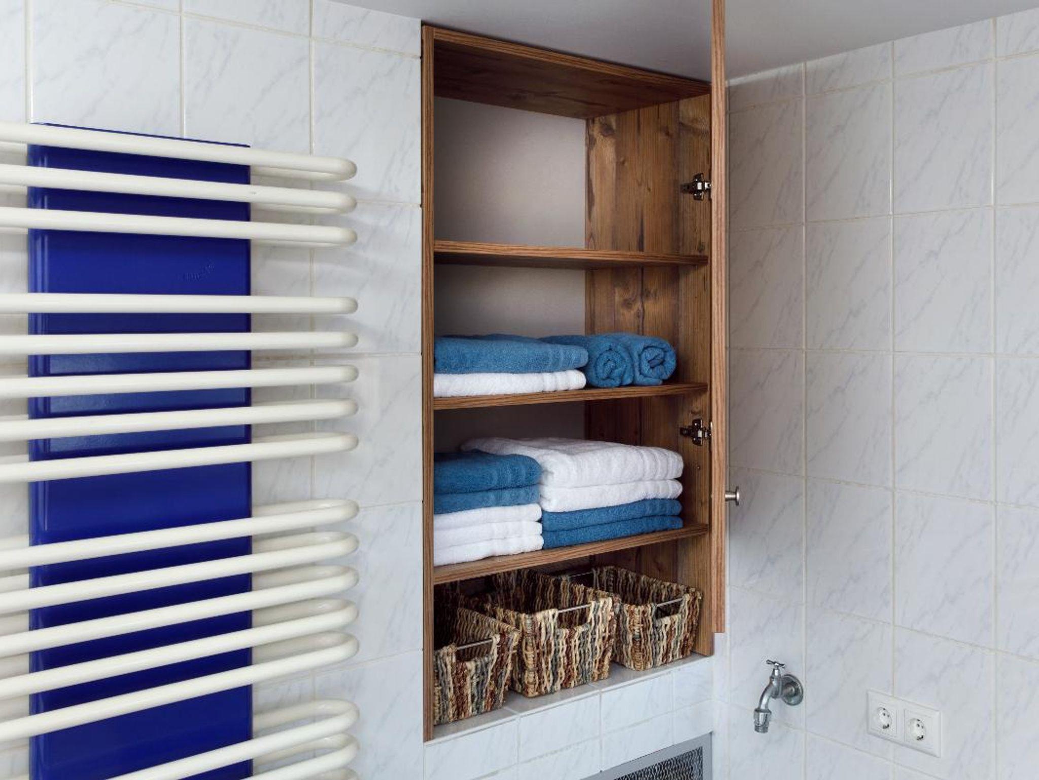 • Badewanne, WC, Dusche, Waschbecken, Einbauschrank, Wäscheständer, Föhn , Seifenspender