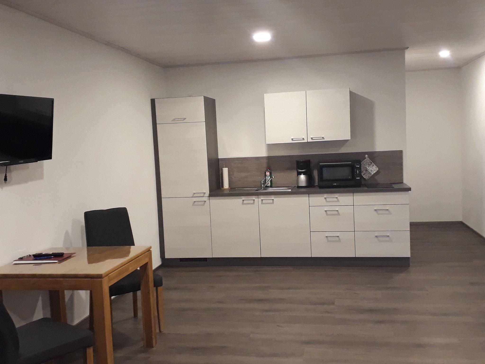 Unsere Appartements befinden sich im 1. Stock und sind mit einer voll ausgestatteten Küchenzeile eingerichtet. (Das Doppelzimmer Müller- Thurgau hat keine Küchenzeile!!