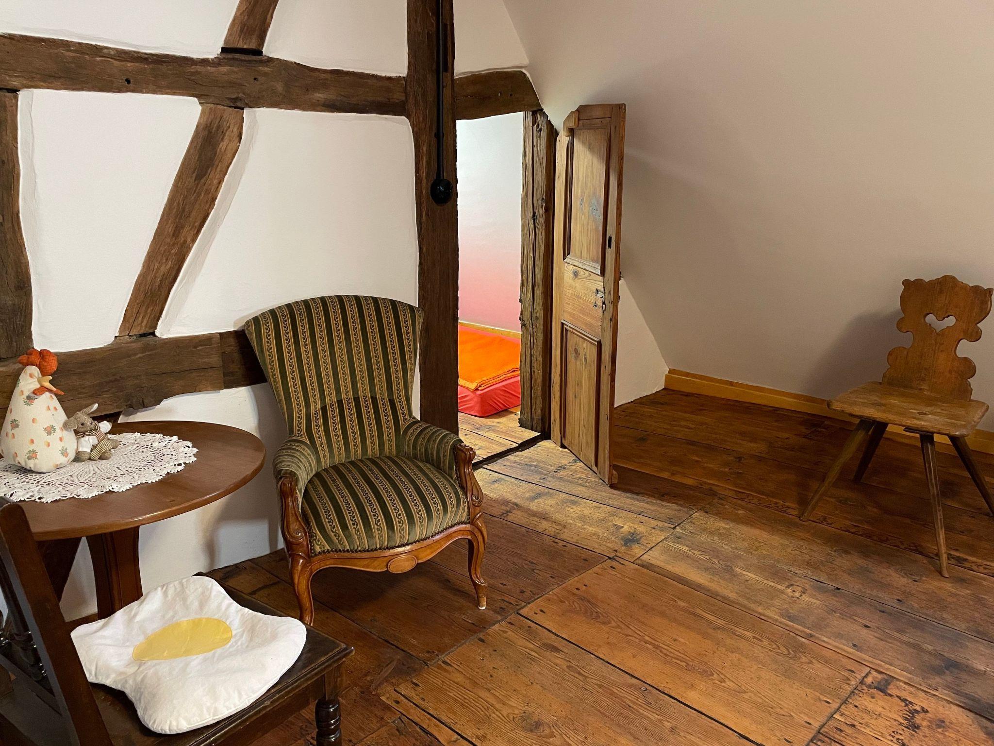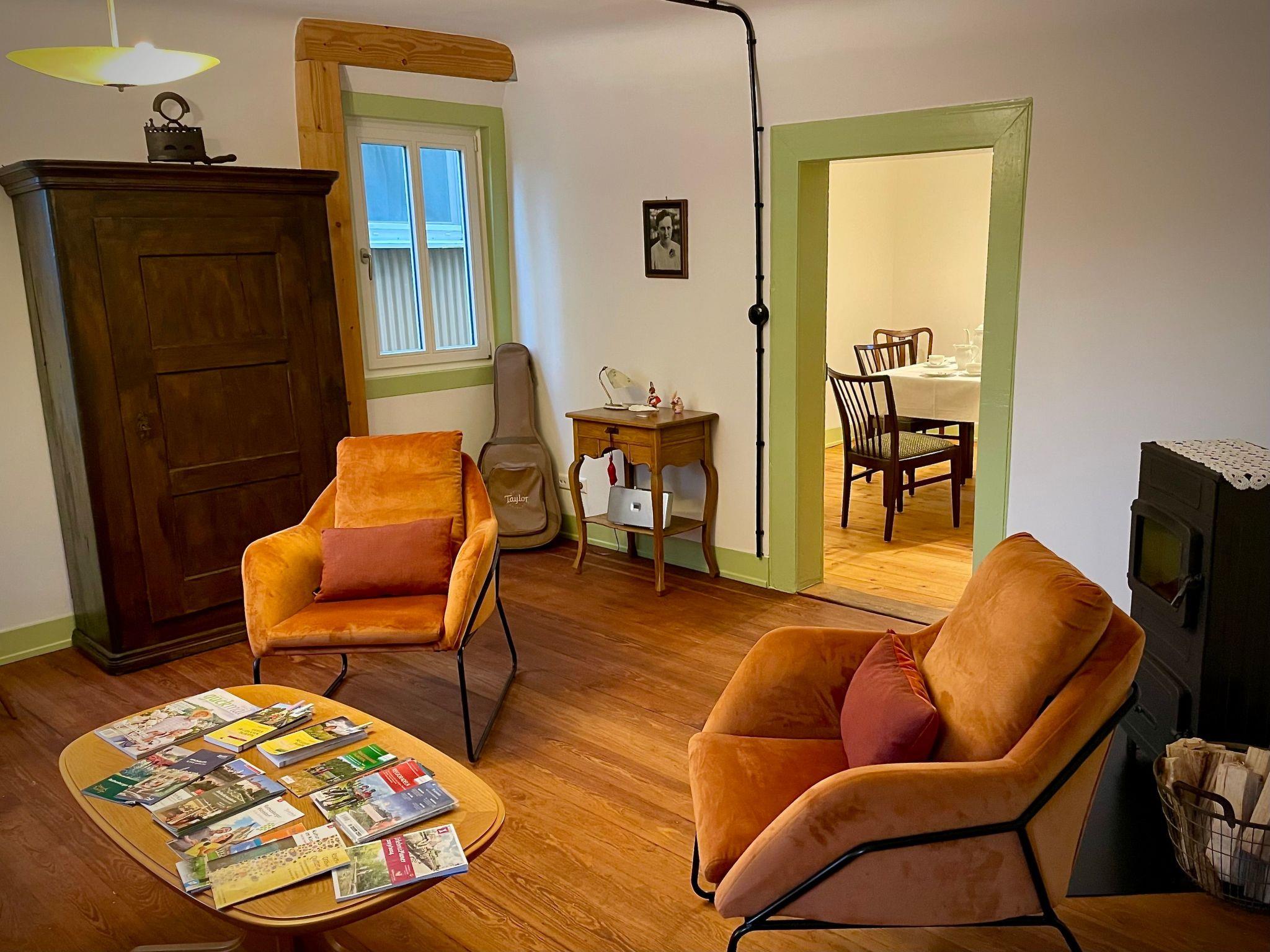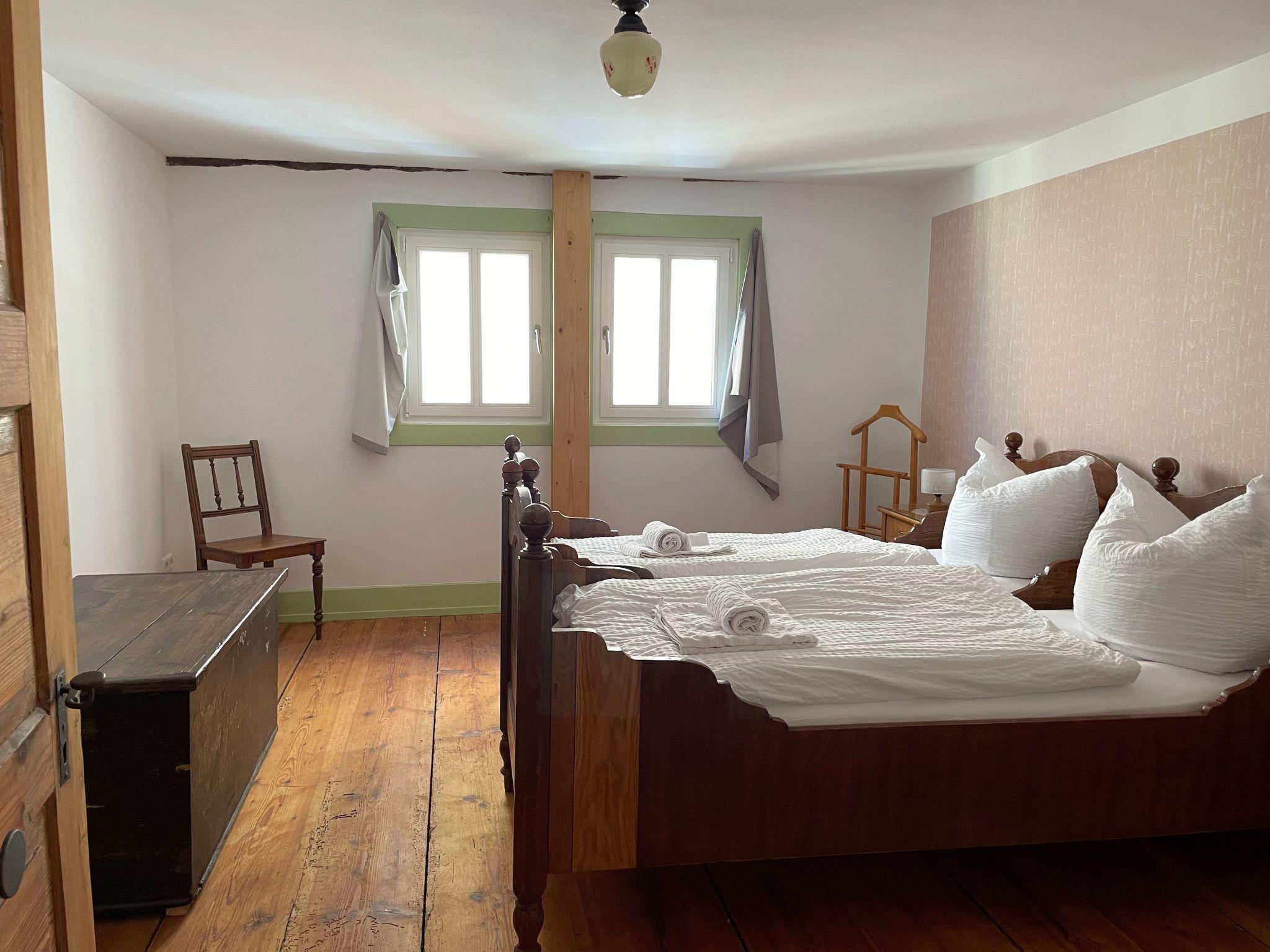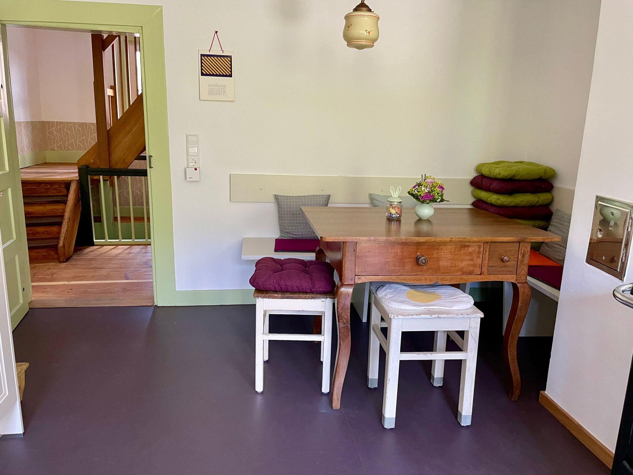 As the historical charm of the Nassauer Forsthaus has been preserved, the house is not barrier-free. The stairs are steep, there are door thresholds and low passageways, and the floors are uneven in places. We recommend slippers. Free WLAN available. Short-term parking directly at the house, otherwise public car park approx. 50m away. No accommodation for fitters.