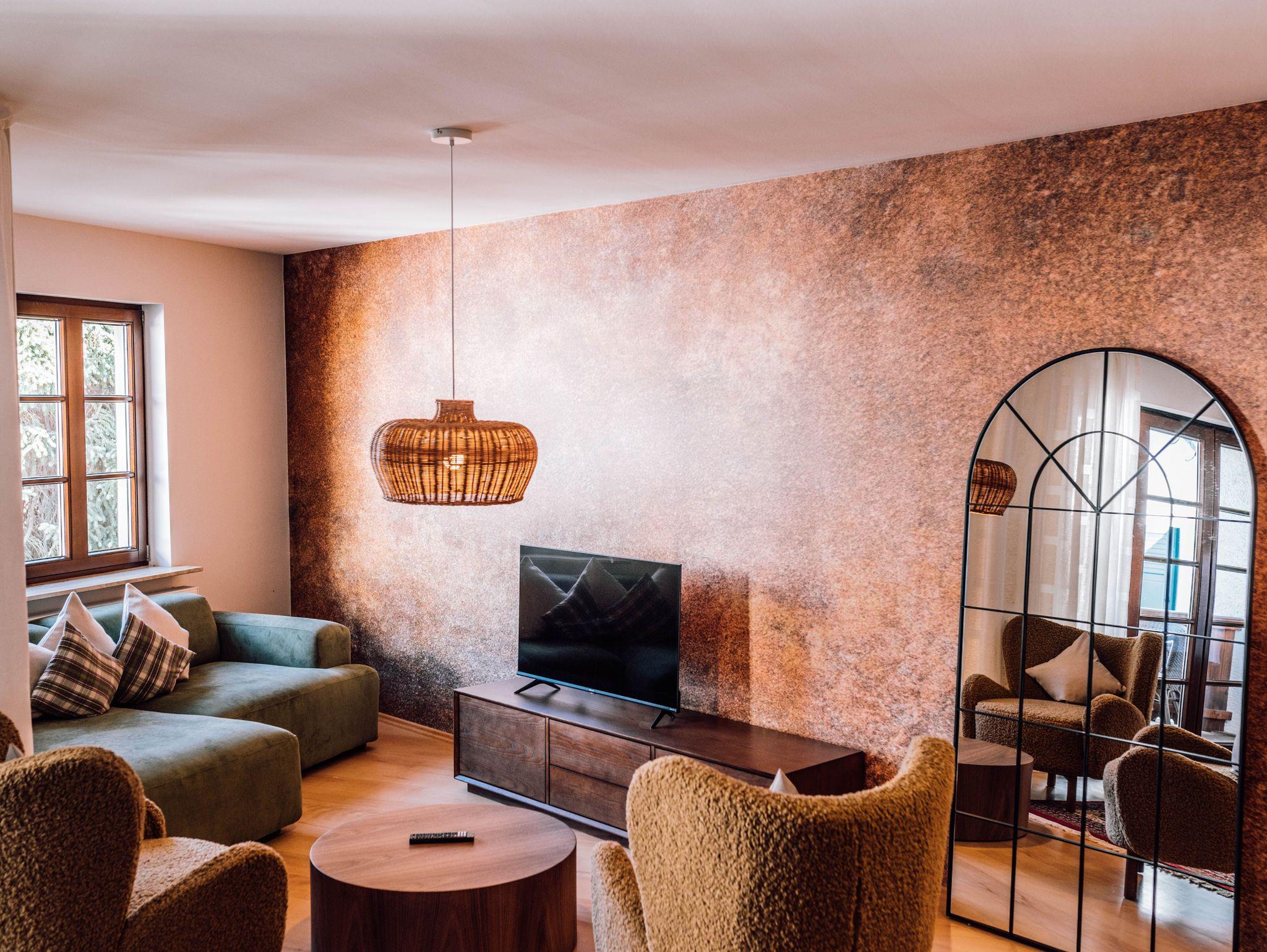 Moderner Altbau, mit Accessoires unserer Heimat verzaubern Sie beim ersten Blick. Unsere Apartments verfügen über: 50qm, offener Wohn-Küchenbereich, vollausgestattete Küche, Wasserkocher, Filter-Kaffeemaschine, Herd, Mikrowelle, Kühlschrank (nicht bestückt), Esstisch, Schlafsofa, W-LAN, Flatscreen TV, Föhn, Duschlotionen, Flasche Wasser