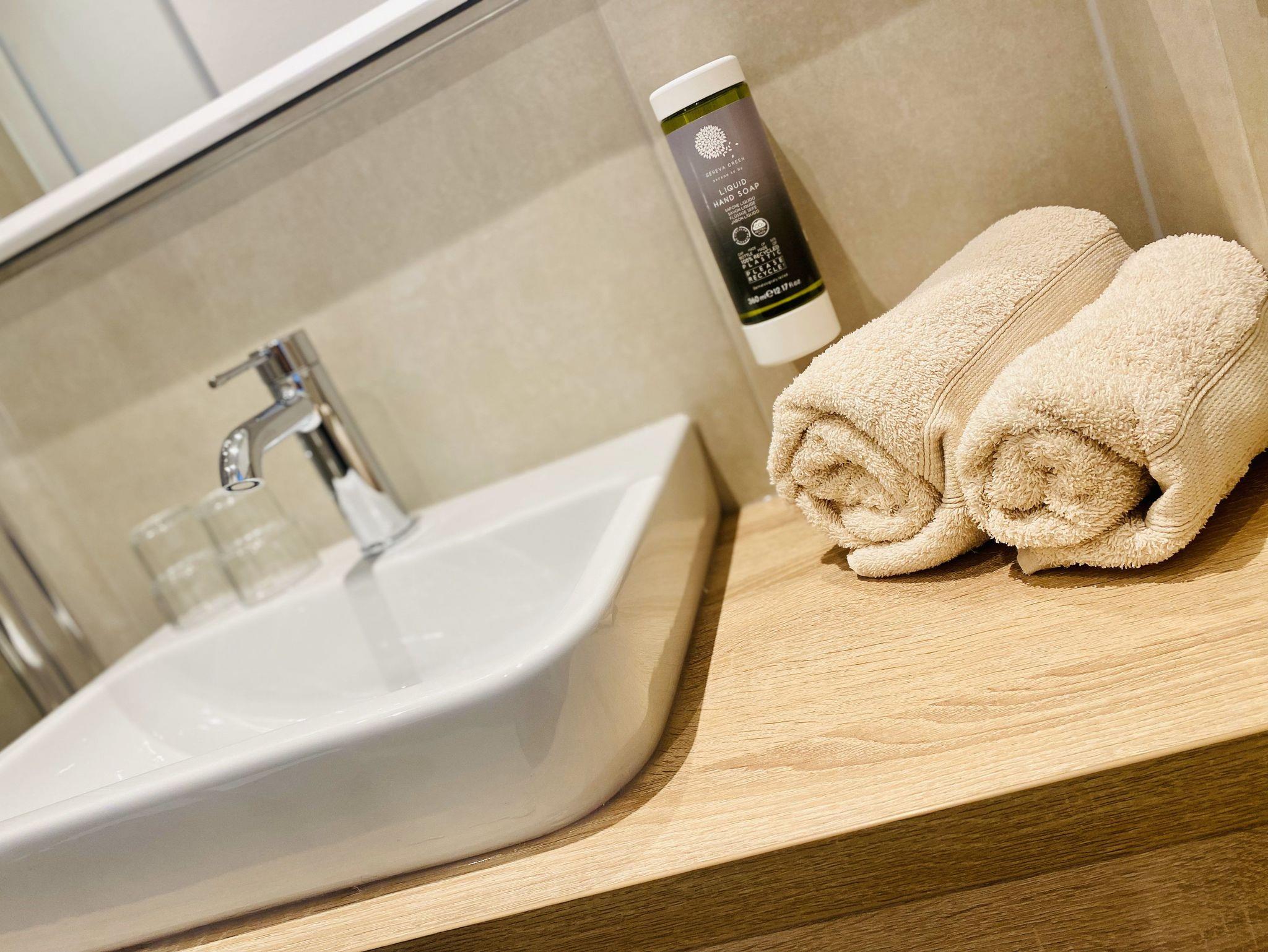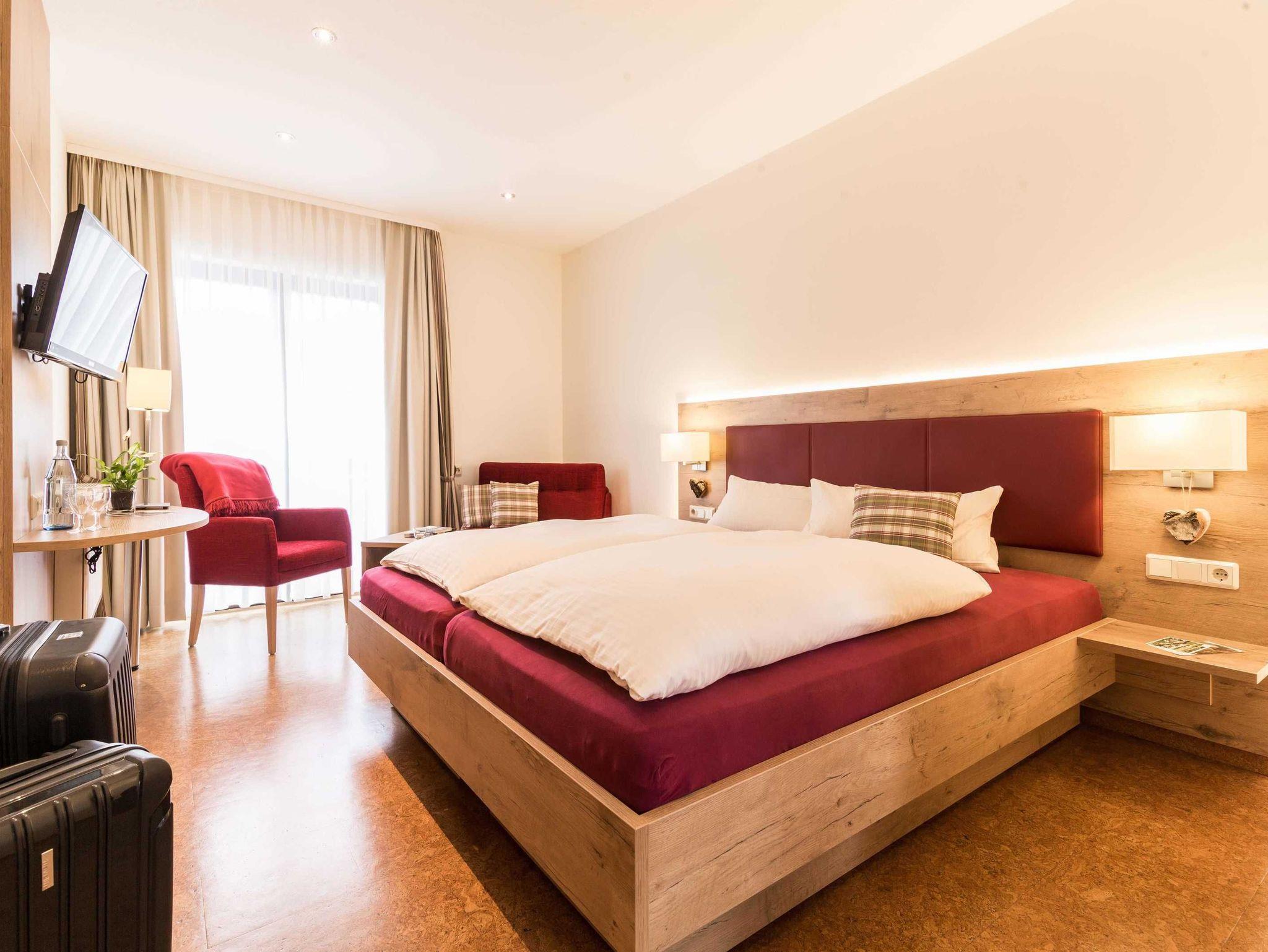 Unsere Doppelzimmer verfügen über: Schreibtisch, Sitzgelegenheit, W-LAN, Flatscreen TV, mit Garten Föhn, Duschlotionen, Flasche Wasser, Smart TV