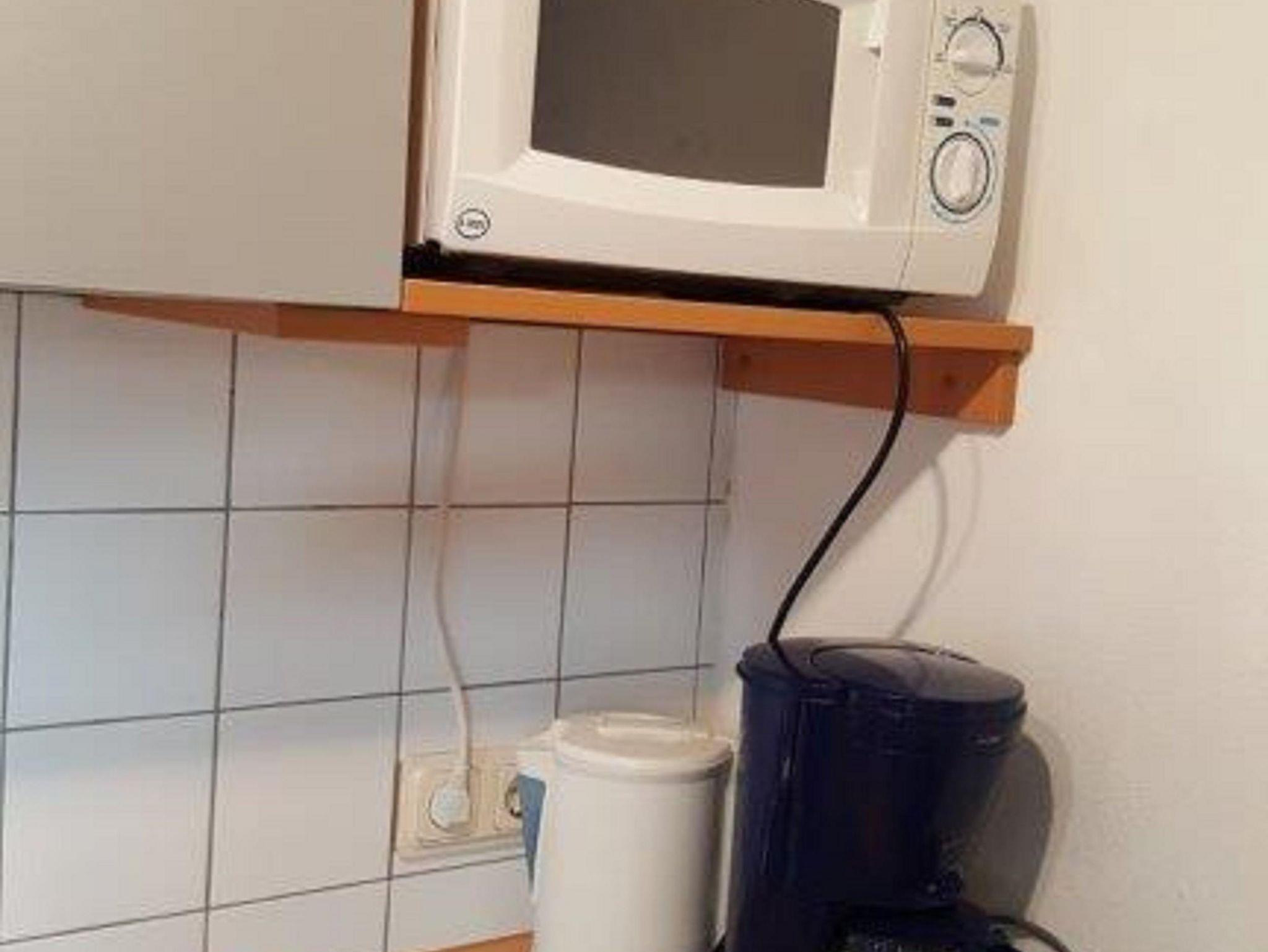 Seperater Eingang, Terrasse mit Möblierung, im Sommer mit Strandkorb, Kissen und Decken, Parkplatz, Flur mit Garderobe, Duschbad mit Waschbecken, WC und Föhn. Wohnzimmer mit Boxspring- Doppelbettcouch (1,60 m), Sat - TV und Esstisch. Schlafzimmer mit Doppelbett (1,40m), Schrank und Sessel. Die Küchenzeile ist ausgestattet mit Ceranfeld, Kühlschrank, Mikrowelle, Spülmaschine, Toaster, Kaffeeautomat, Wasserkocher, Geschirr und Wäsche. Als besonderen Service gibt es immer Tee und Kaffee vorrätig, natürlich kostenlos.