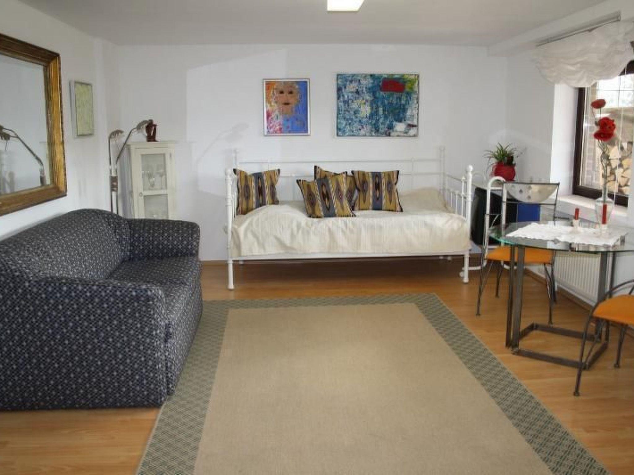 100 m² comfortable holiday flat in Fürfurt an der Lahn with idyllic garden for two to six people. It is an ADFC-certified, bicycle-friendly guest house. The flat has a total of four rooms plus kitchen, bathroom and separate WC. In one bedroom there is a double bed (160 x 220 cm) and a sofa bed (pull-out couch) for two people (160 x 200 cm). In the other bedroom, which also has a fireplace, there is a day bed (100 x 200 cm) and a double sofa bed (pull-out couch) for two people. In the billiard room (passageway to the WC) there is another sofa bed (100 x 230 cm). In the dining room there is a sofa bed for two people (170 x 200 cm). The house was renovated in 2010 to energy-efficient new-build standards, the holiday flat was created barrier-free, fully furnished and equipped with attention to detail. Features include an open fireplace, library and modern paintings by a contemporary artist. There is also a shower in the bathroom with marble tiles and WC. There is a billiard room, TV, WiFi, telephone, music system and games. The fully equipped kitchen also has a washing machine and dishwasher, fridge, microwave, induction hob and crockery. The flat was last renovated in 2018 and has a separate WC and a bathroom with shower.