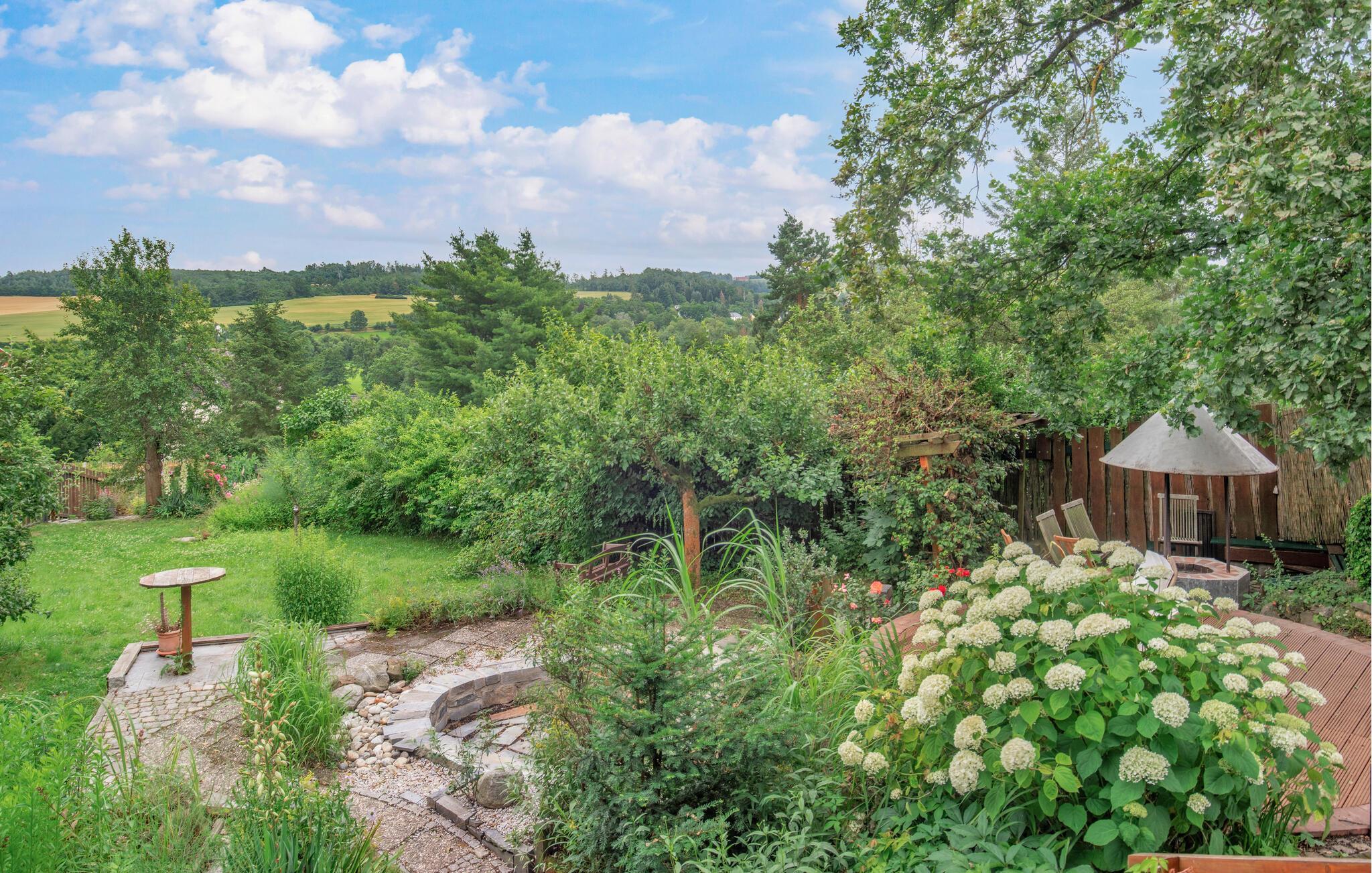 Glæd jer til jeres ferie i dette romantiske feriehus midt i den grønne natur.