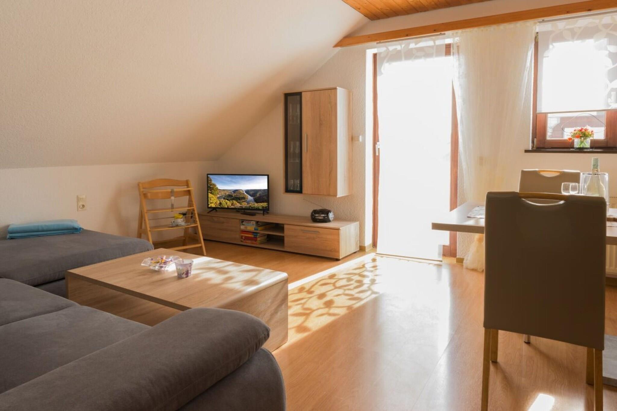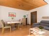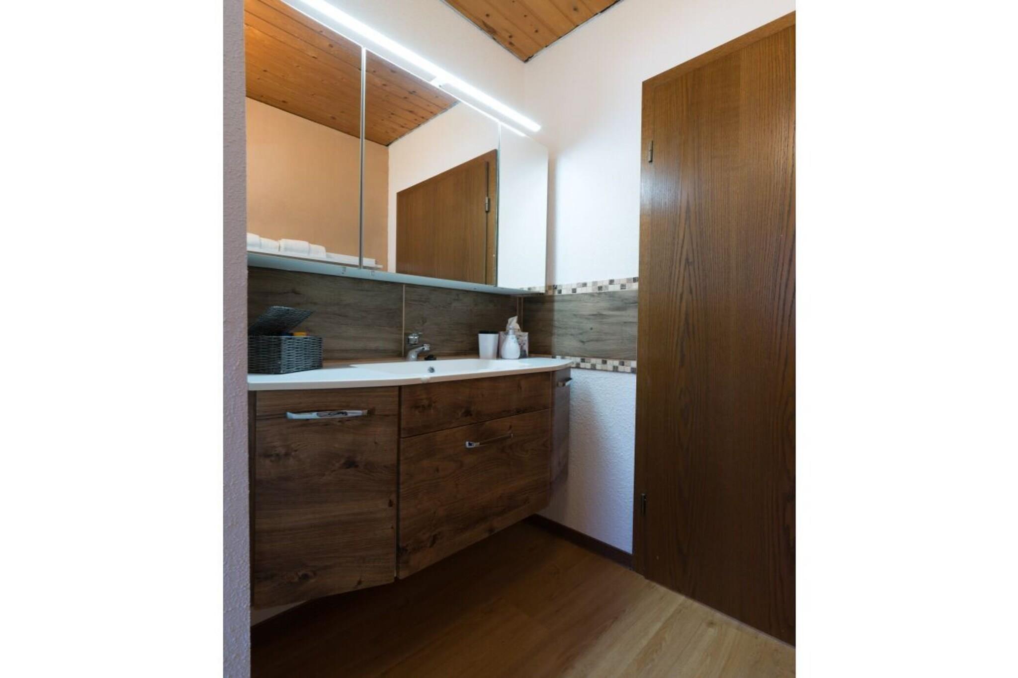 Moderne ferielejlighed med 2 soveværelser med dobbeltsenge og 1 stue med 1 sovesofa og et komplet badeværelse med bruser, toilet og håndvask.
