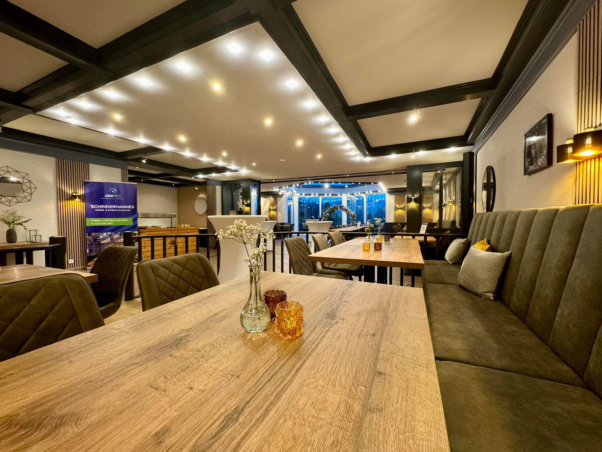 Entspannen im JUNIPRO Hotel Schinderhannes Eingebettet in die malerische Landschaft von Weiskirchen, ist das JUNIPRO Hotel Schinderhannes der ideale Rückzugsort für Familien, Geschäftsreisende und Singles, die nach Ruhe und Erholung suchen. Genießen Sie die Nähe zu den wunderschönen Rad- und Wanderwegen, die direkt am Hotel beginnen und die umliegende Natur zum Erkunden einladen.