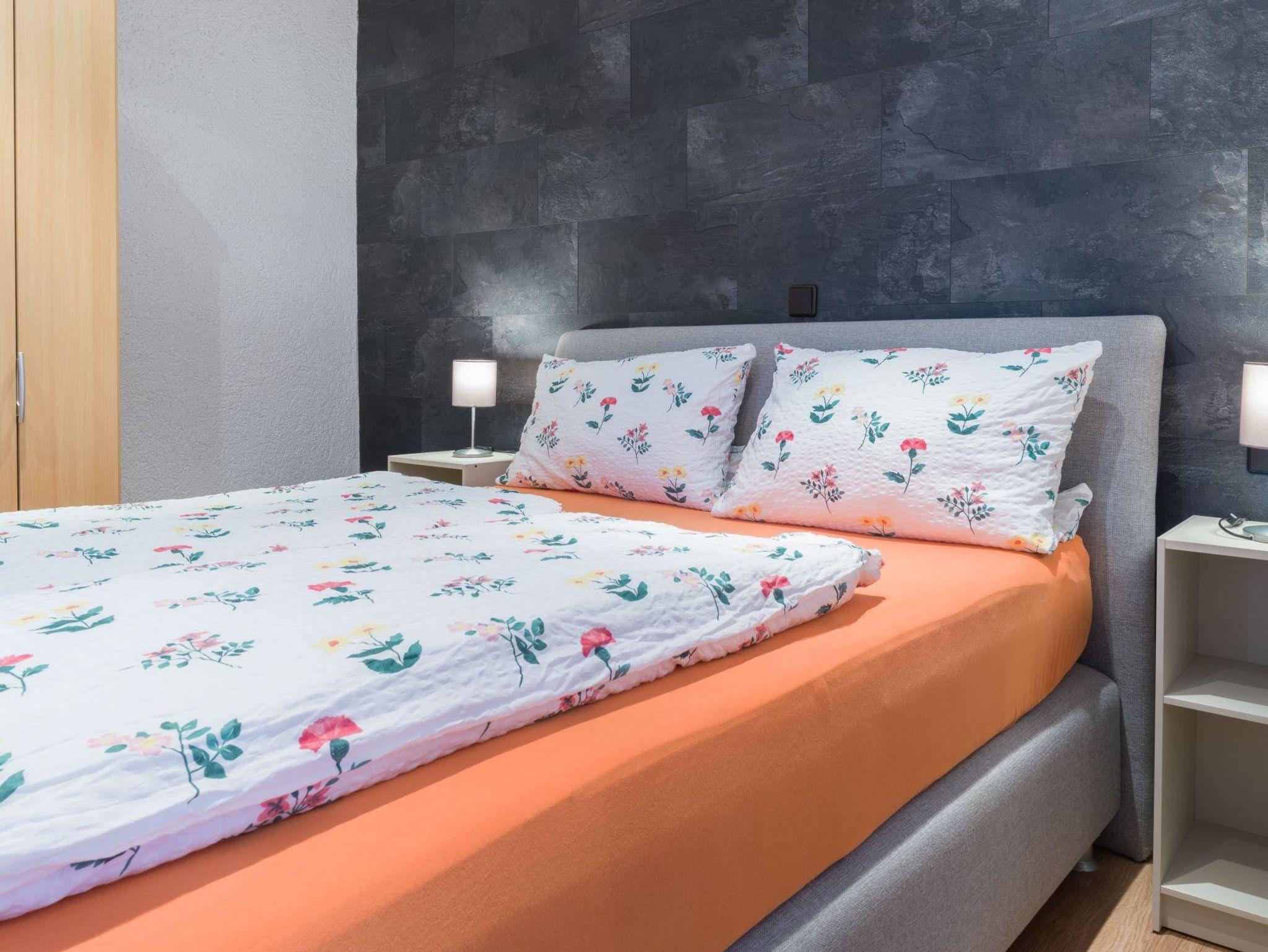 Eine Wäschespinne plus Klammern ist vor Ort verfügbar. Die Betten sind ohne Fussteil.