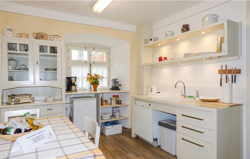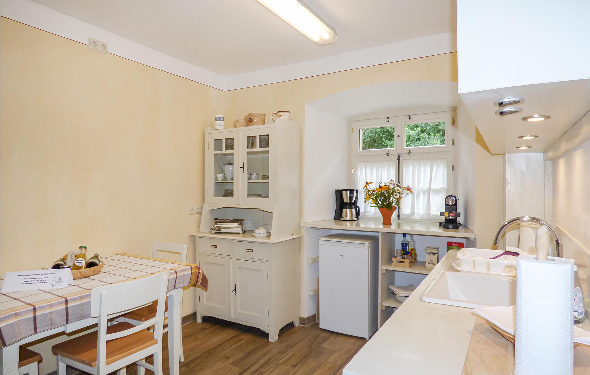 Ferielejligheden er moderne og har også mange historiske genstande fra møllerens tid - et perfekt samspil mellem tradition og modernitet. I det kærligt indrettede og fuldt udstyrede køkken kan I lave lækker mad med moderne udstyr eller tilberede jeres måltider traditionelt med brændeovnen. I kan lave kaffe på følgende måder: filter, Nespresso-maskine eller espressomaskine. Tilbring afslappende stunder i den hyggelige stue og spisestue med træloft. Brændeovnen giver ekstra komfort og varme. Badeværelset er nyrenoveret og har brusebad, håndvask og toilet. Der er en have bag huset, som I kan anvende. Her kan I afslutte en dejlig dag i hinandens selskab omkring bålpladsen.