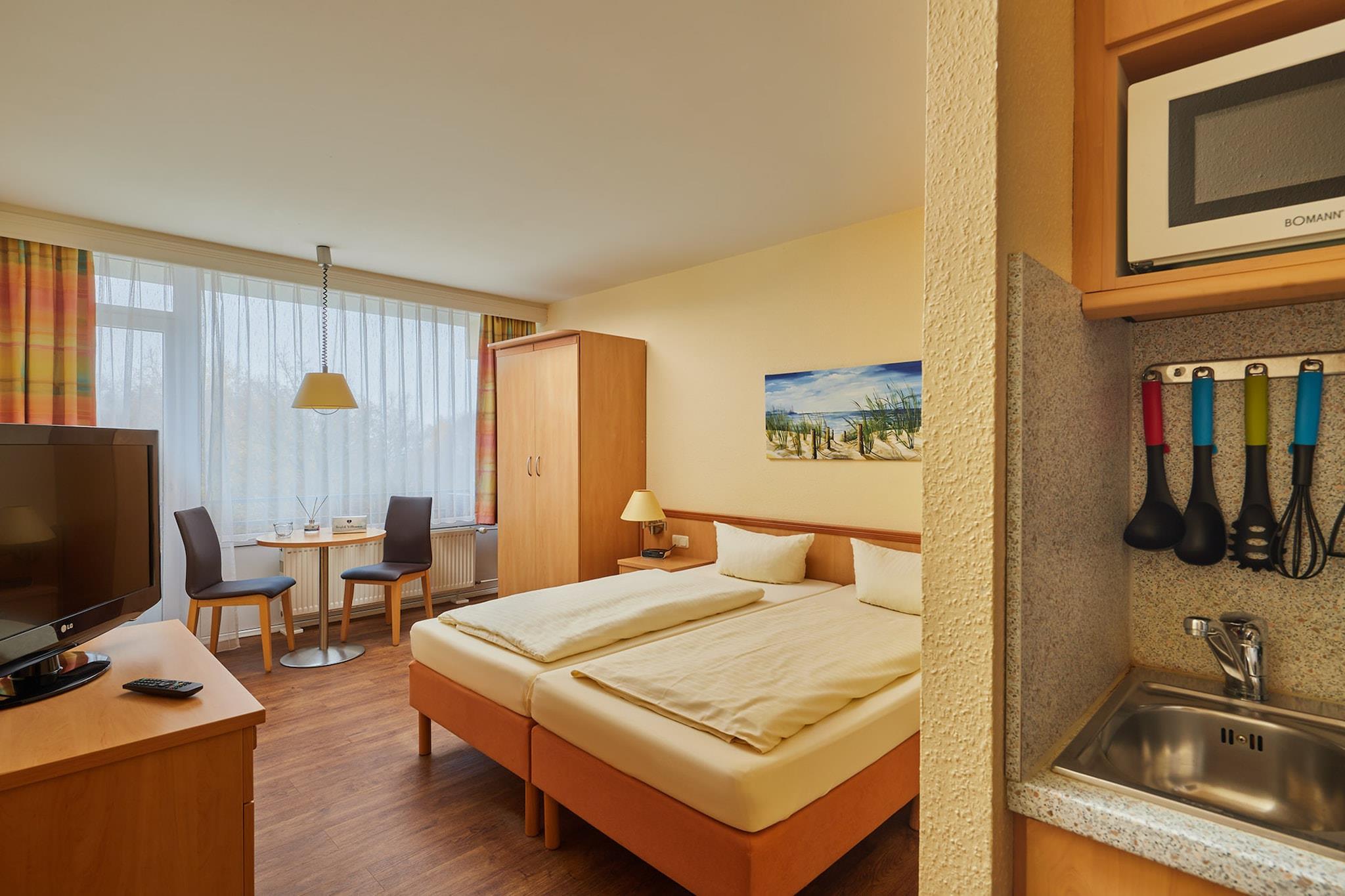 Beliggende direkte ved en fantastisk, 3 km lang sandstrand er Weissenhäuser Strand ferie- og fritidspark et af de største og mest populære feriesteder i Tyskland. Det subtropiske vandland, eventyrparken Jungle Land og et vandskianlæg (åbent fra påske til oktober) sikrer en uforglemmelig ferie for hele familien, uanset vejret. Fra 16. februar til 27. juni 2025, fra 7. september til 26. juni 2026 og fra 30. august 2026 til 21. marts 2027 har du gratis adgang til det subtropiske vandland (begrænset til 3 timer om dagen; der opkræves ekstra betaling ved længere ophold). Du har altid din egen private terrasse eller balkon og er kun få skridt fra havet. Weissenhäuser Strand ferie- og fritidspark er omgivet af klitter og naturlandskaber og ligger i nærheden af Hohwacht, nedenfor øen Femern. Delstatshovedstaden Kiel ligger ikke langt væk, og hansestaden Lübeck er også let tilgængelig herfra. Højdepunkter inkluderet: Alle forsyninger, sengelinned, håndklæder og slutrengøring Wi-Fi Aktiviteter i nærheden: En bred vifte af fritidsaktiviteter sikrer masser af sjov og spænding: Subtropisk vandland (13 rutsjebaner, bølgebassin, saunaer, boblebade), Adventure Jungle Land (højrebøjlebane, klatrevæg, legeplads, terrariumlandskab, rutsjebaner, trampolin, lasertagbane), Vandland (sjovområde med rutsjebaner, vandcykler og vandbold; vandskilift), Adventure Golf (minigolf) og meget mere. Kulinariske lækkerier er der masser af: Fra den italienske "Osteria" til den stilfulde specialrestaurant "Sonnenrose" tilbyder restauranterne, bistroerne, barerne og caféerne en verden af kulinariske oplevelser.