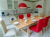 Die Küche ist sehr groß und kann als Wohnküche bezeichnet werden. Die komplett ausgestattete Küchenzeile verfügt neben Herd, Kühlschrank und Spülmaschine auch über eine Waschmaschine. Das Badezimmer ist sehr geräumig und mit Badewanne und Dusche ausgestattet.