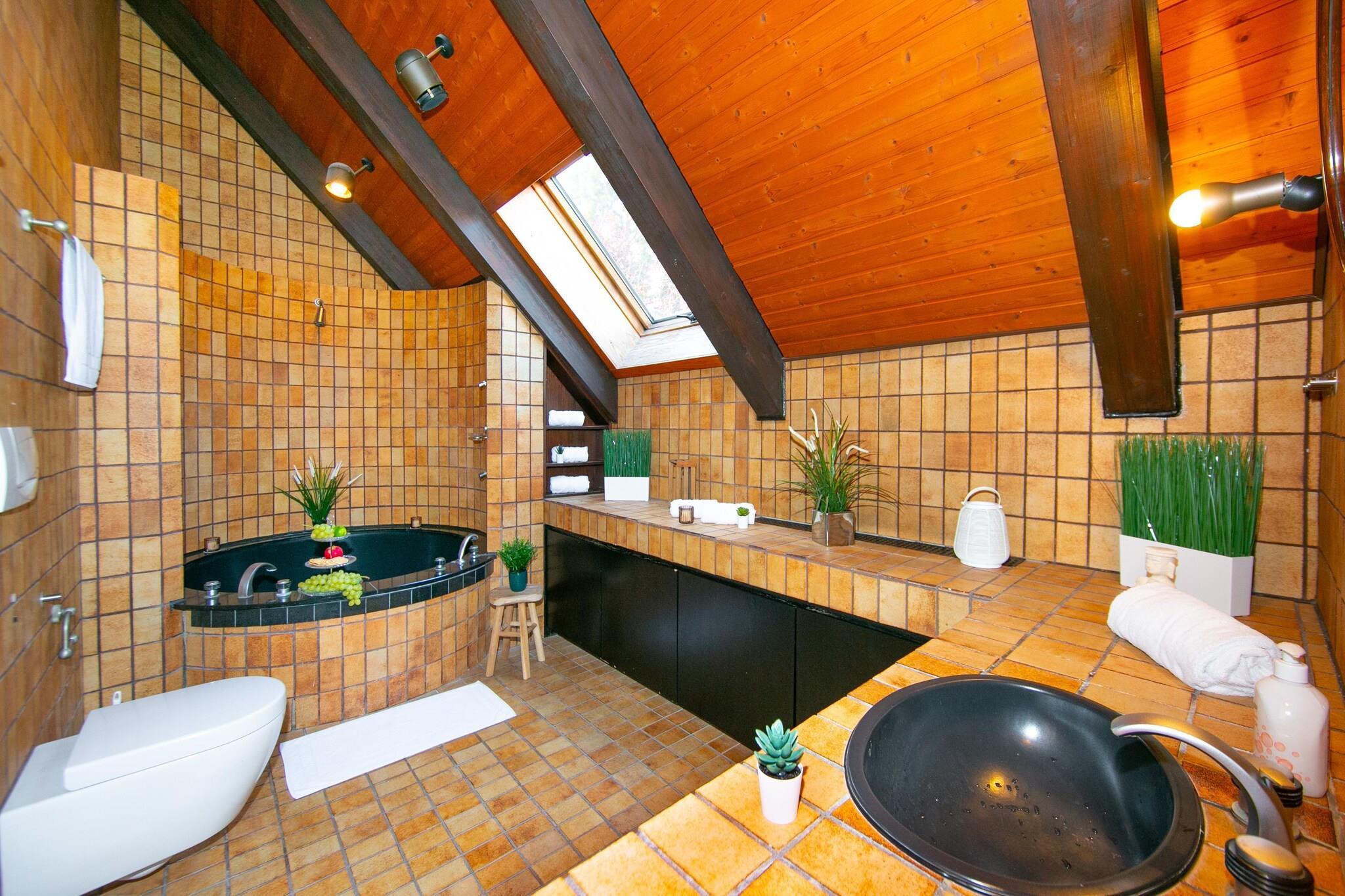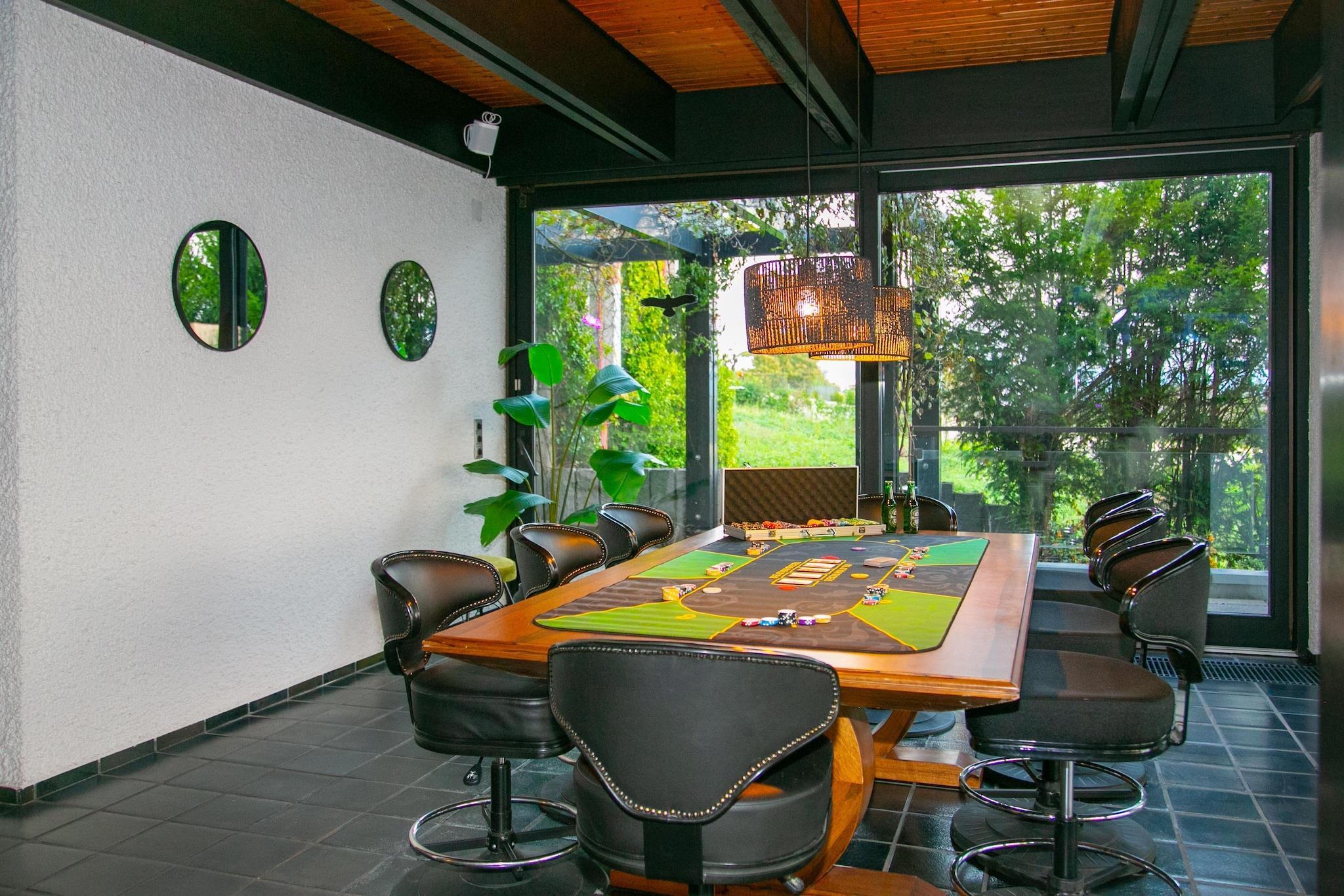 Træd ind i et unikt tilflugtssted, hvor historie møder moderne komfort, beliggende i maleriske omgivelser med udsigt over Koblenz og de omkringliggende byer. Denne charmerende villa, fordelt på tre etager, tilbyder et eksklusivt tilflugtssted for din gruppe, helt privat uden andre gæster eller værter. Bygningens historiske karakter tilføjer varme og autenticitet med sin tidløse charme og et par dejlige ufuldkommenheder, der fortæller historier om fortiden. Beliggende nær Koblenz, er villaen perfekt beliggende til at udforske regionens rige historie og naturlige skønhed. Blot en kort køretur derfra finder du det ikoniske Deutsches Eck, hvor Mosel- og Rhinfloderne løber sammen, og den imponerende Ehrenbreitstein-fæstning, som er tilgængelig med en naturskøn svævebanetur med panoramaudsigt over byen. Kurfyrstepaladset og Stolzenfels Slot fremviser barok storhed, mens Marksburg Slot giver et fascinerende indblik i middelalderarkitekturen. Naturelskere vil sætte pris på Rhinkløften, et UNESCO-verdensarvssted, kendt for sine dramatiske landskaber, vinmarker og utallige slotte langs flodbredderne. Slap af i boblebadet på balkonen, og nyd panoramaudsigten, der strækker sig over det naturskønne landskab. For en forfriskende flugt kan du dykke ned i den rummelige indendørs kolde pool eller slappe af i den finske sauna. Underholdningsmuligheder bugner med et billardbord, bordfodbold og vintage jukeboxe, perfekt til livlige aftener med venner eller familie. Udenfor inviterer den store have til at slappe af under åben himmel med et hyggeligt spisebord, grill og drivhus, ideelt til sommersammenkomster. Med fem private og offentlige parkeringspladser bekvemt placeret i nærheden, er det problemfrit at ankomme og forlade.