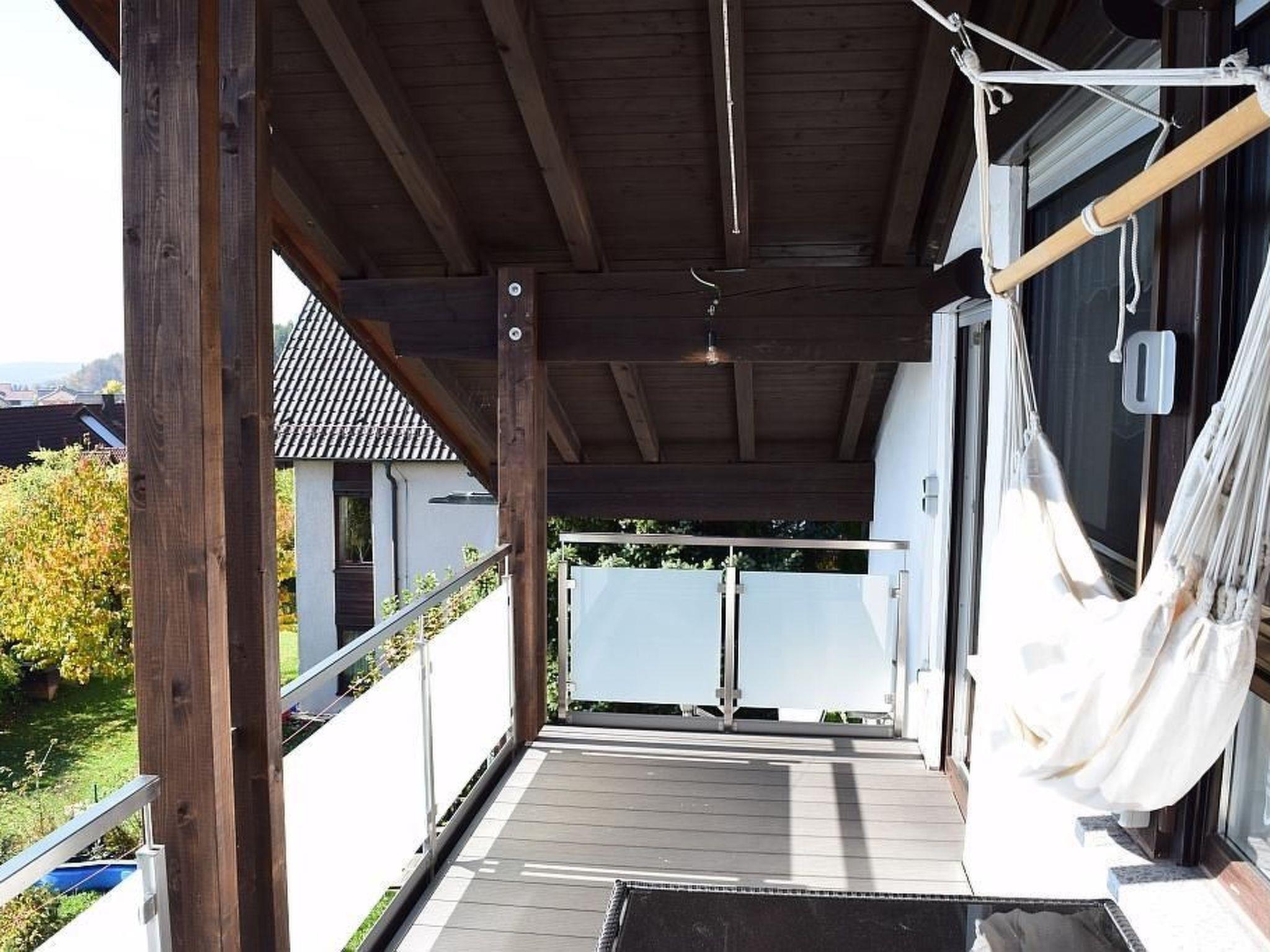 The outdoor area of the holiday flat boasts a spacious, covered balcony that invites you to spend relaxing hours outdoors. For guests travelling by bike or who would like to explore the surrounding countryside on two wheels, there is a secure pillar for chaining up bicycles. Electric vehicle owners have also been catered for: there is a 22 kW type 2 charging station at the car park.