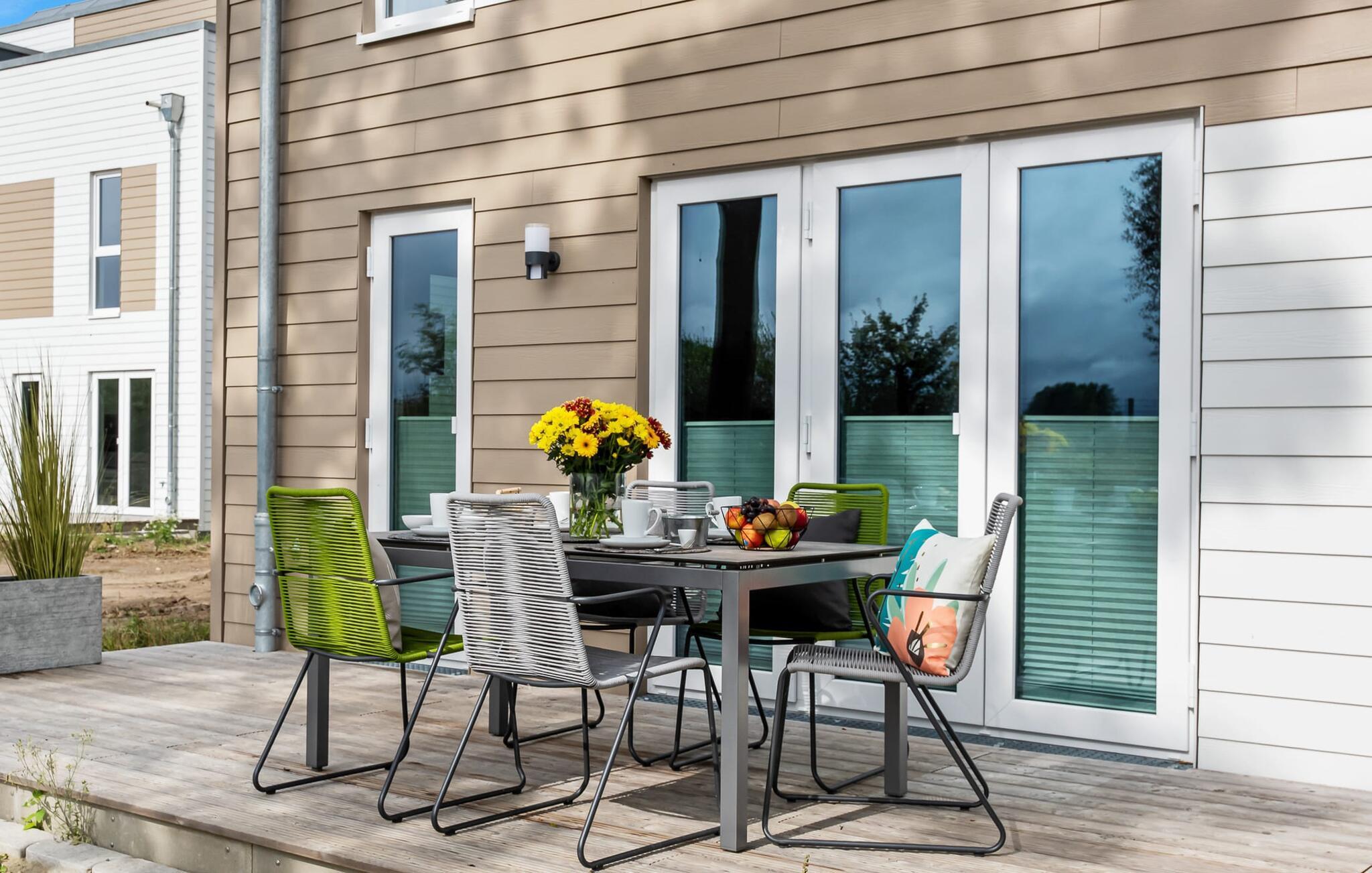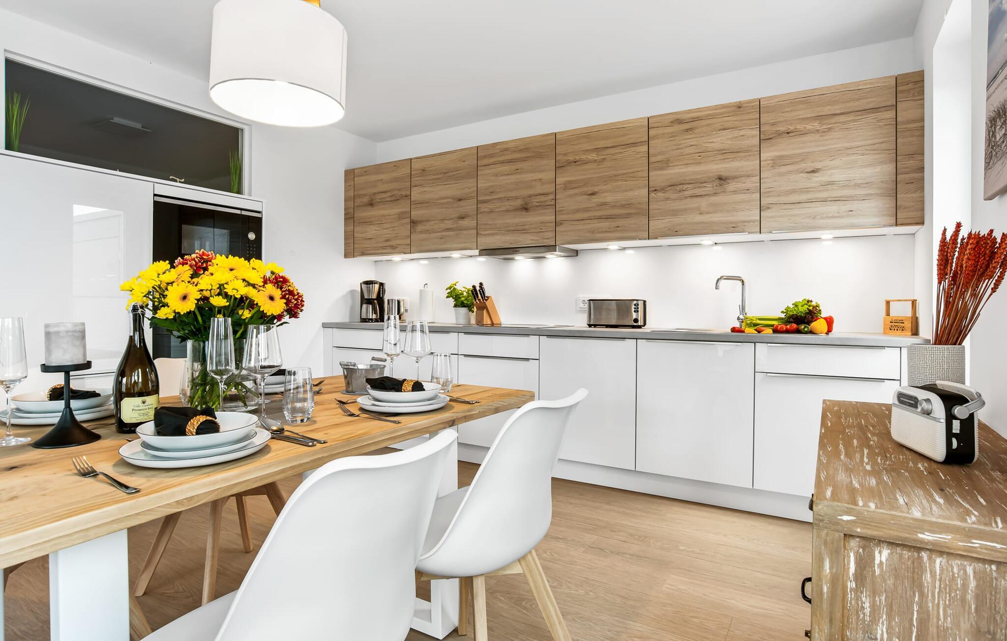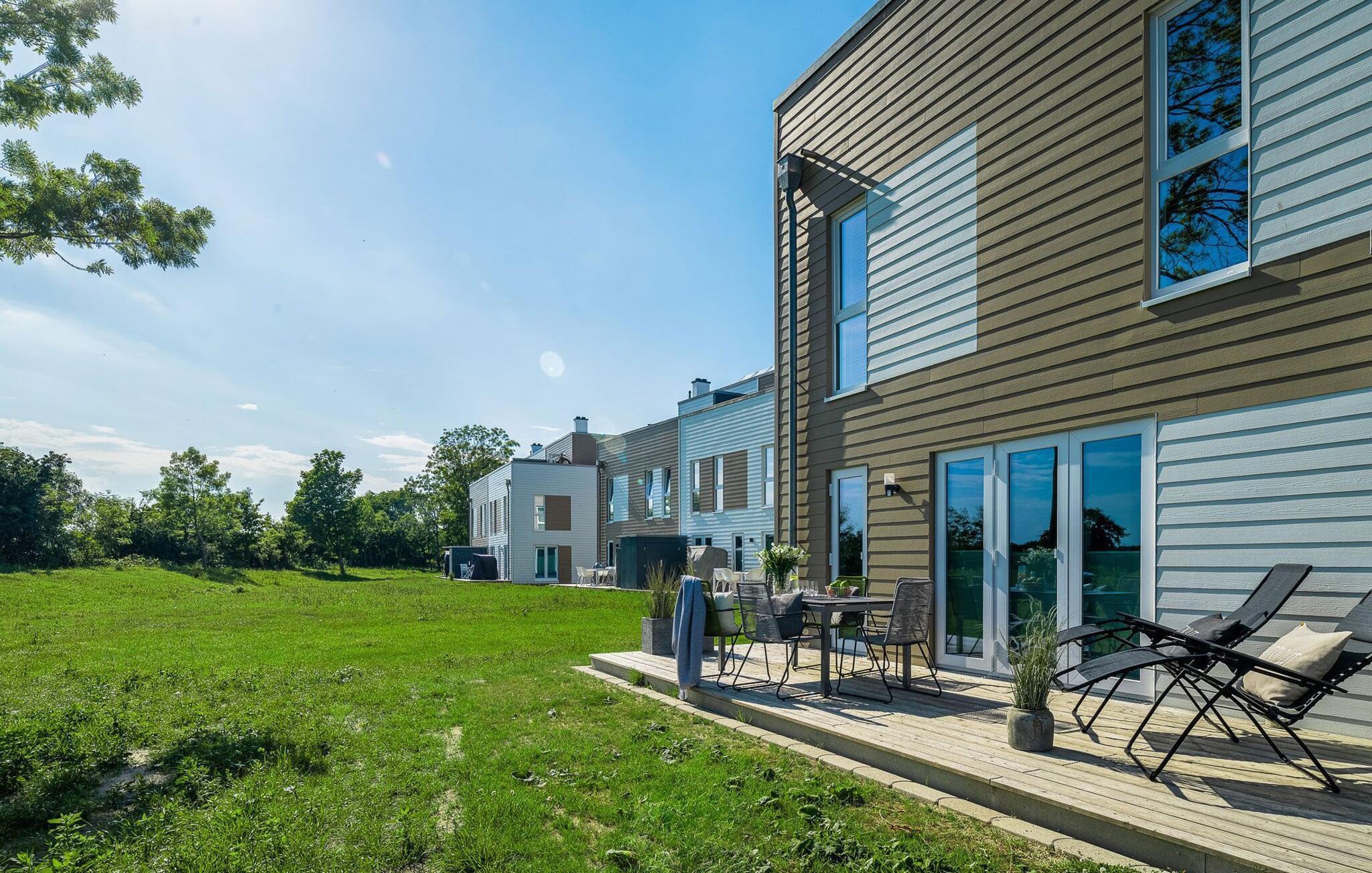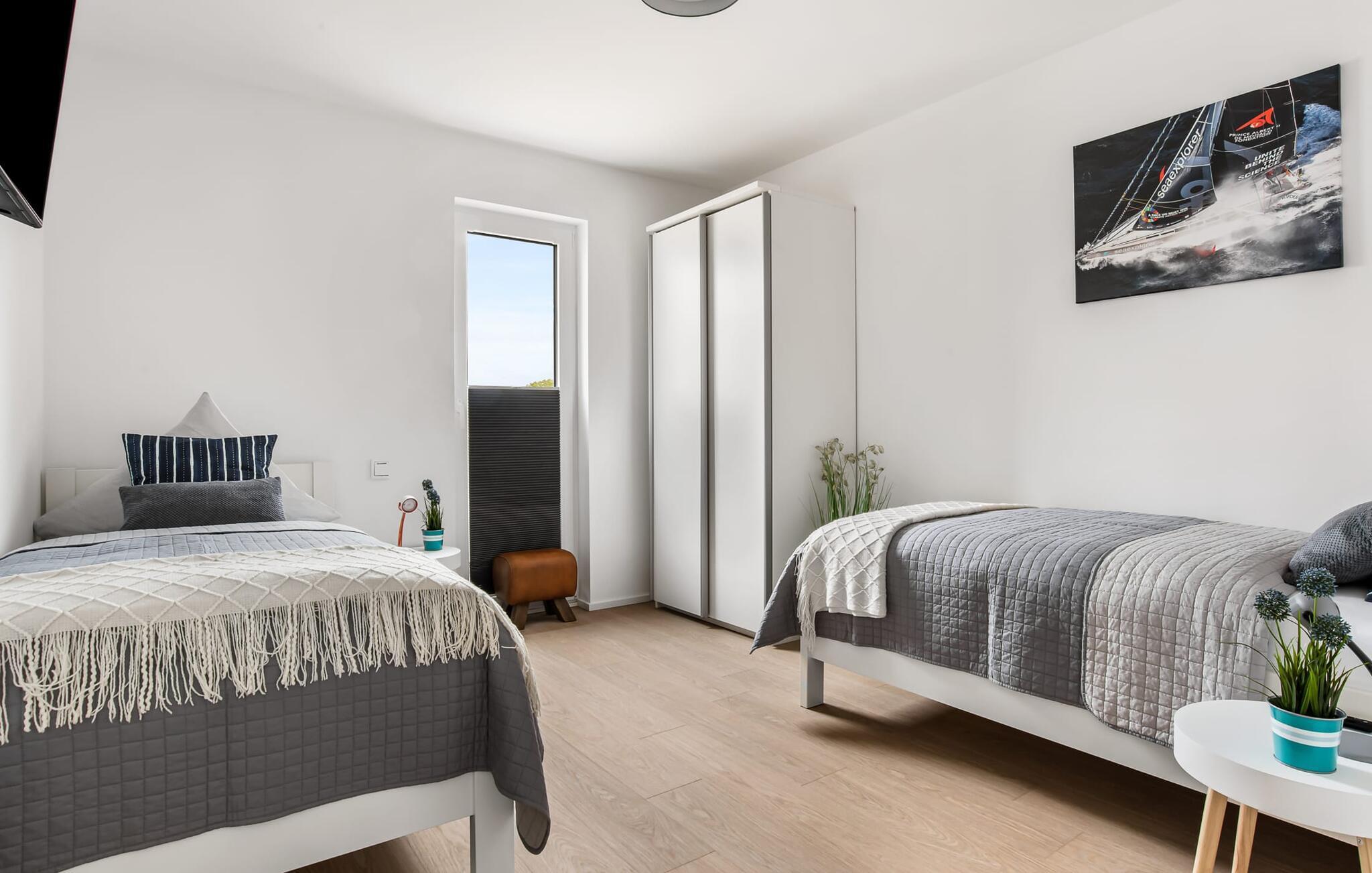 WEITSICHT er en maritim og delvist bæredygtigt indrettet ferielejlighed i stueetagen, der lever op til sit navn: Den imponerer med sin fantastiske beliggenhed med direkte udsigt over Østersøen og de naturbevarende strandenge og marker. Fra terrassen kan I nyde roen og fremsynet i fulde drag. Den naturlige sandstrand Weidefelder med kiosk, restaurant, strandstole og forskellige muligheder for vandsport kan nås på få hundrede meter. Firbenede venner kan også slippe dampen ud på hundestranden bagerst. I umiddelbar nærhed er der også den fantasifuldt designede Adventure Golf minigolfbane og lystbådehavnen i OstseeResort Olpenitz med forskellige indkøbsmuligheder. Resortets beliggenhed direkte mellem mundingen af Slime og Østersøen og tæt på den smukke by Kappeln byder også på en bred vifte af udflugtsmuligheder med båd, cykel eller til fods. Hjertet i lejligheden, som er lavet med højkvalitets og økologisk bæredygtige materialer, er den åbne, lysfyldte stue/spisestue. Vinduesfronten fra gulv til loft giver en unik udsigt over naturen. Det integrerede køkken er perfekt udstyret. Det gør det sjovt at lave mad sammen. Skulle vejret nogensinde blive nordisk, inviterer opholdsområdet til afslapning. Pejsen skaber hygge med sin knitrende ild. Direkte fra opholdsstuen kommer man ind på den rummelige terrasse med syd-vest orientering. Dette tilbyder afslappende timer væk fra stress og jag i resten af feriestedet ved Østersøen. Mod bagsiden med udsigt til de naturbeskyttede strandenge, marker og havet kan I nyde FREMSYNET. Møblerne af høj kvalitet på terrassen inviterer jer til at grille og slappe af. To soveværelser er tilgængelige for en afslappende nat. Den ene er udstyret med en dobbeltseng, den anden med to enkeltsenge. Med nogle få enkle trin kan sofaen i stuen forvandles til en ekstra soveplads. En baby er også velkommen (rejseseng og høj stol til rådighed). Bruserummet med gulvvarme, brusebad på gulvniveau (inklusive regnbruser) og en infrarød sauna sikrer afslappende wellness-øjeblikke. Vaskemaskinen er også placeret der. Hvis I ankommer i bil, kan I ideelt set parkere den direkte foran huset på jeres egen parkeringsplads. Ejerne af WEITSICHT planter et træ for hver reservation i Mara-Serengeti i Kenya (Afrika) gennem det selvstiftede "Sports4Trees"-initiativ. Vores yndlingssted: udsigten fra spisebordet ind i det store naturbevarende strandenge. Bemærk venligst: OstseeResort Olpenitz er meget populært, og der bygges fortsat i parken. Ikke desto mindre kan I se frem til en 5-stjernet standard og et førsteklasses ophold. Byggeaktiviteterne kommer ikke til at forstyrre jer på ferien, og derfor gives der ikke yderligere afslag i prisen.