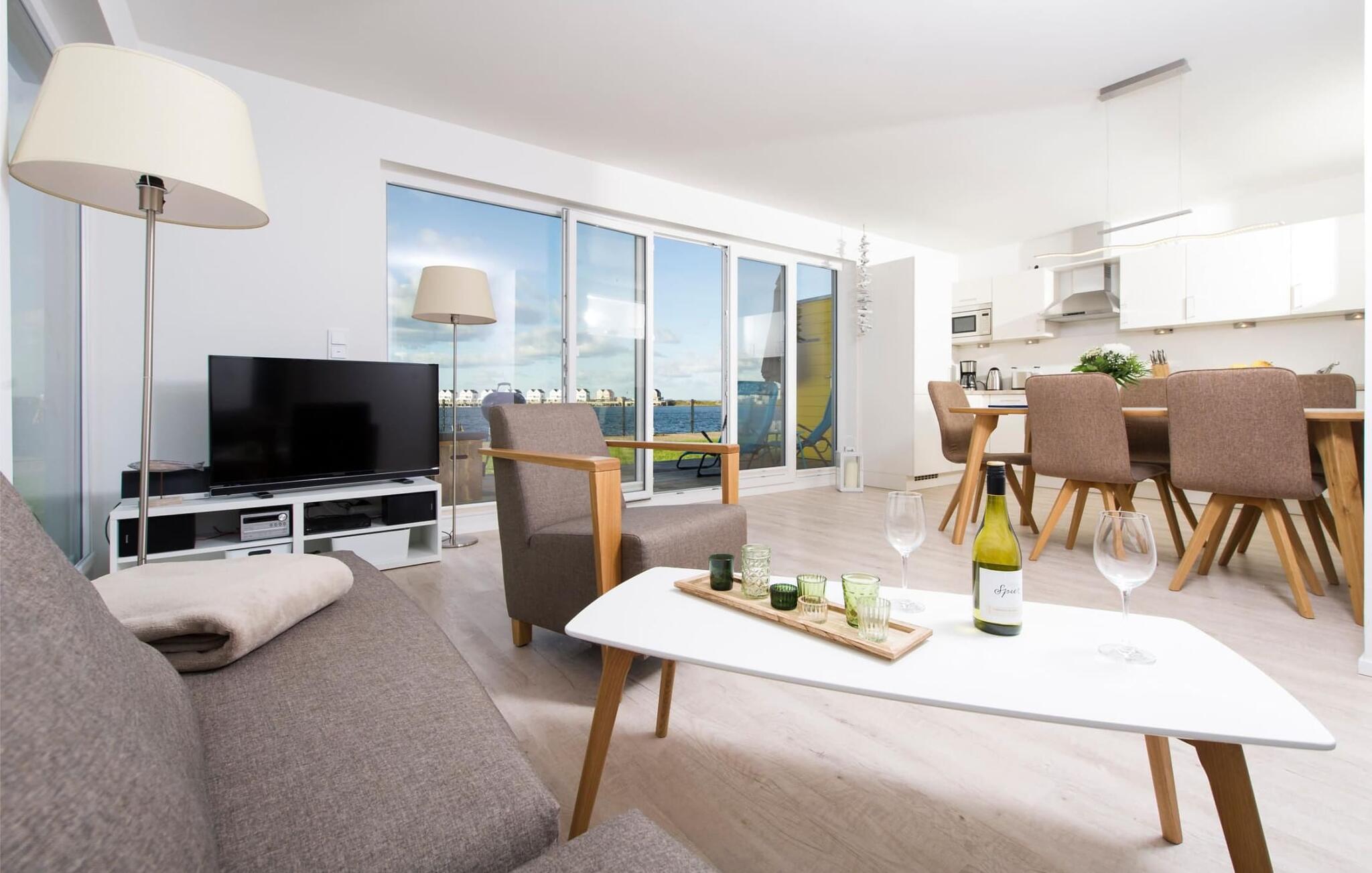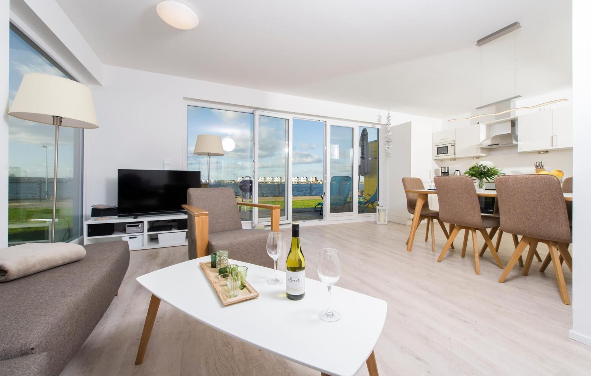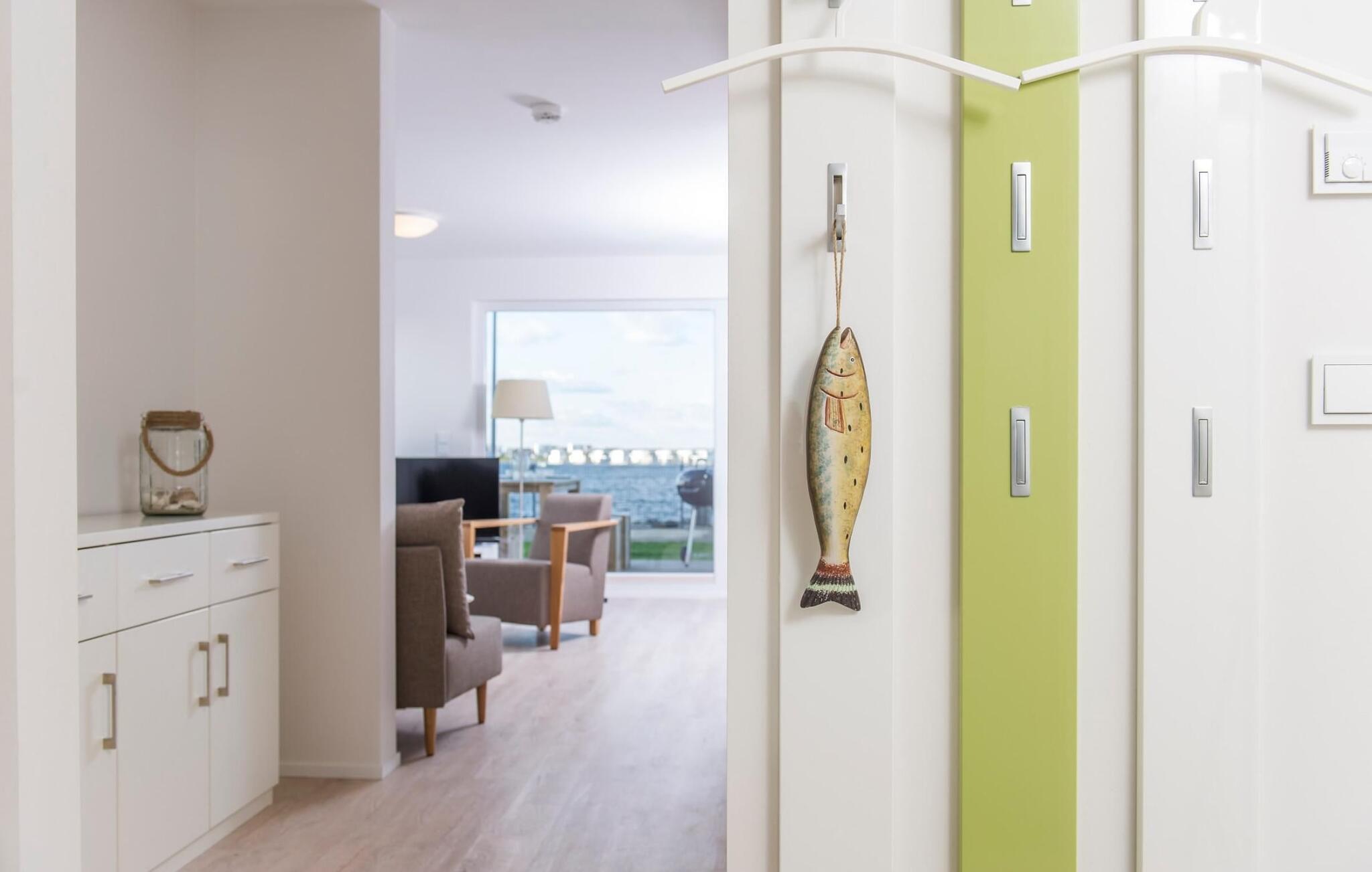 Bølgerne danser her. Hvor østersøfjorden Slien løber ud i Østersøen, omgivet af vand og med fri udsigt til havneindløbet og sejl- og sportsbådshavnen i Østersøresortet Olpenitz, ligger ferieejendommen Wellentanz og lever op til sit navn. . Kun få meter fra Weidefelds sandstrand og havnepromenaden imponerer denne ejendom med sin centrale beliggenhed, fantastiske udsigt over vandet og topfaciliteter. I kan nyde morgen- og aftensolen på to terrasser. Det grønne område omkring huset indbyder til solbadning, leg og afslapning. Og længes I efter wellness, kan I se frem til et privat wellnessområde. Infrarød varmekabine med hi-fi lydsystem og LED farvelysterapi samt afslapningsboblebad inviterer jer til at slappe af efter en gåtur på stranden. Fantastisk udsigt åbner op fra opholdsstuen og på den tilstødende terrasse med udsigt over lystbådehavnen. Havnebiografen sørger for underholdning under en hyggelig grillaften eller en romantisk middag med levende lys ved solnedgang. På ferien er der tid til kreativ madlavning, det fuldt udstyrede køkken-alrum lader intet tilbage at ønske. Morgenmad i morgensolen på østterrassen, ren feriefølelse. WiFi og Smart TV med Telekom Home Entertainment-program sørger også for indendørs underholdning. De to soveværelser med udgang til den østvendte terrasse er ligeledes indrettet til høj standard og nænsomt møbleret. Og vågner I tidligt og veludhvilet på ferien, kan I se billedskønne solopgange på den tilstødende terrasse. Der er en ekstra soveplads på den komfortable sovesofa i stuen. Gulvvarme, spabad og sauna lover komfort i hver sæson. Og på den hyggelige sofa bag panoramavinduets front giver det nordiske vejr en helt særlig hygge i den mørke årstid. Der er privat parkeringsplads og cykelskur foran huset. Ferielejligheden er en lejlighed i stueetagen. Bemærk venligst: OstseeResort Olpenitz er meget populært, og der bygges fortsat i parken. Ikke desto mindre kan I se frem til en 5-stjernet standard og et førsteklasses ophold. Byggeaktiviteterne kommer ikke til at forstyrre jer på ferien, og derfor gives der ikke yderligere afslag i prisen.